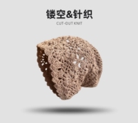 文艺风堆堆帽女2024新款大头围针织钩花包头帽薄款镂空百搭毛线帽