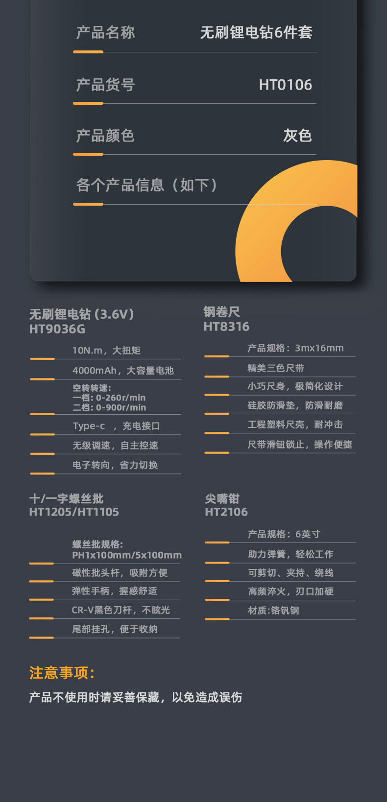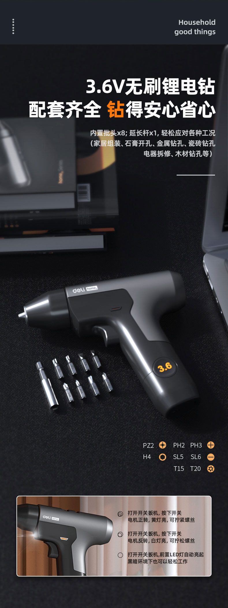 颜色分类:【爆款五折】3.6V无刷锂电钻六件套-HT0106