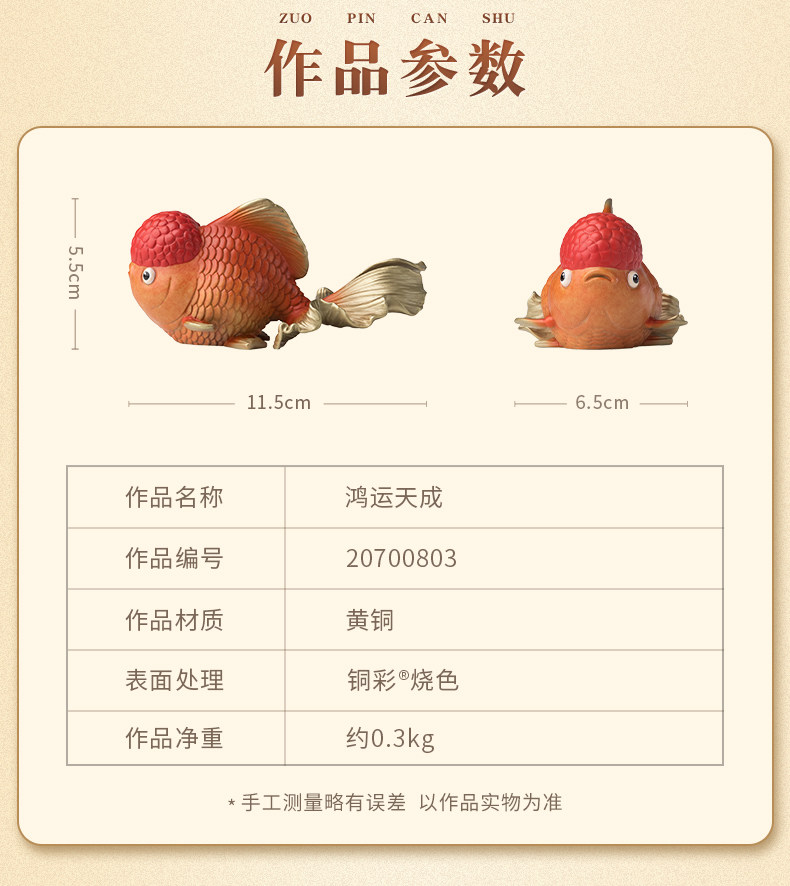 铜摆件《鸿运天成》 铜工艺品家居饰品 桌面礼品金鱼摆件