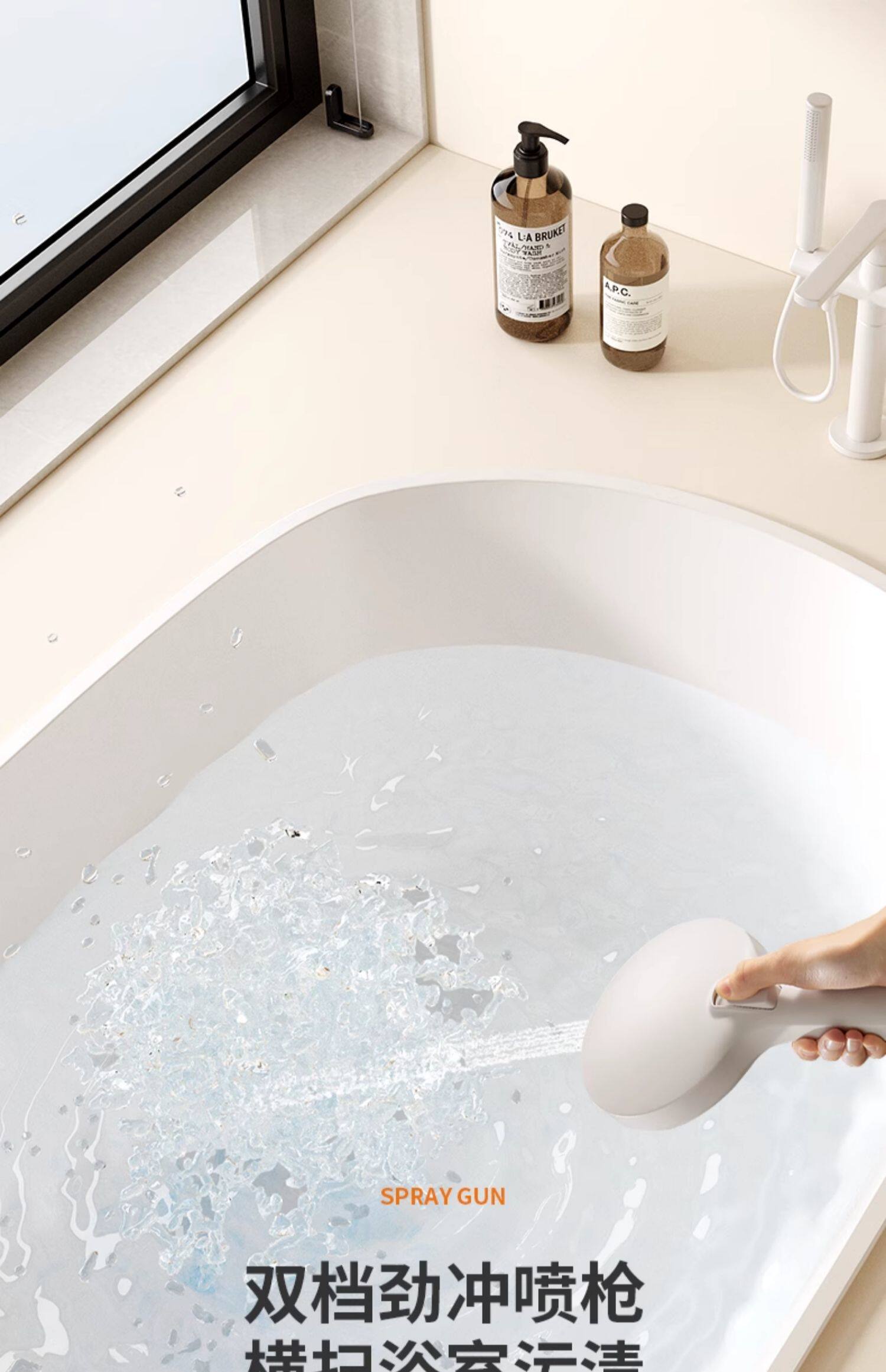 白色增压花洒淋浴喷头套装浴室极简全铜洗澡淋雨手持喷头