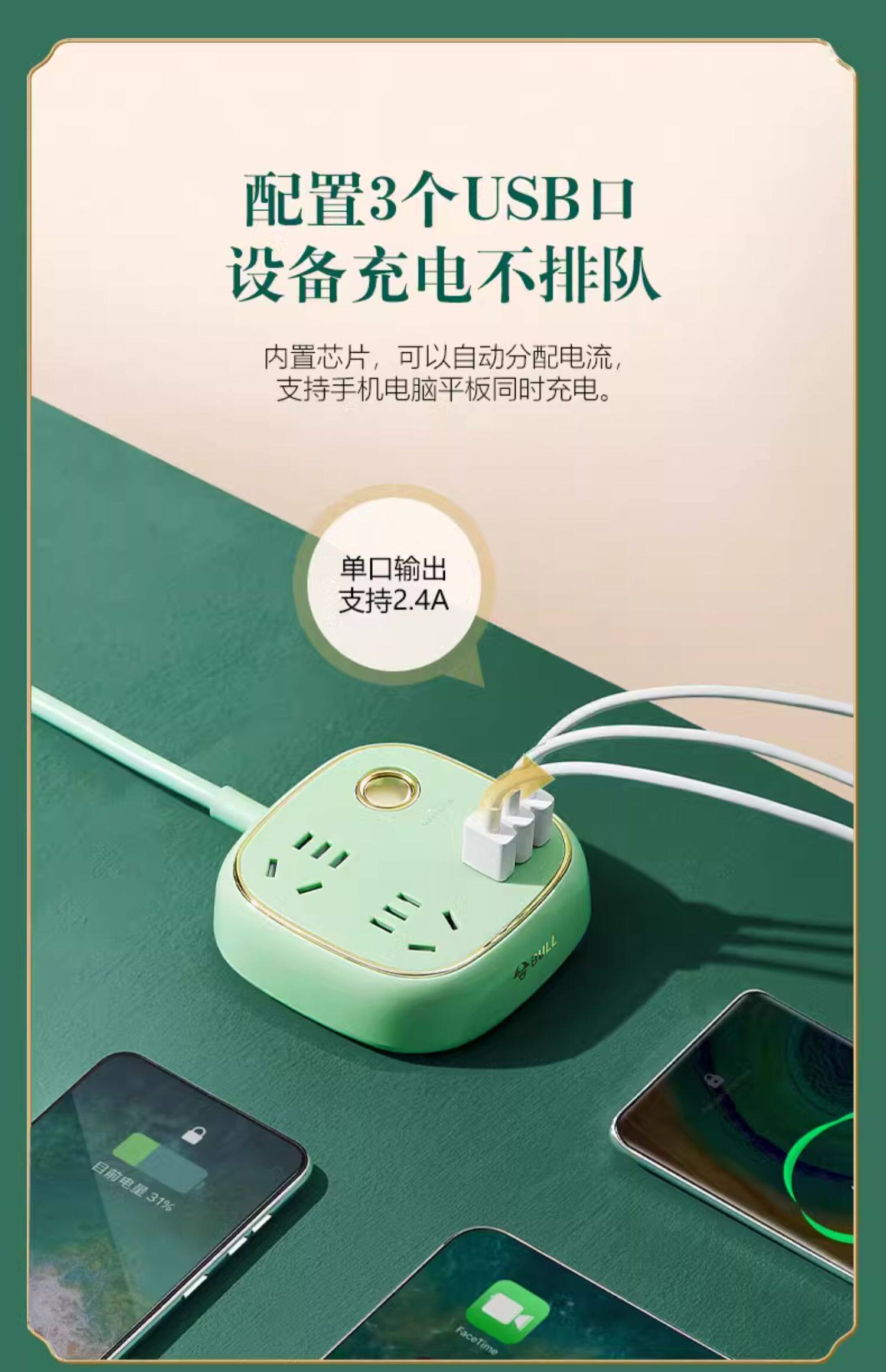 品牌:BULL/公牛型号:公牛复古插座带USB爬墙插排拖线板旗舰店官方旗舰功能:防摔