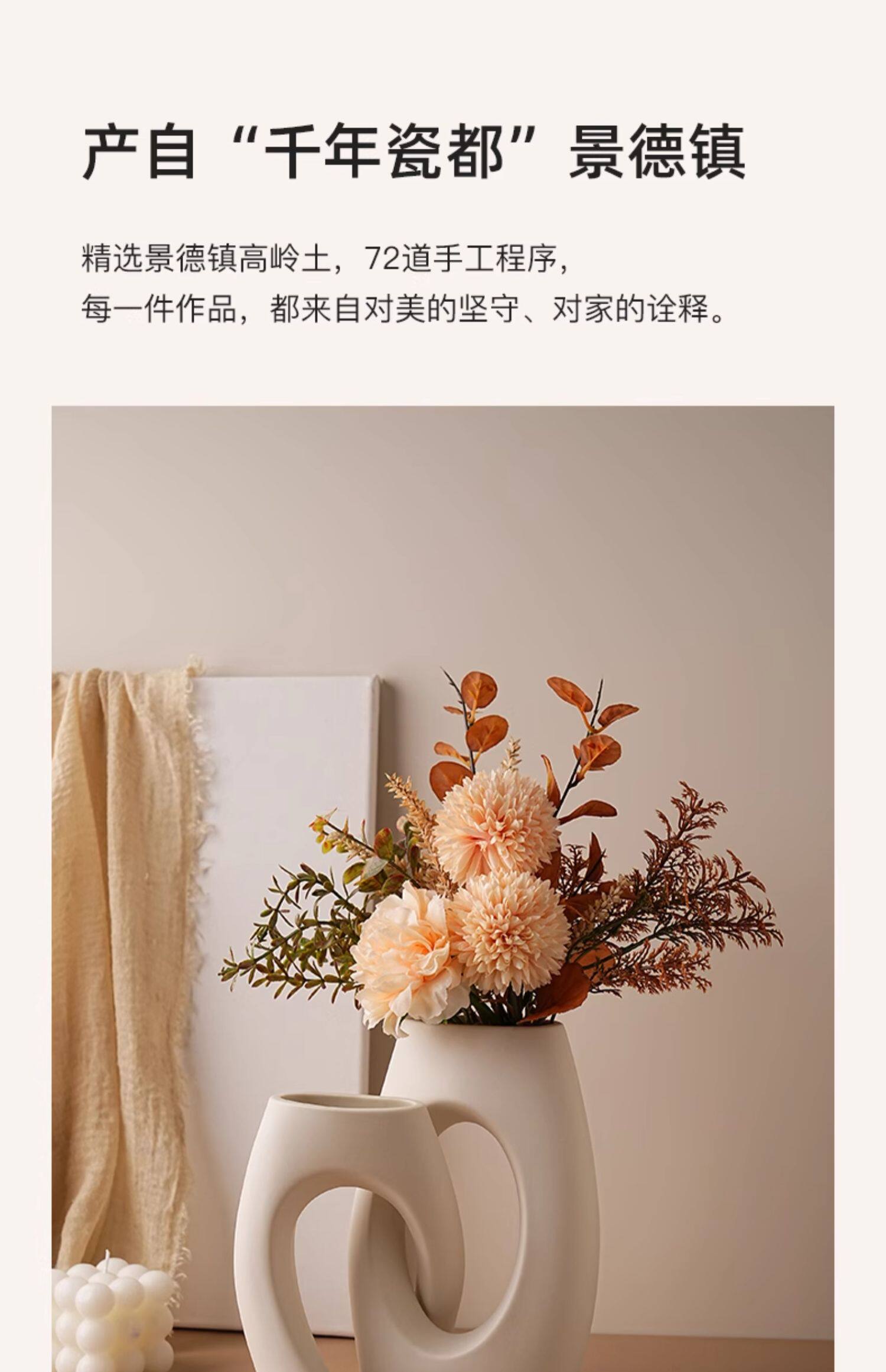 创意陶瓷花瓶轻奢摆件高级感客厅餐桌干花侘寂风艺术装饰品