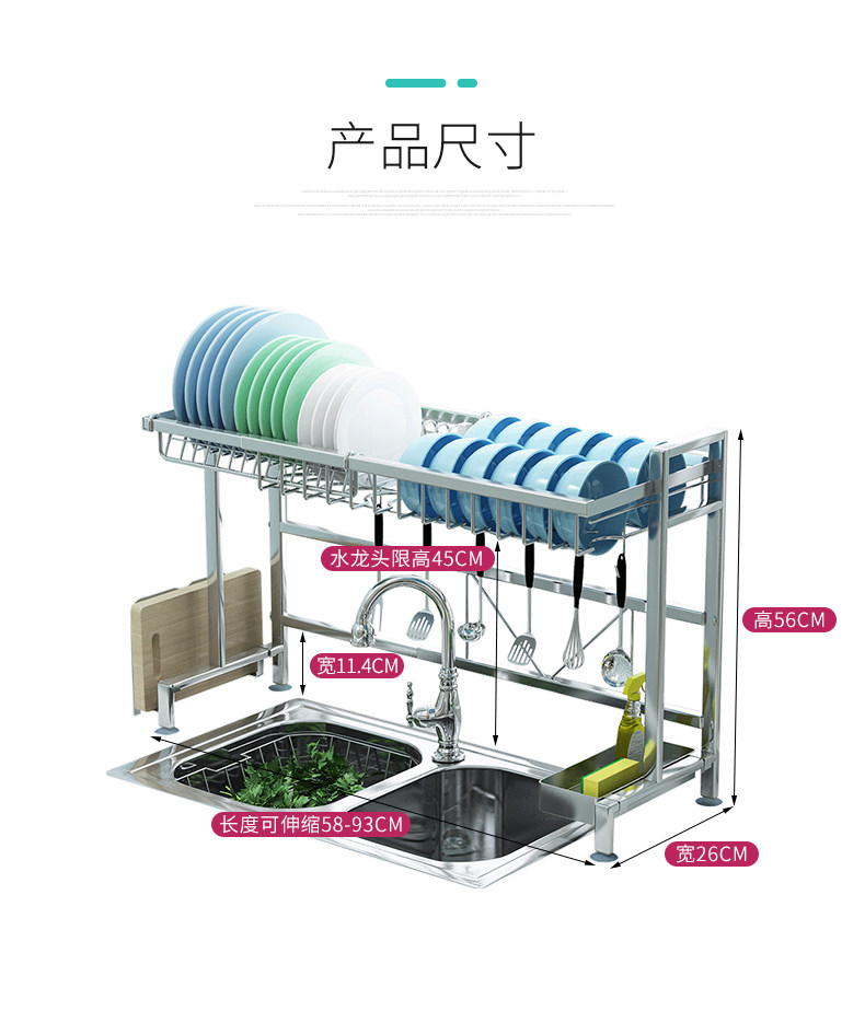 可伸缩不锈钢厨房置物架单水槽上方碗碟收纳放洗菜池洗碗盆沥水架