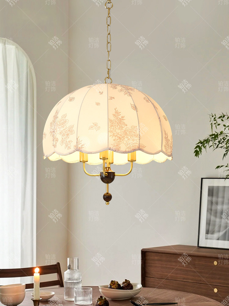 法式中古餐厅布艺吊灯美式复古花纹实木吧台卧室衣帽间诧寂风灯具