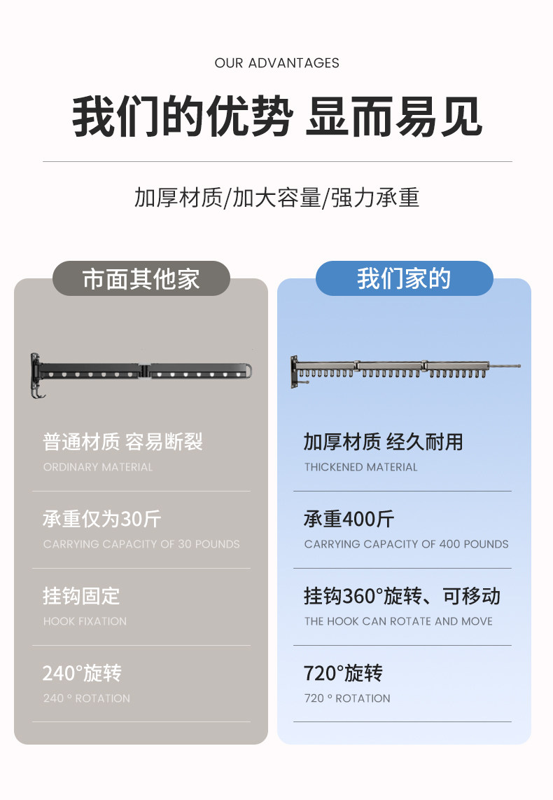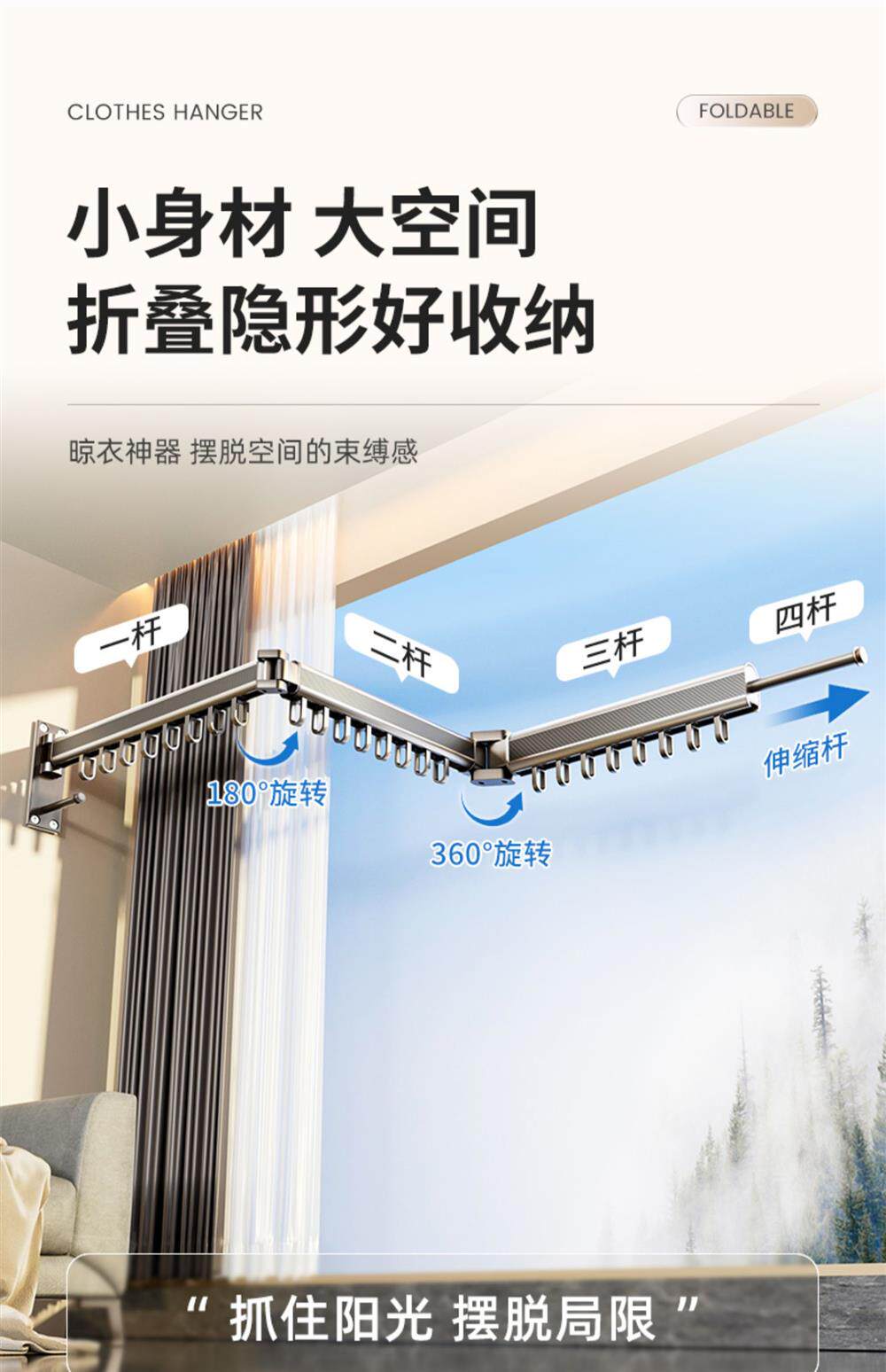 日本KGL折叠晾衣架家用隐形可伸缩壁挂阳台晒被室内外收缩单杆