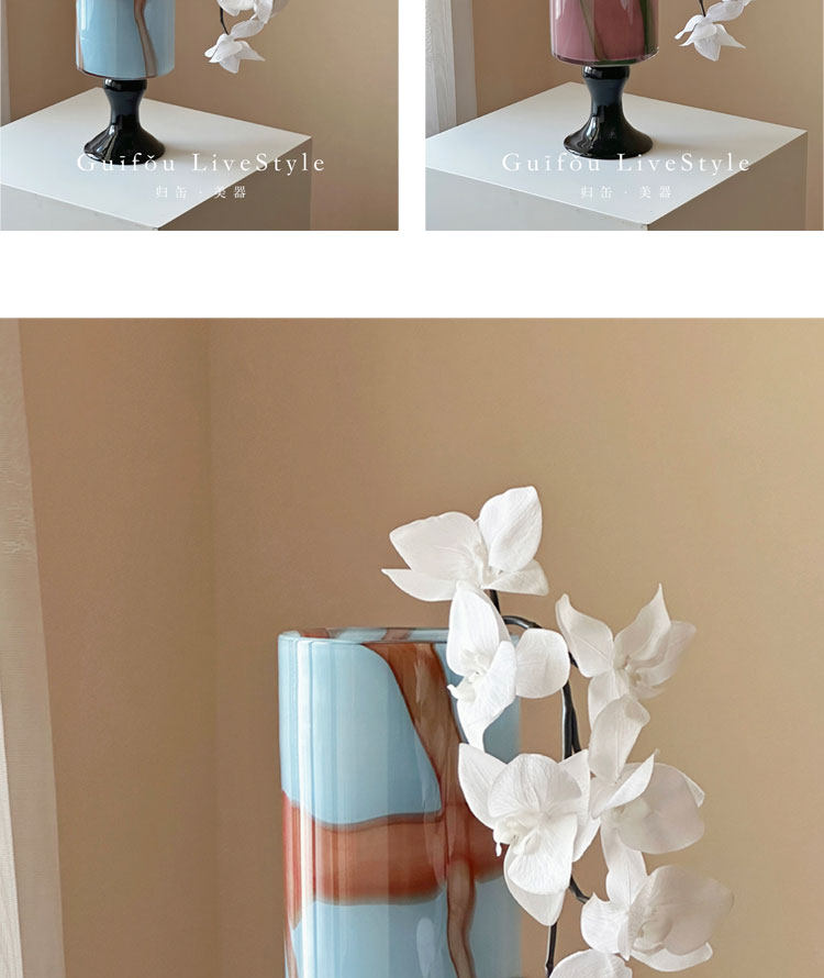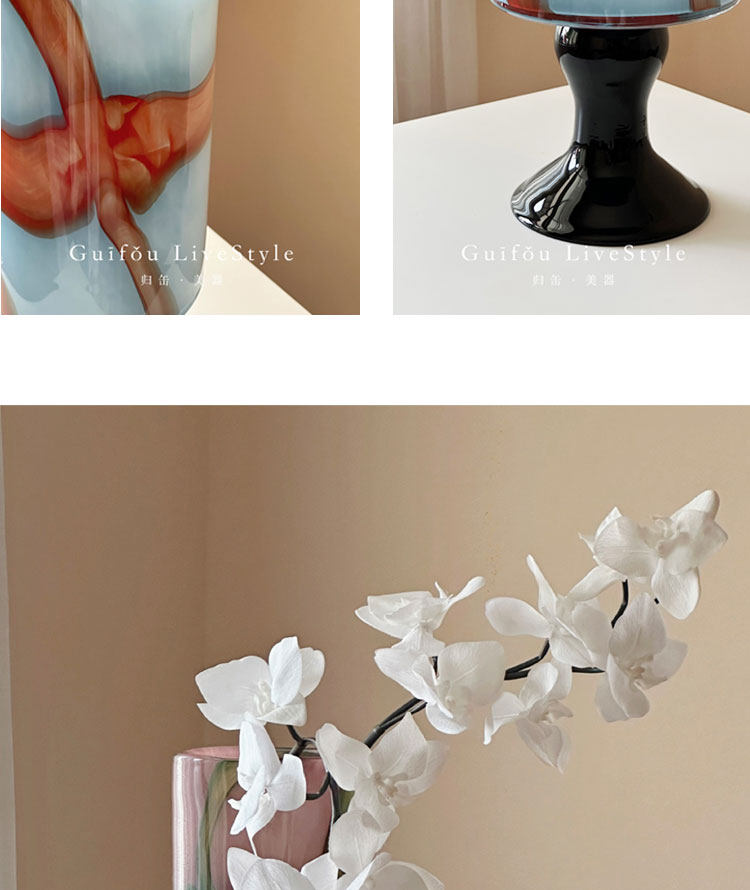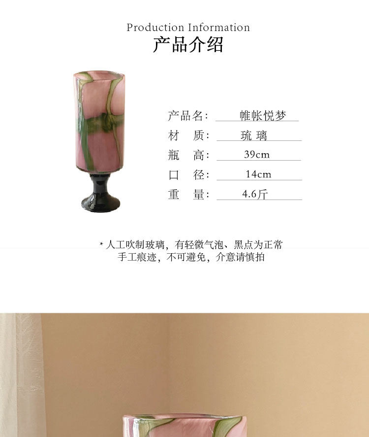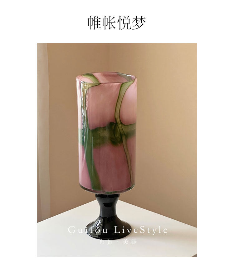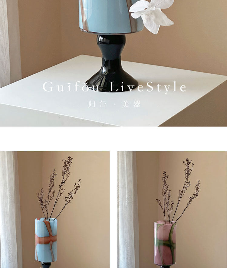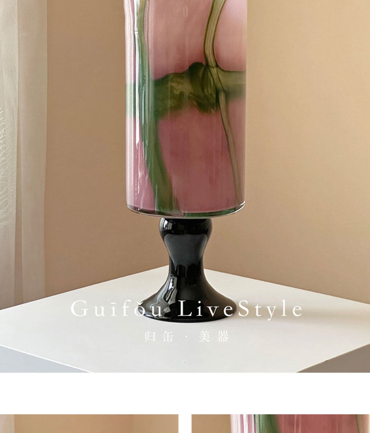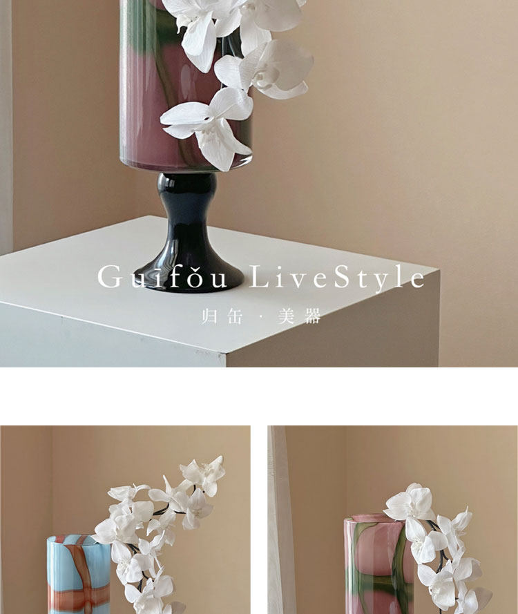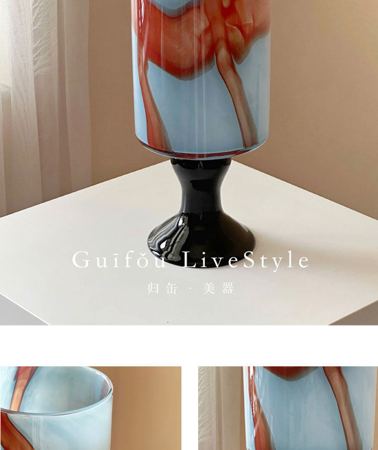 中古琉璃花瓶新中式高级感高脚客厅玄关摆件彩色玻璃冬青花器