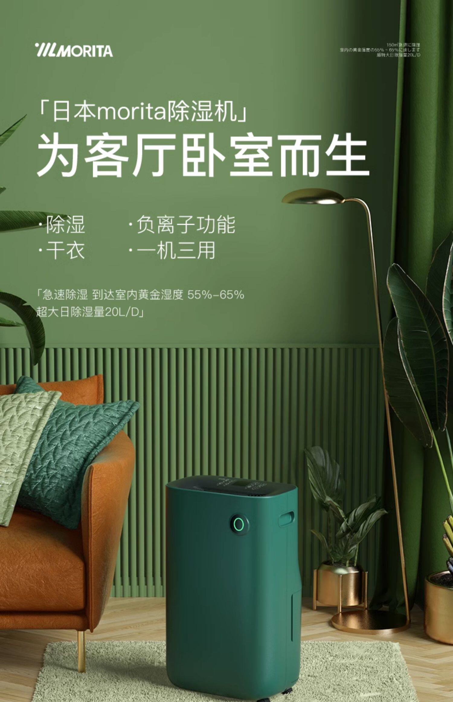morita森田除湿机家用室内卧室低噪吸湿器地下室抽湿机干衣干燥机