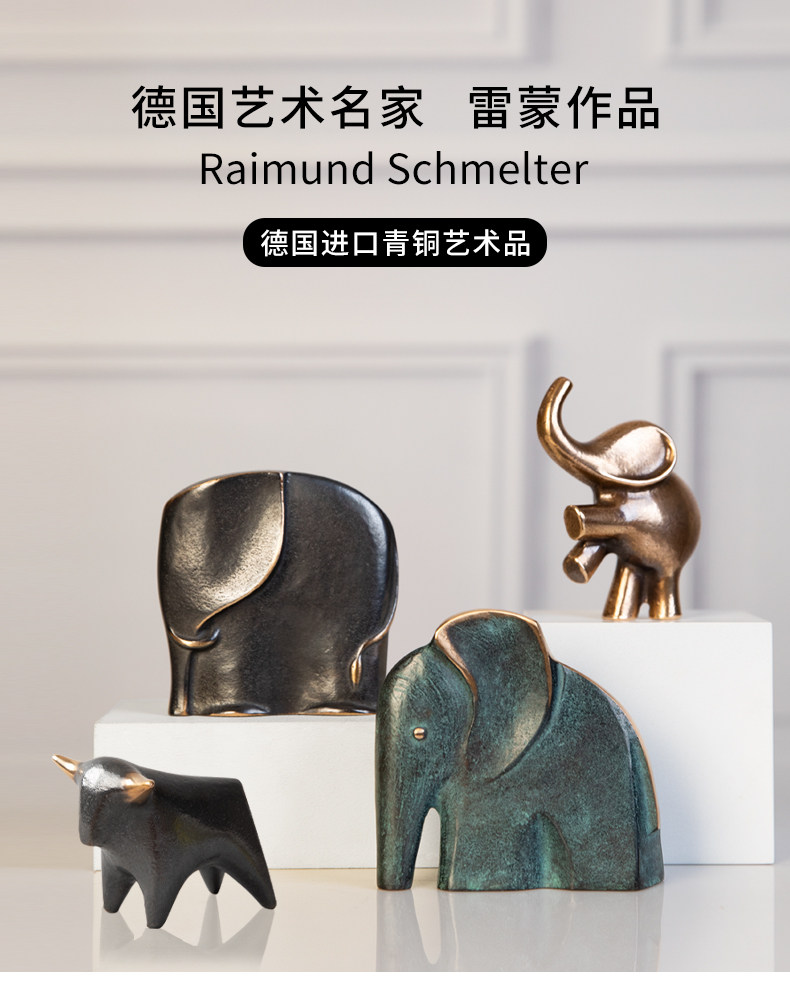 德国进口大象摆件牛青铜雕塑艺术品客厅玄关书房装饰公司开业礼品