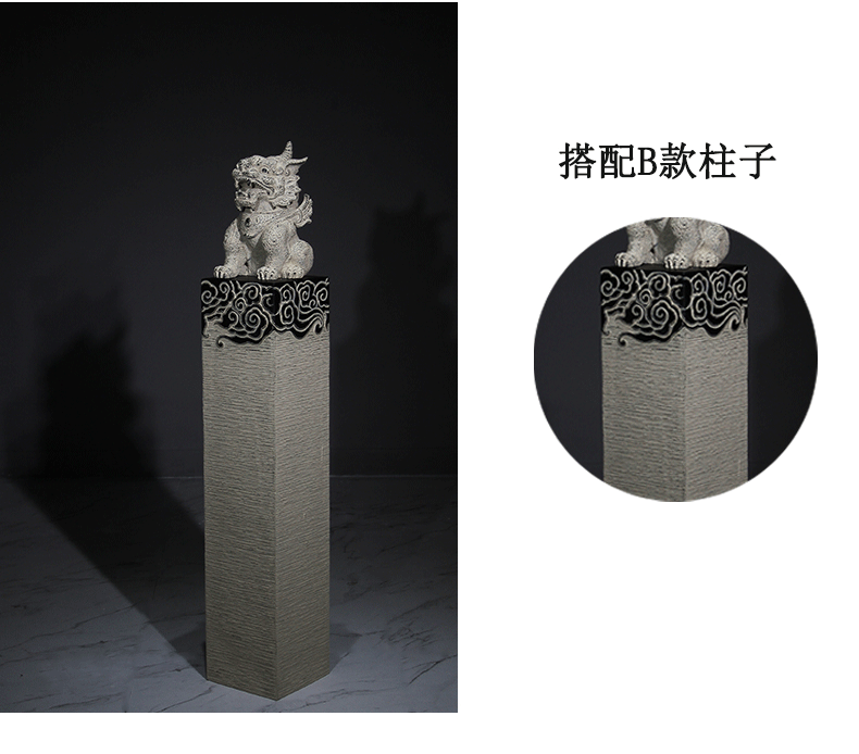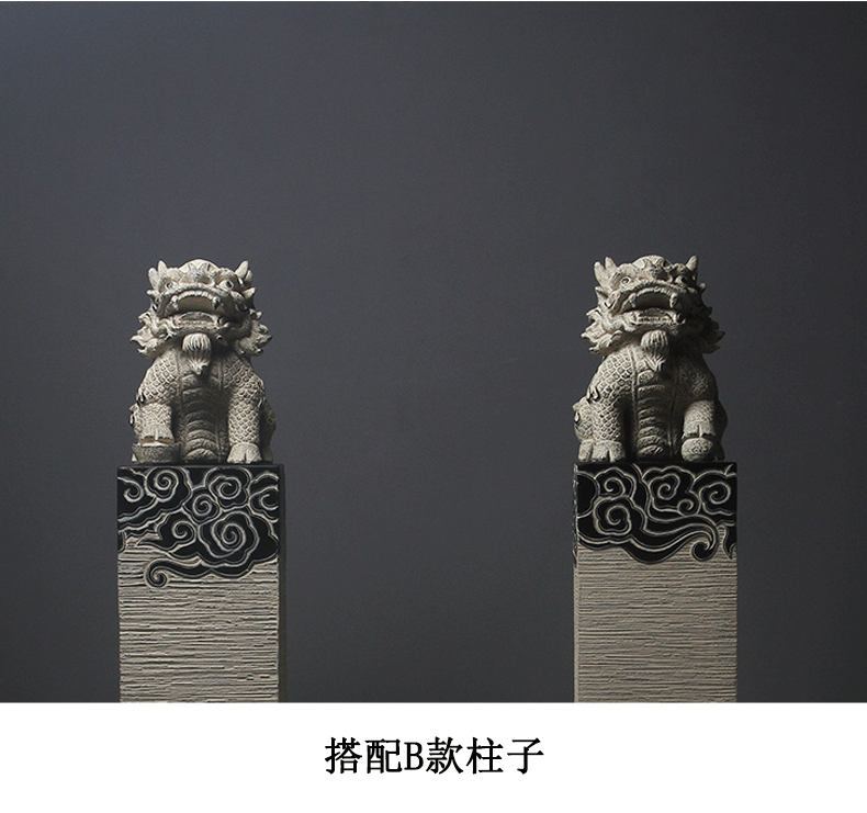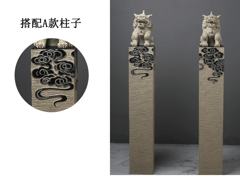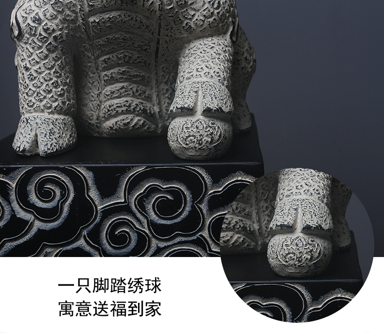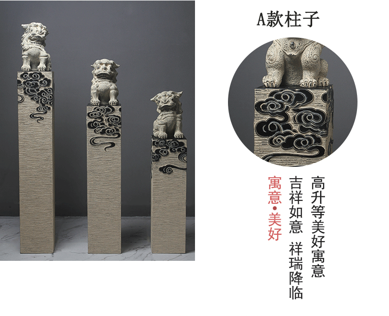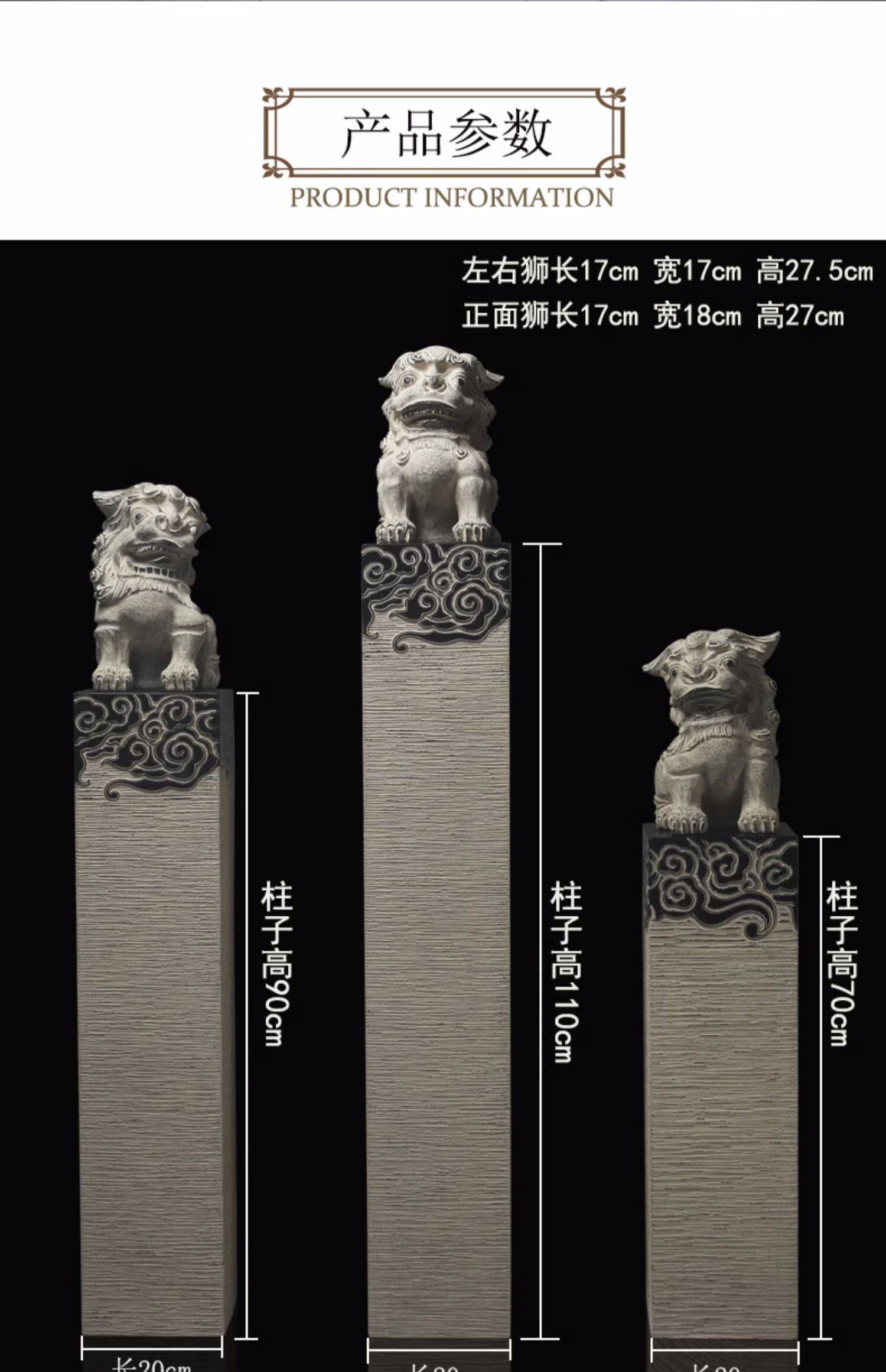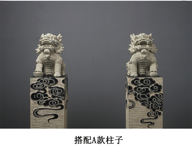 新中式仿石仿古栓马柱酒店客厅玄关落地招财镇宅狮子貔貅麒麟摆件
