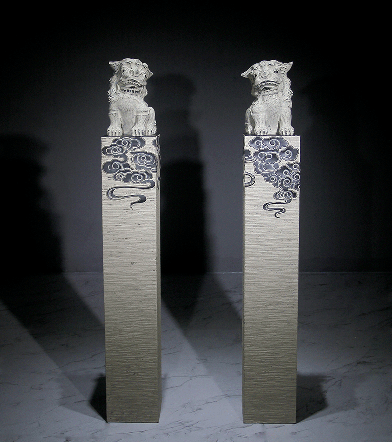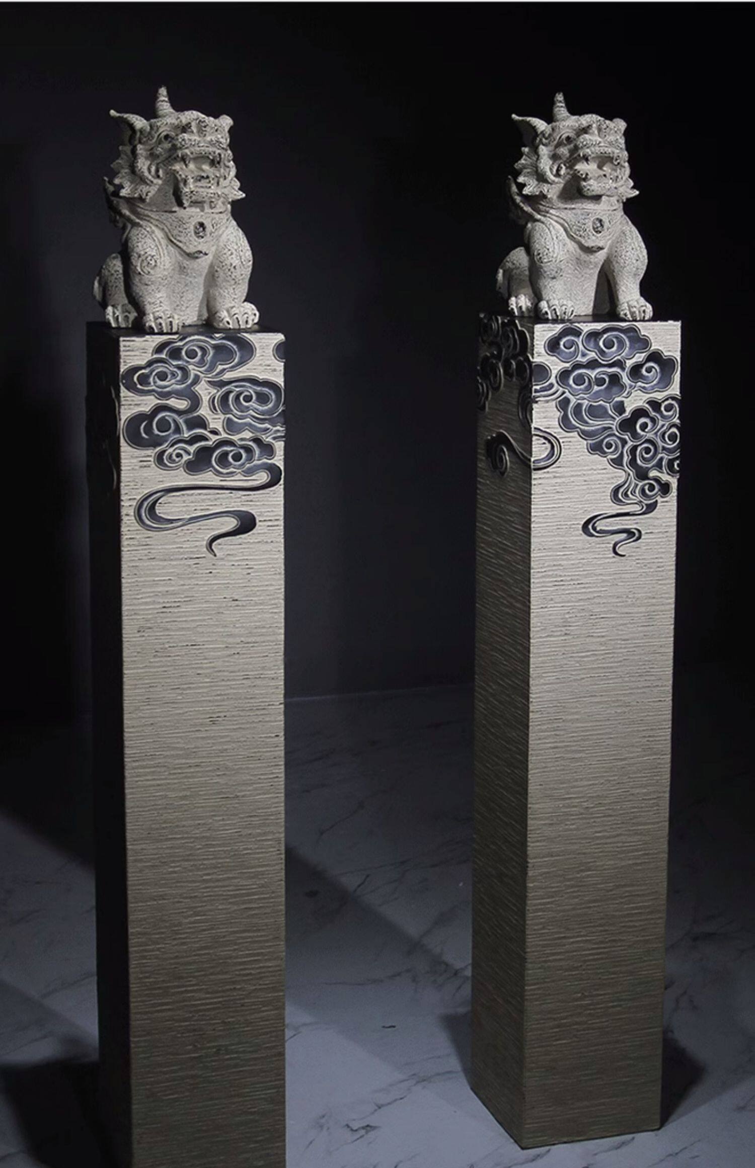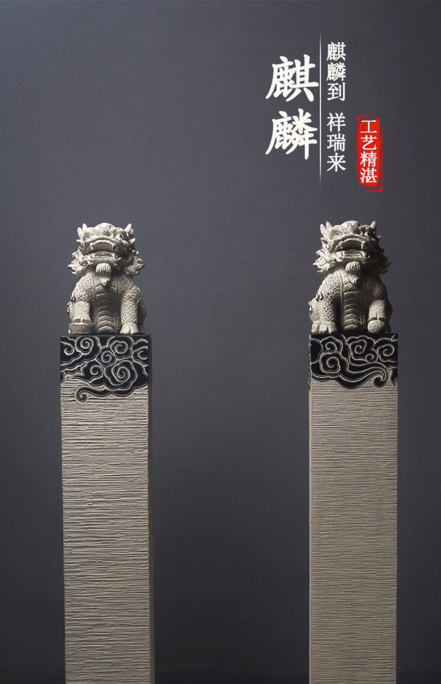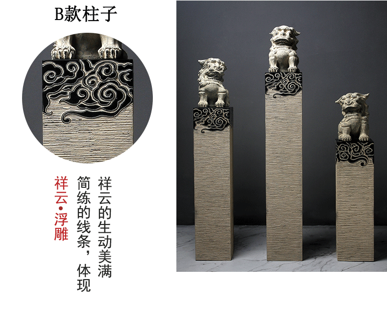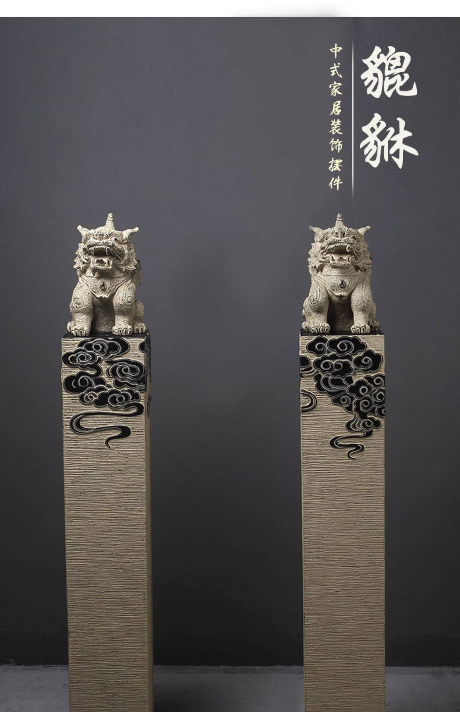 新中式仿石仿古栓马柱酒店客厅玄关落地招财镇宅狮子貔貅麒麟摆件