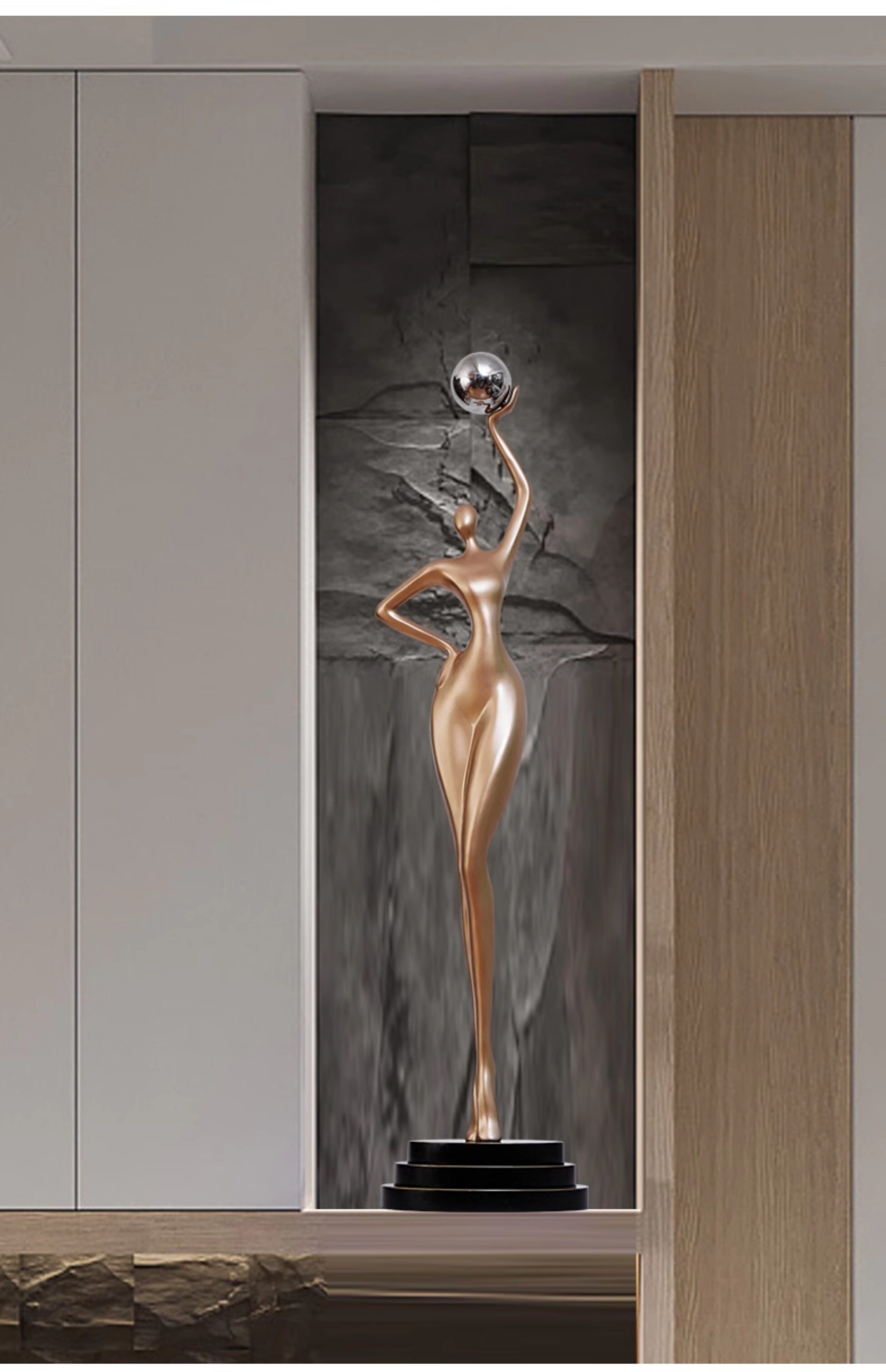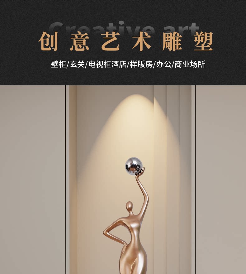 轻奢客厅装饰品摆件玄关电视柜竖高意式抽象人物艺术雕塑高级感