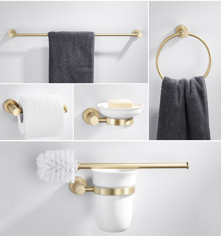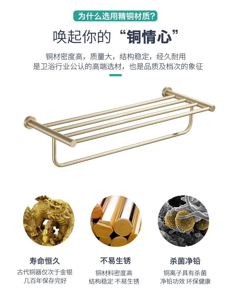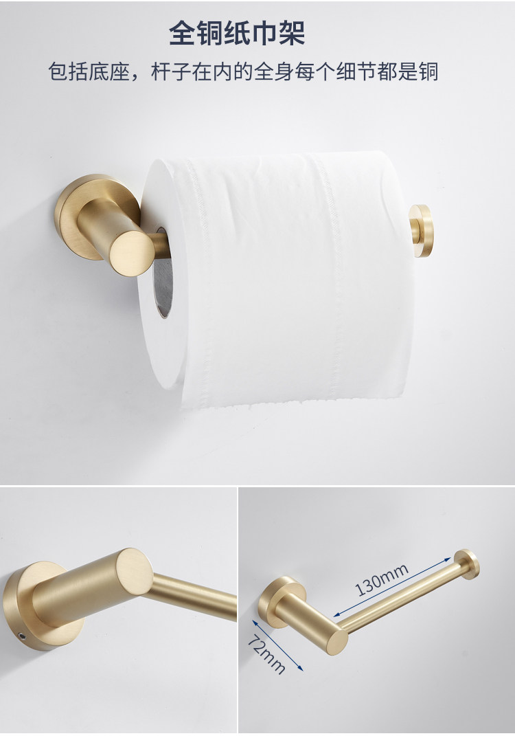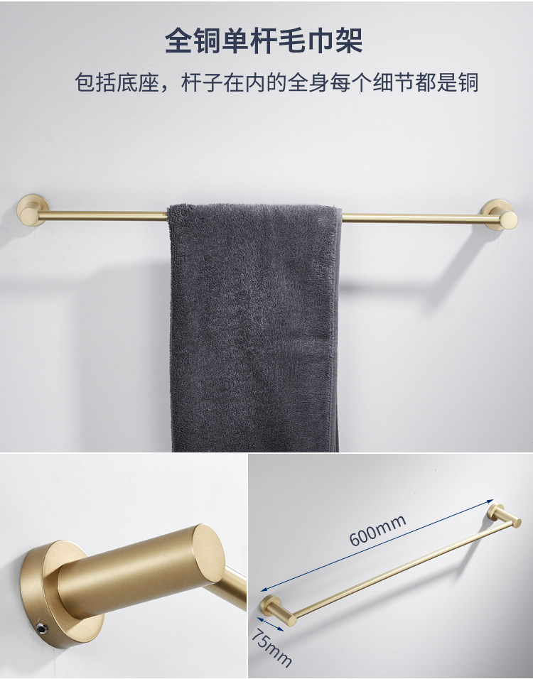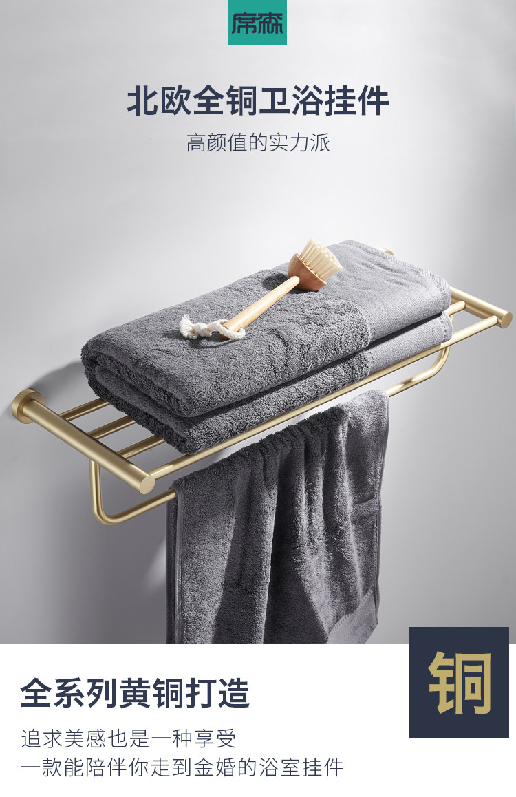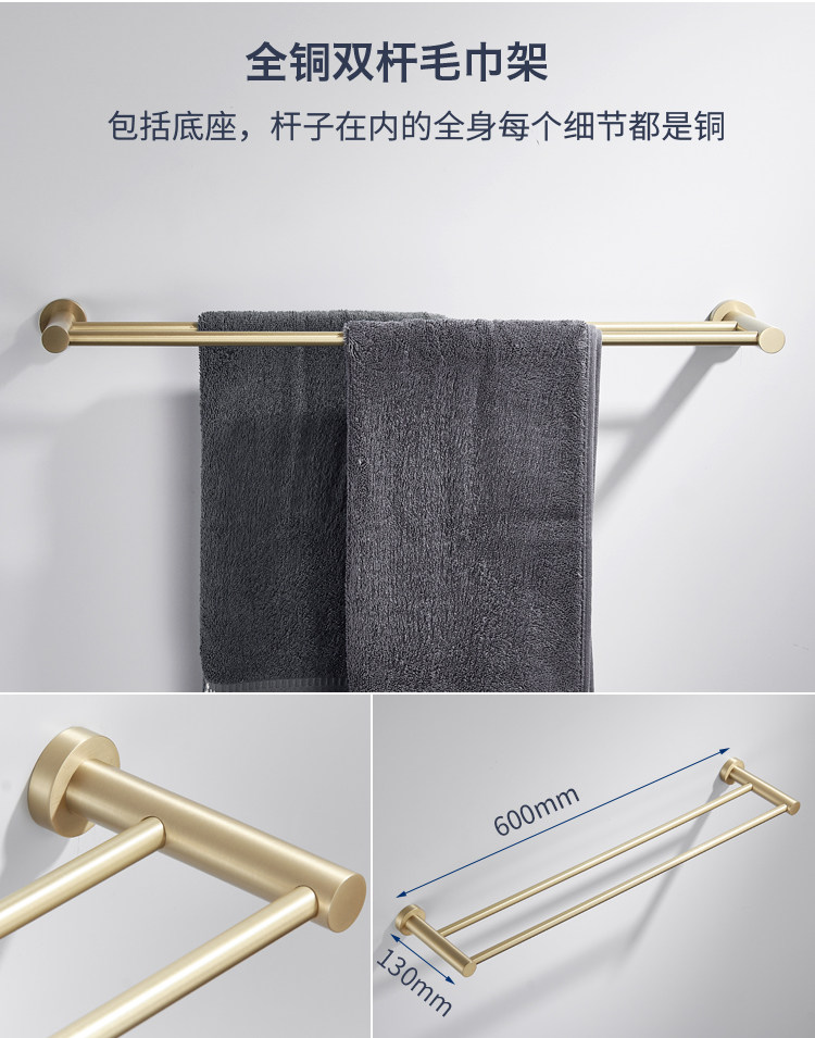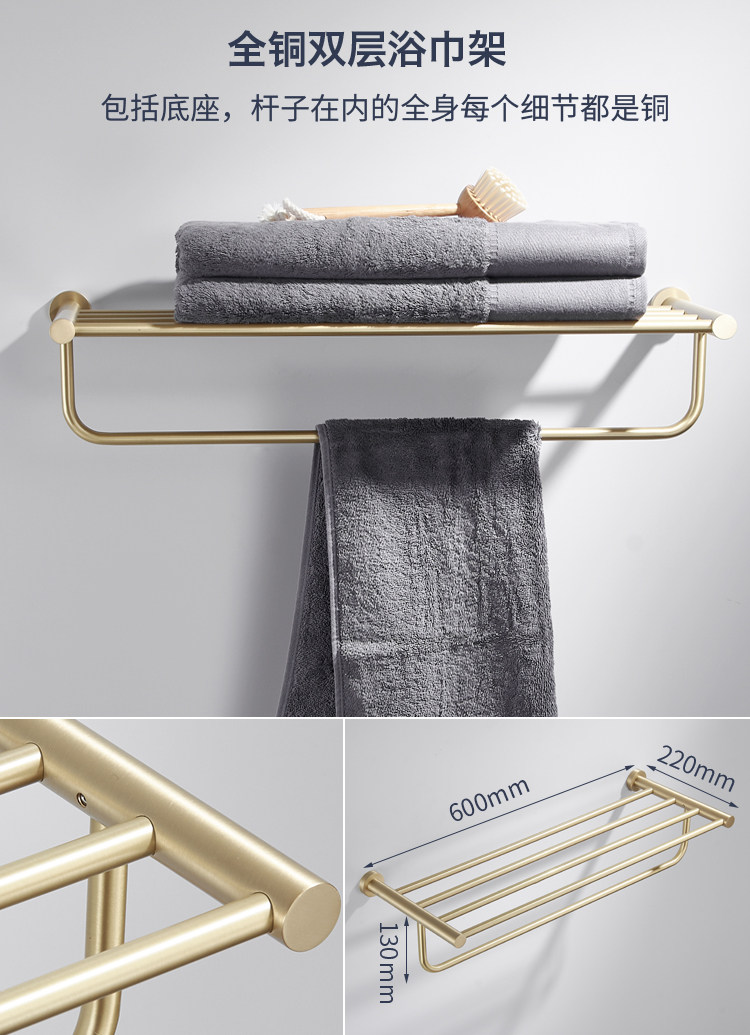 卫生间全铜金色毛巾架黄铜拉丝置物架北欧浴室五金挂件套装