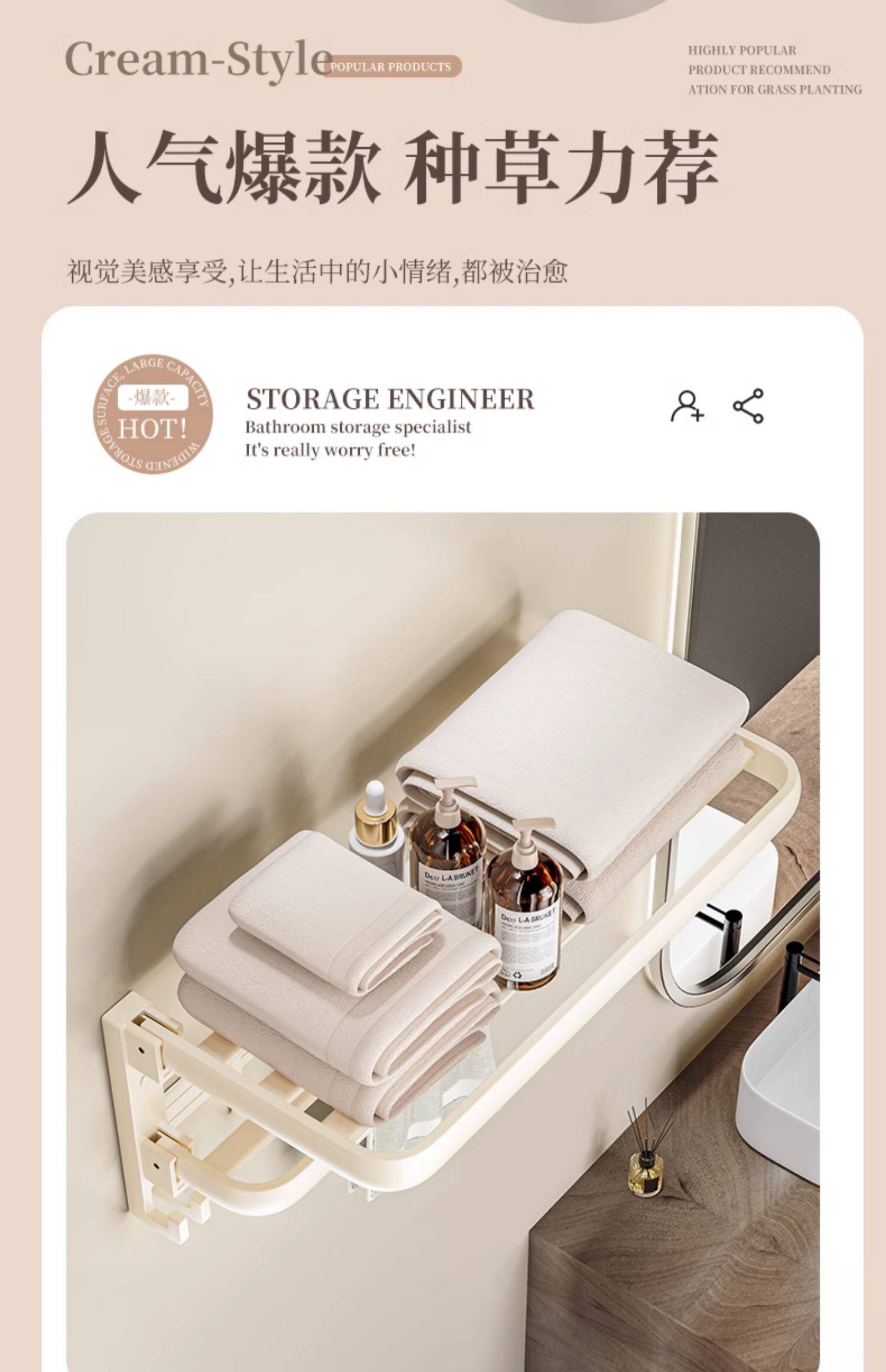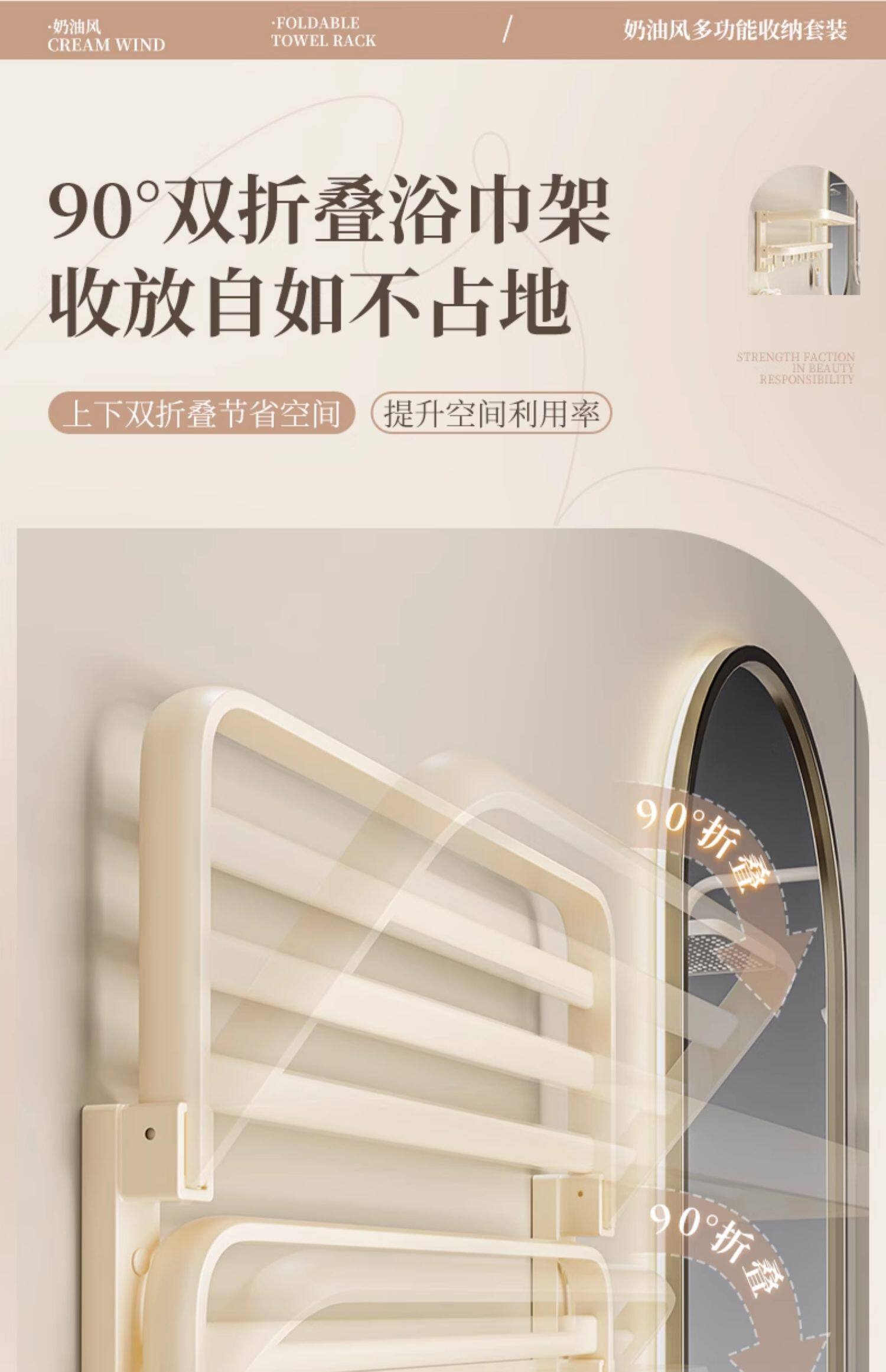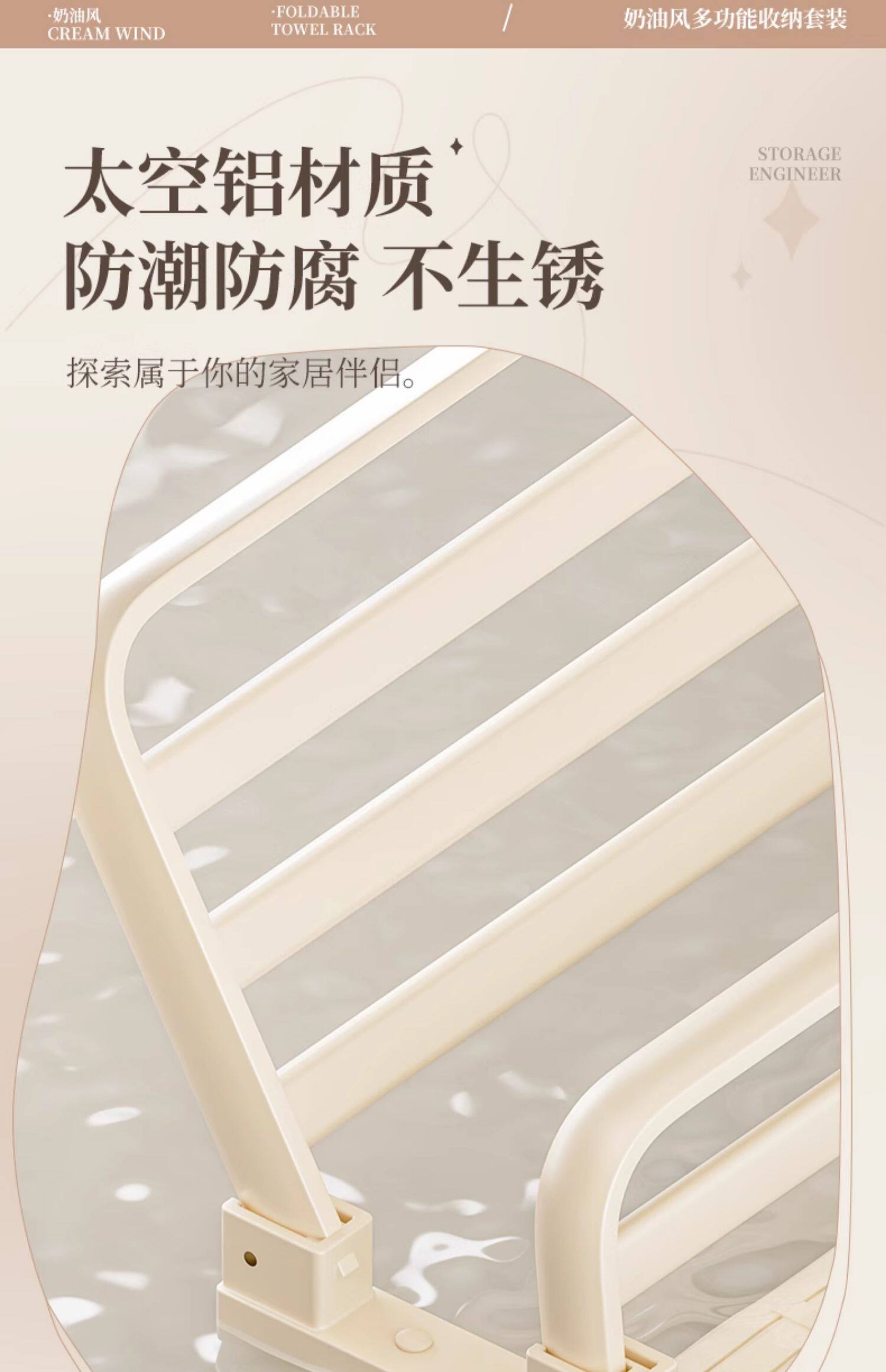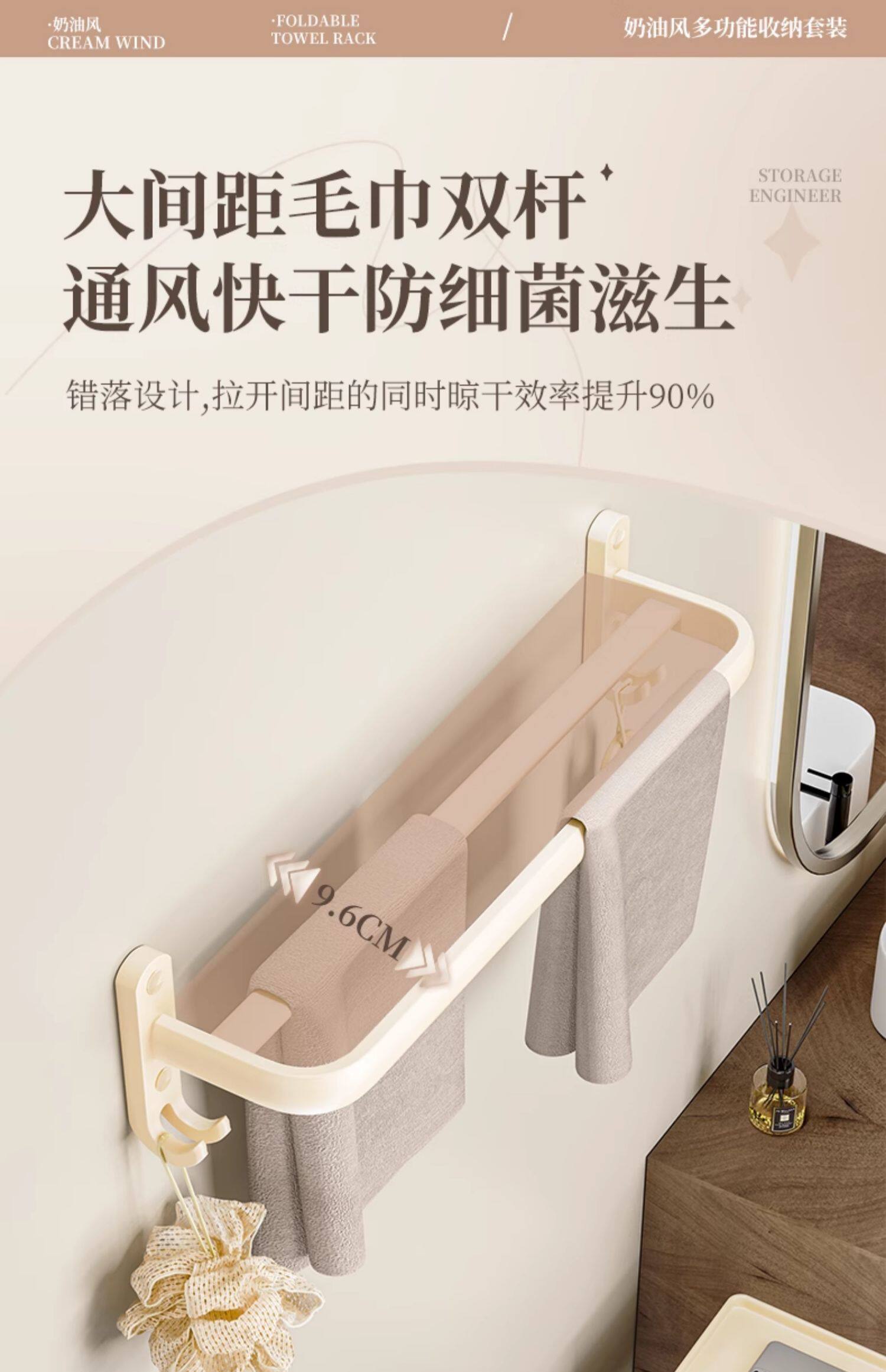 奶白色浴室置物架五件套毛巾架免打孔卫浴卫生间厕所五金挂件套装