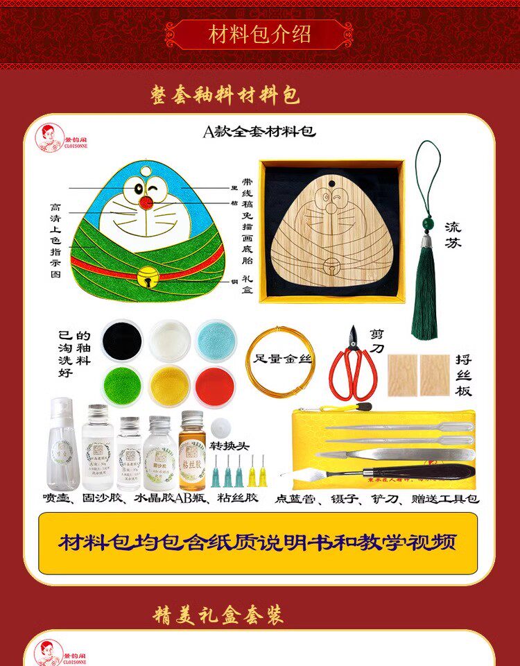颜色分类:A款粽子哆啦A梦全套材料包 B款粽子海绵宝宝全套材料包 C款粽子蝴蝶结全套材料包 D款粽子全套材料包 E款粽子繁花纹全套材料包(沙面) E款粽子繁花纹全套材料包(亮面) F款粽子卷草纹全套材料包(沙面) F款粽子卷草纹全套材料包(亮面) (两个一组)E款+F款粽子书签精美礼盒套装(沙面) 单独粽子书签底胎+流苏+盒子 工具包 可重复使用 沙面胶丝包 釉面胶丝包 A款粽子哆啦A梦底胎+釉料 B款粽子海绵宝宝底胎+釉料 C款粽子蝴蝶结底胎+釉料 D款粽子底胎+釉料 E款粽子繁花纹底胎+釉料 F款粽子卷草纹底胎+釉料 单个代掐丝服务(ABCD款) 单个代掐丝服务(EF款) 单个成品(ABCD款) 单个成品(EF款) 来图定制材料包 来图定制成品