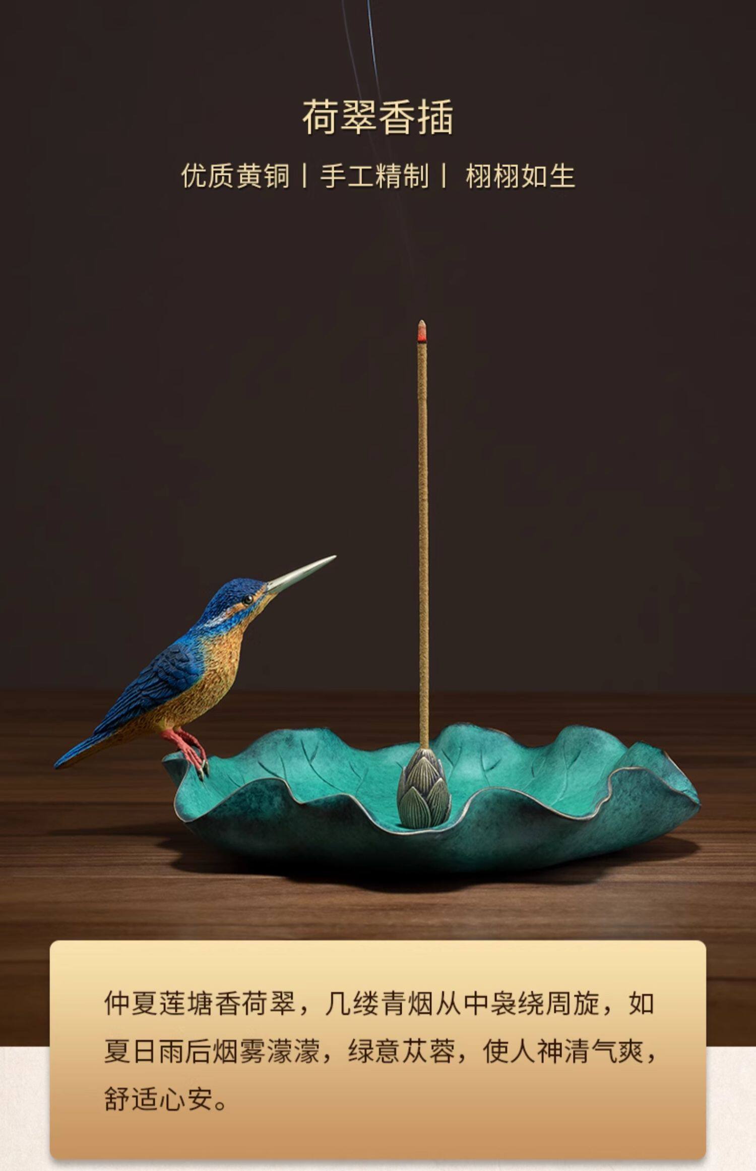 铜师傅 铜摆件《荷翠香插》铜工艺品 家居香炉 客厅桌面装饰品