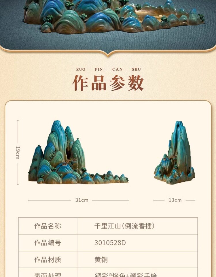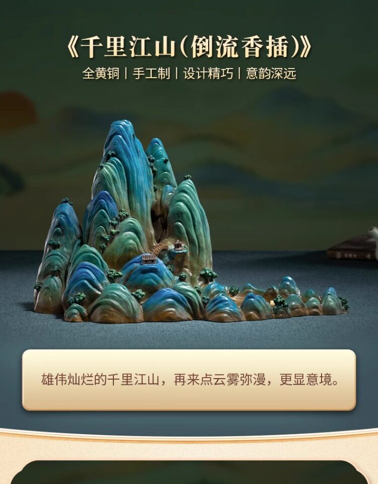 铜师傅 铜摆件《千里江山(倒流香插)》家居饰品桌面客厅装饰摆件