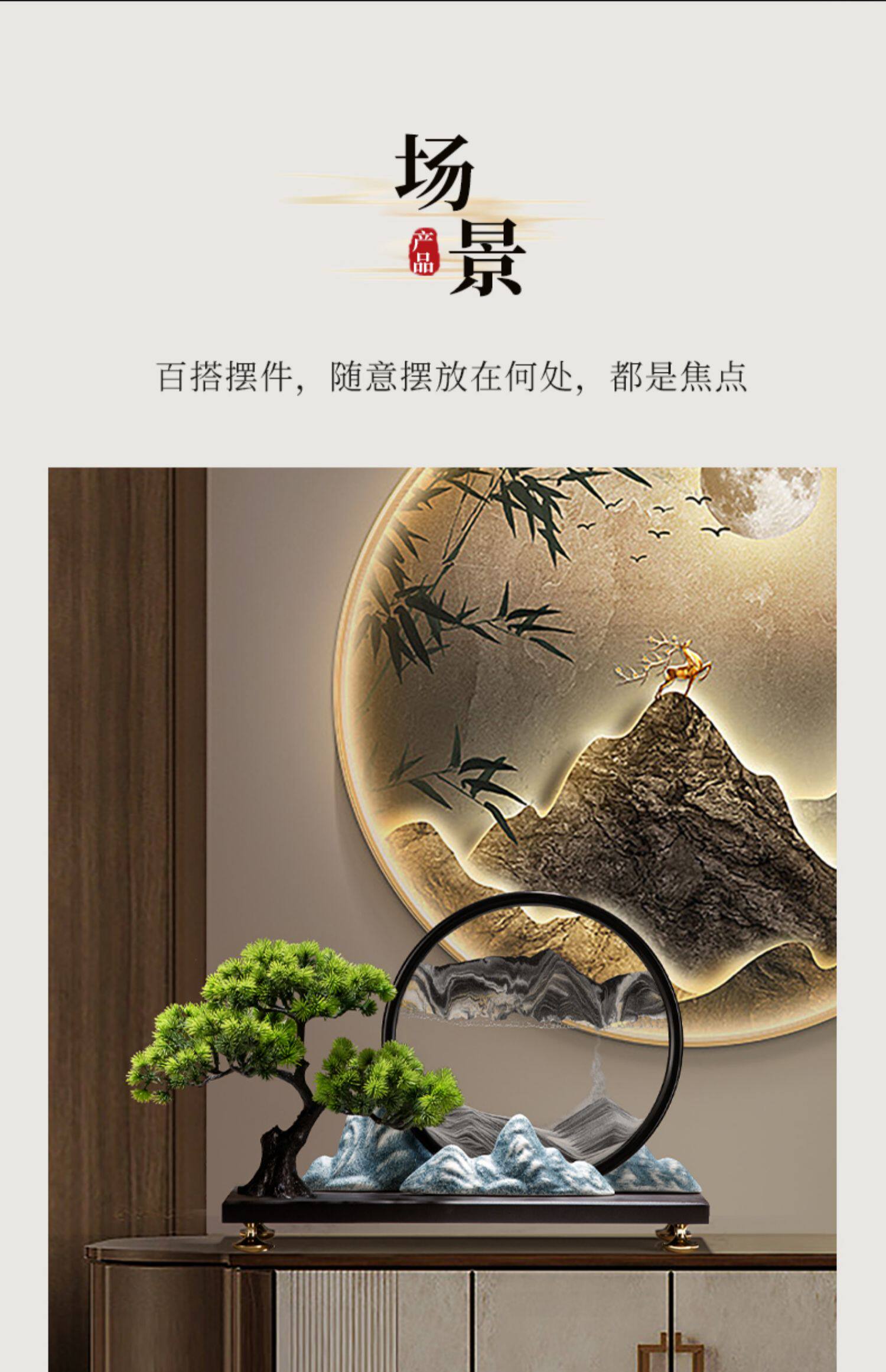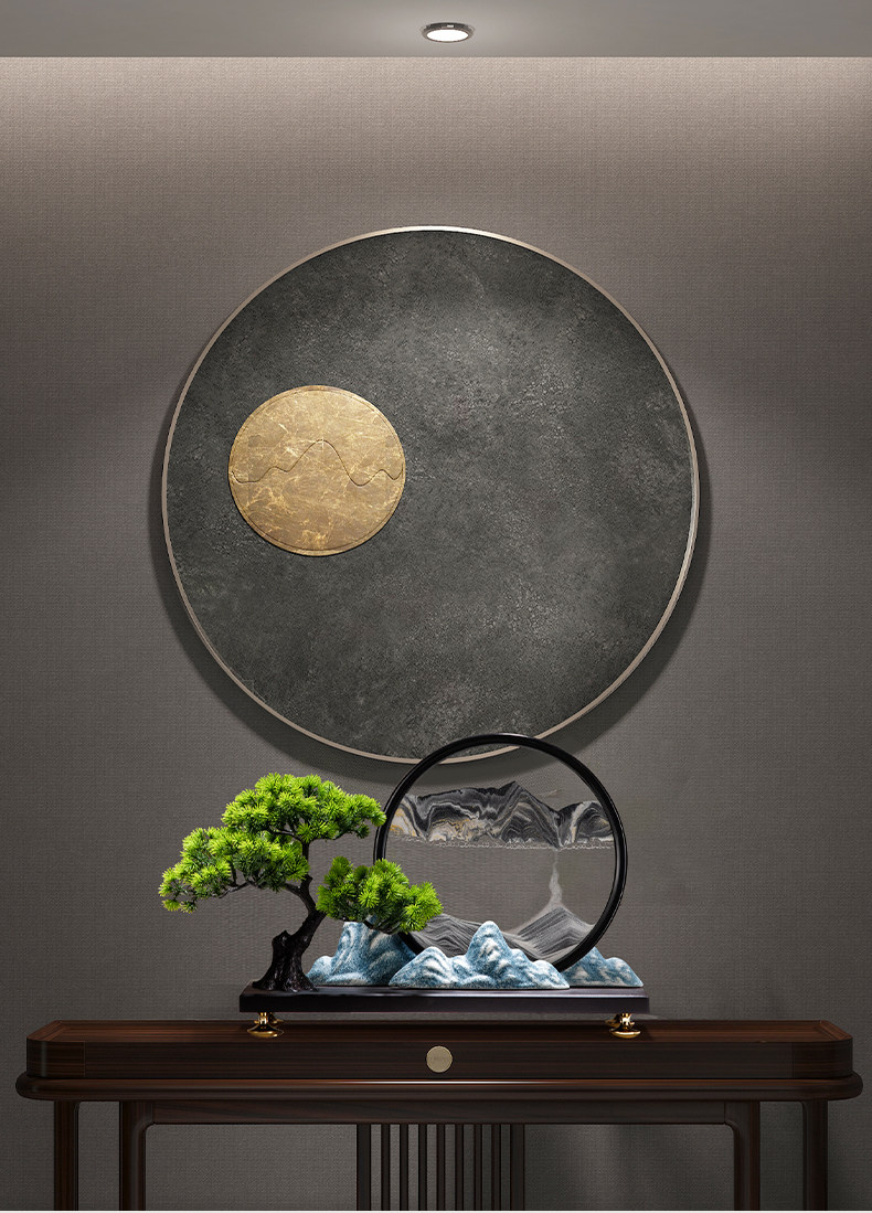 迎客松流沙画办公室办公桌装饰品摆件新中式客厅家居茶室工艺品