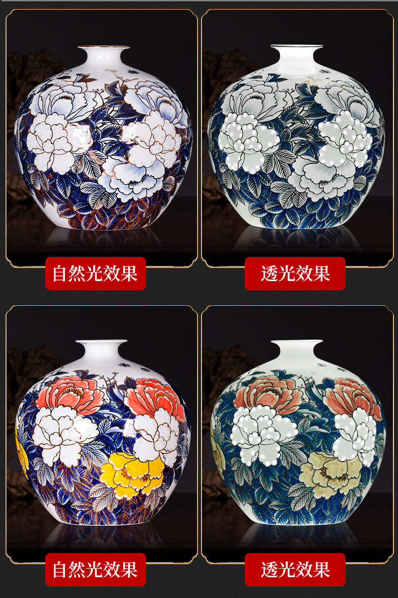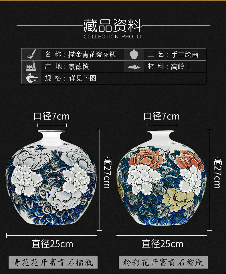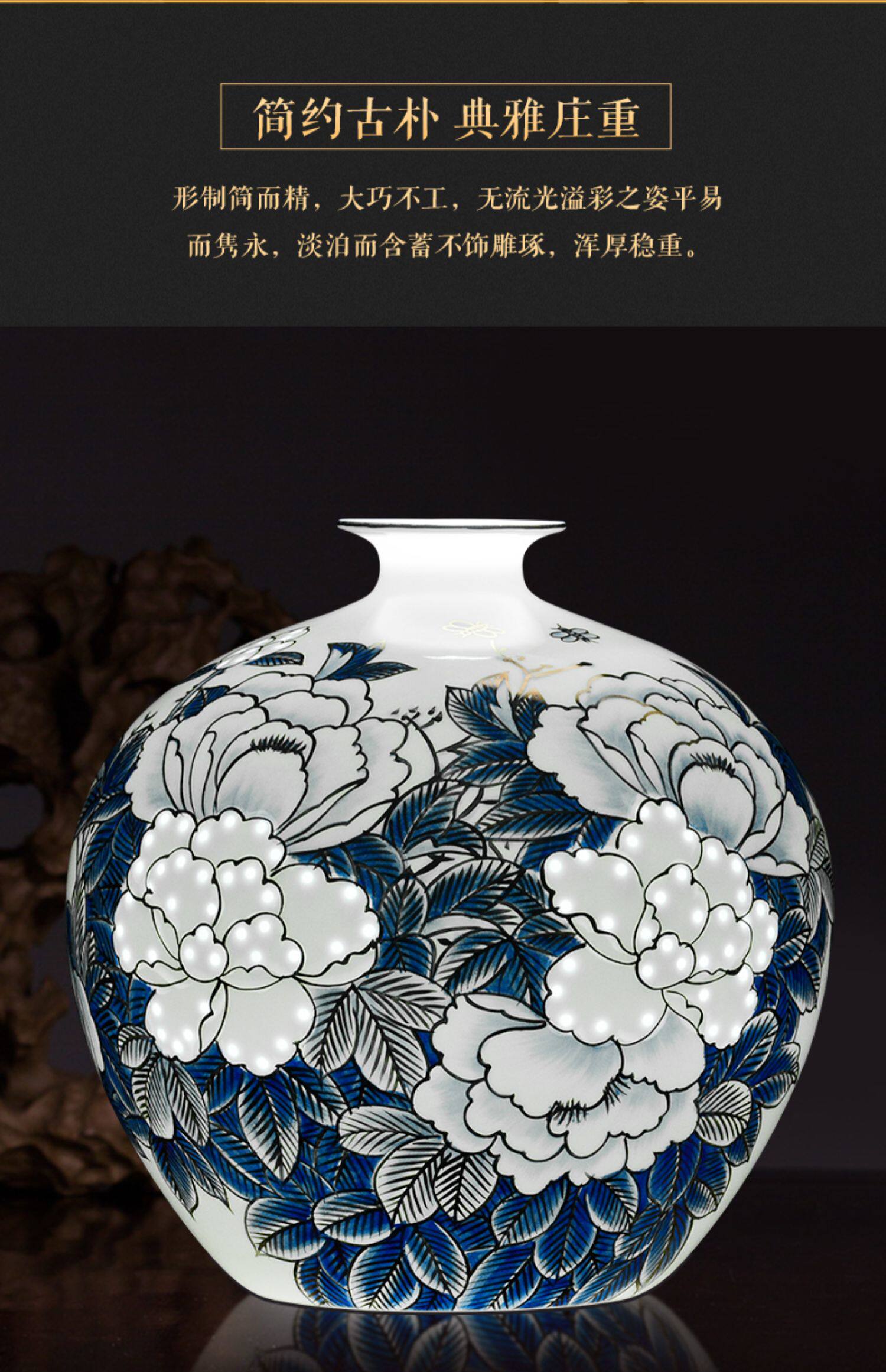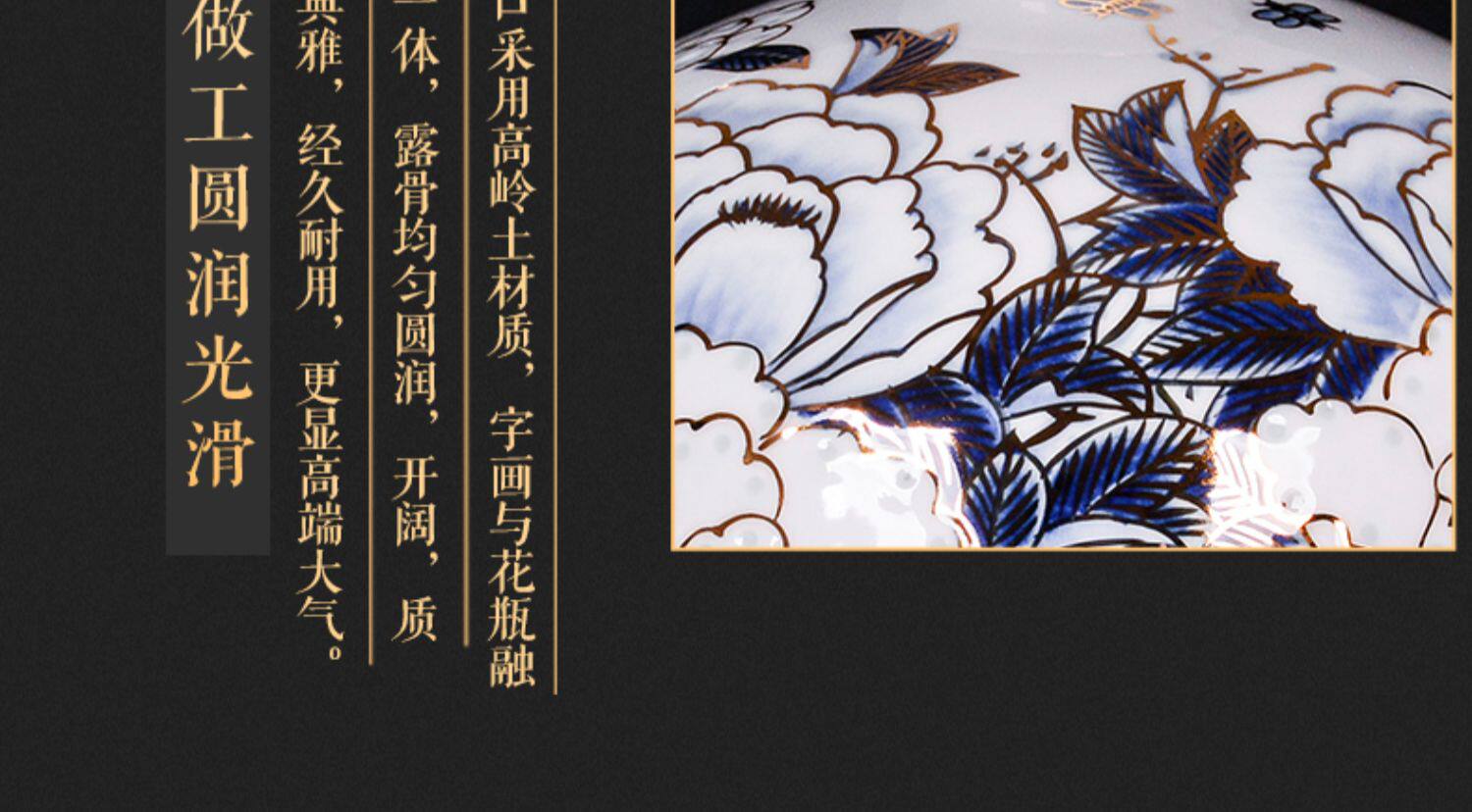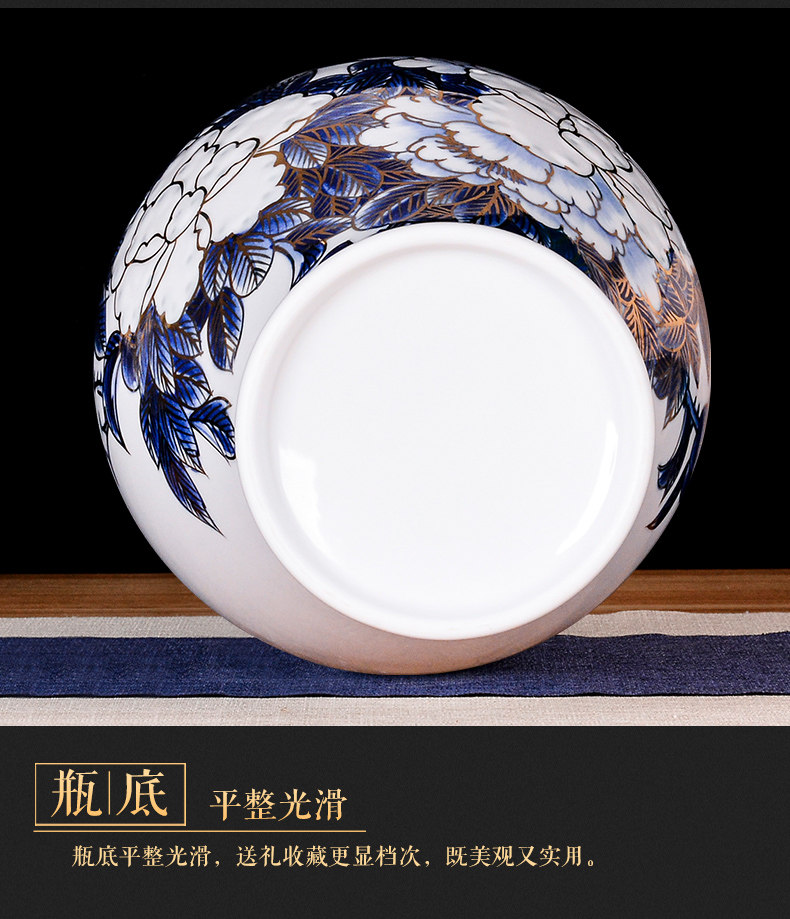 景德镇陶瓷器花瓶大师手绘青花瓷描金瓷瓶中式客厅博古架装饰摆件