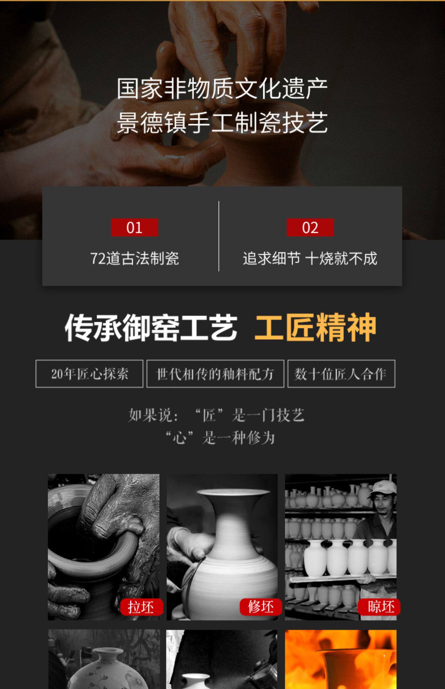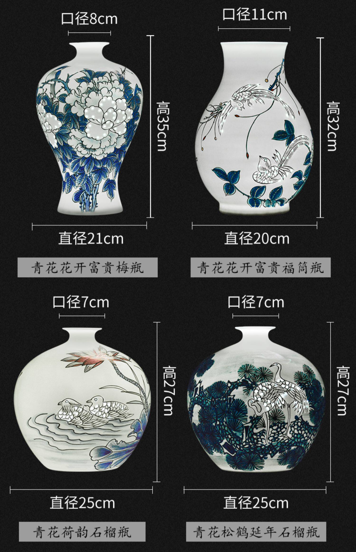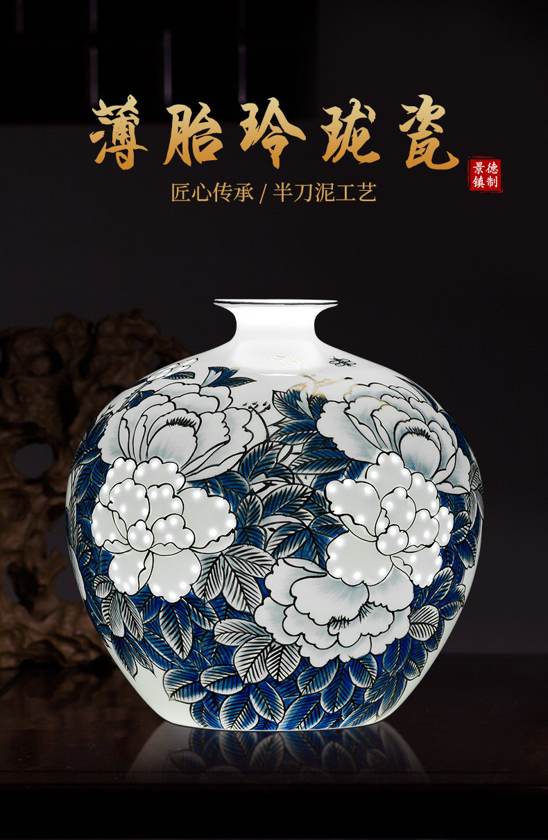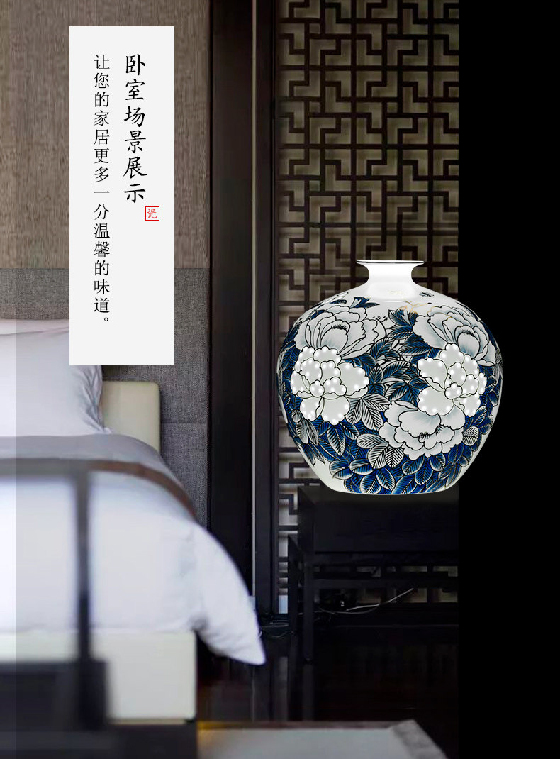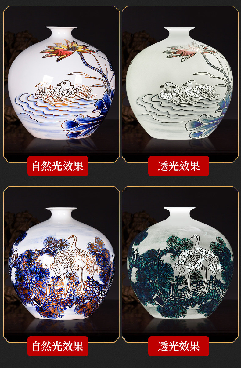 景德镇陶瓷器花瓶大师手绘青花瓷描金瓷瓶中式客厅博古架装饰摆件