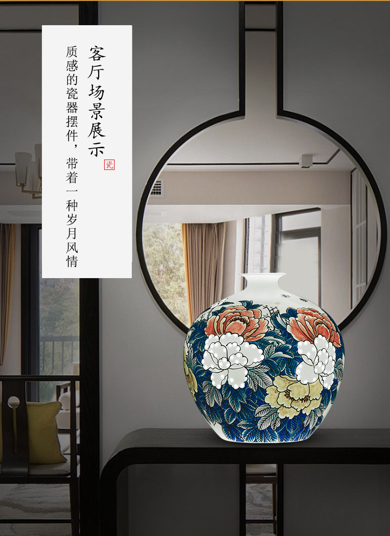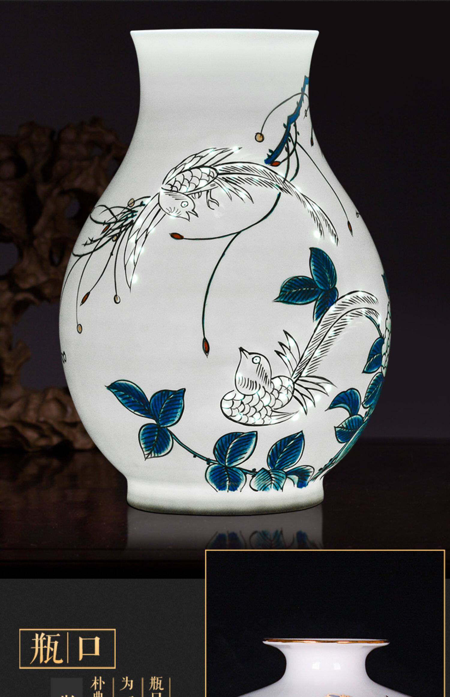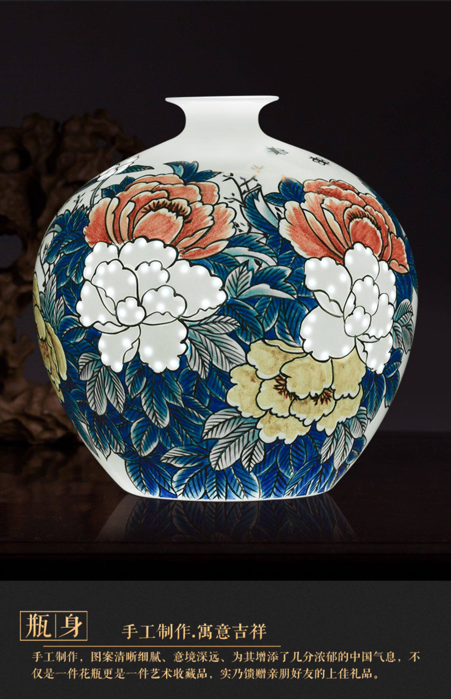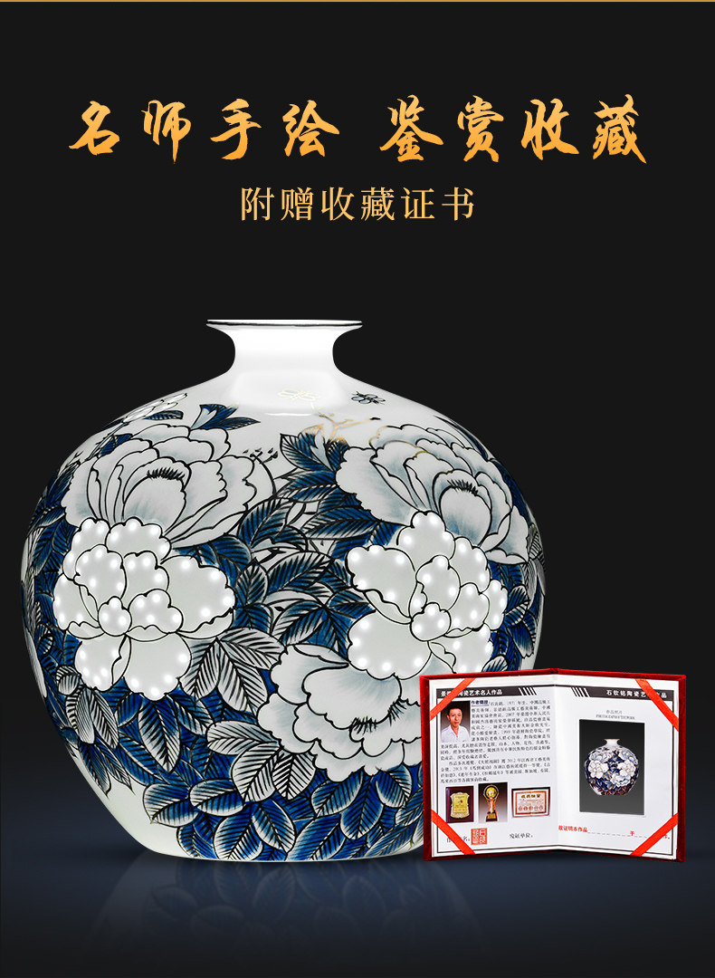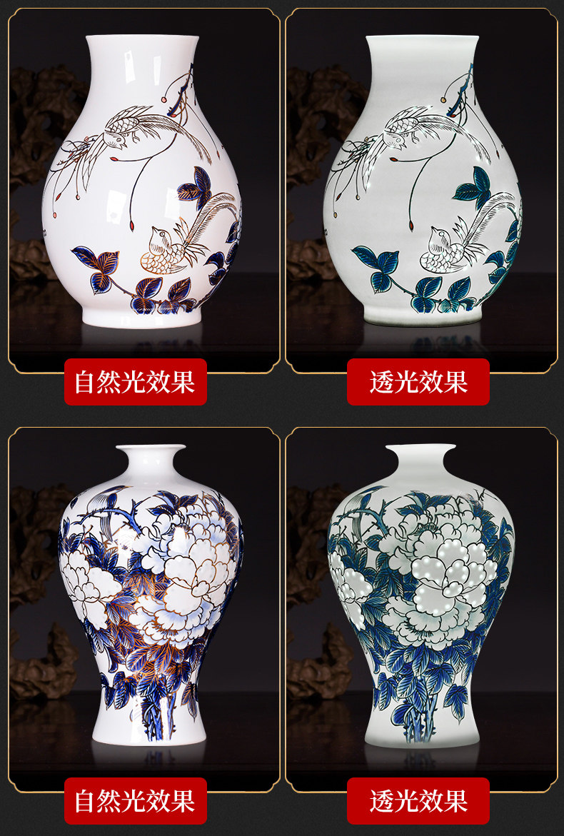 景德镇陶瓷器花瓶大师手绘青花瓷描金瓷瓶中式客厅博古架装饰摆件