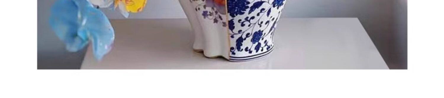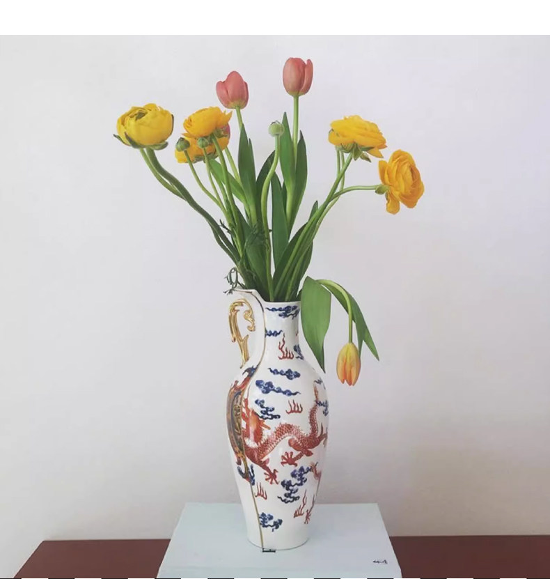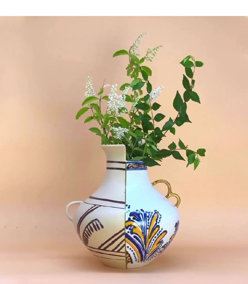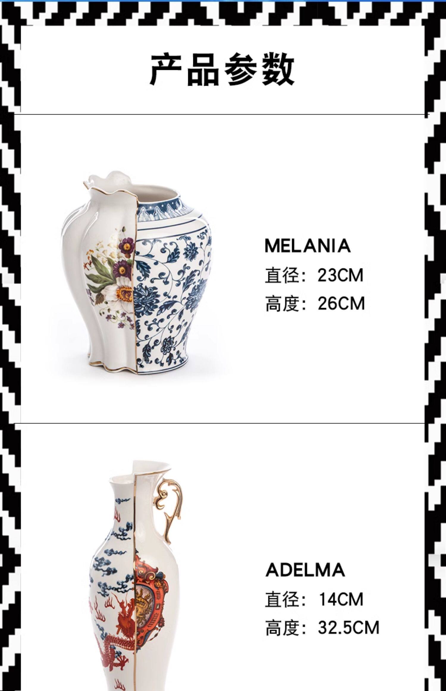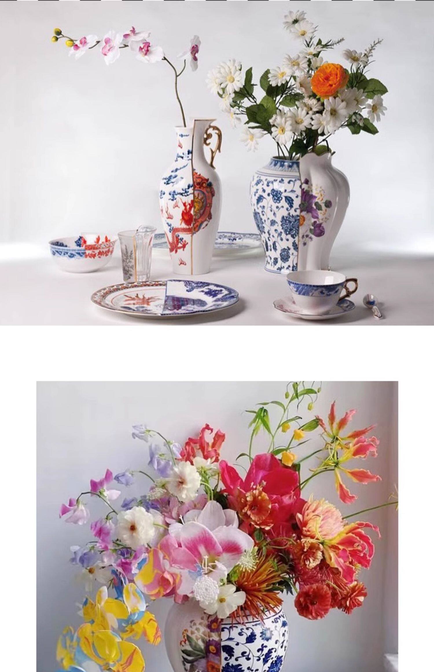 Seletti中西合璧花瓶青花瓷摆件骨瓷客厅餐桌复古拼接图乔迁礼物