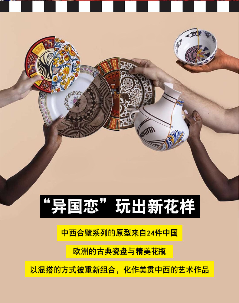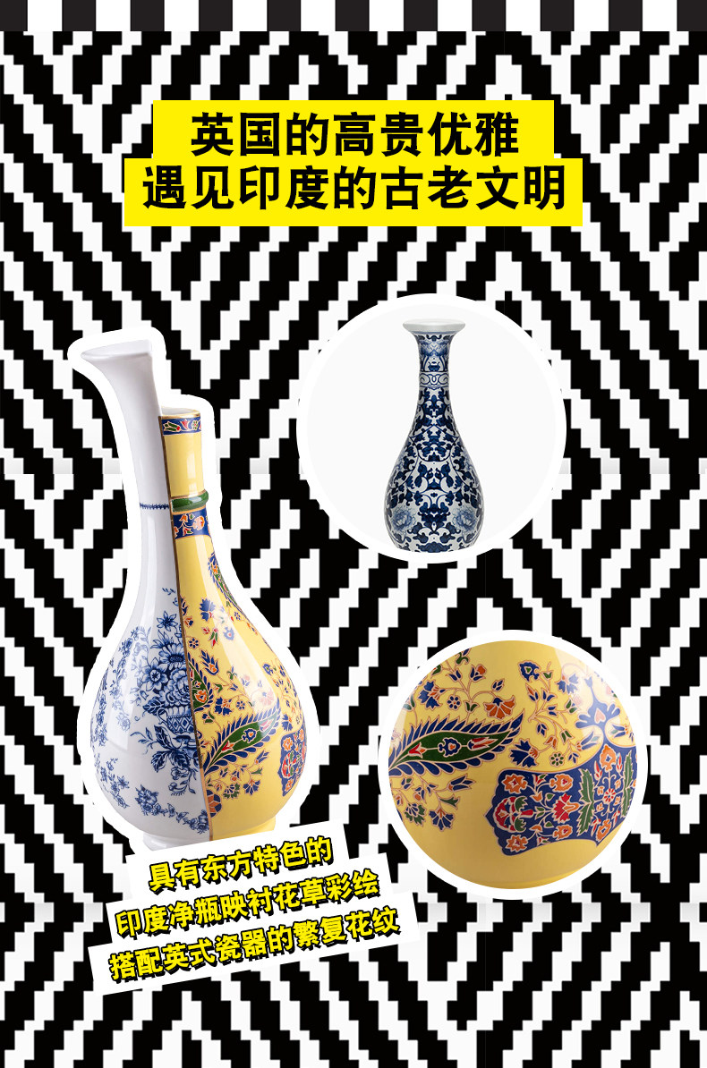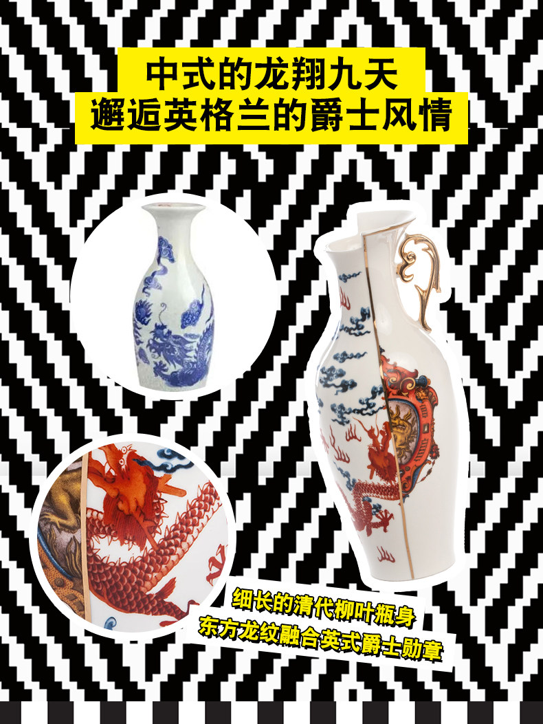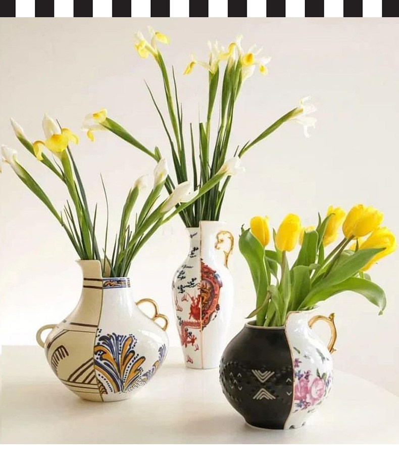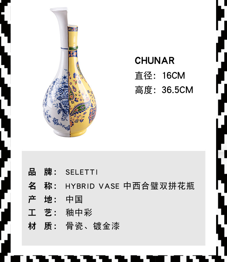 Seletti中西合璧花瓶青花瓷摆件骨瓷客厅餐桌复古拼接图乔迁礼物