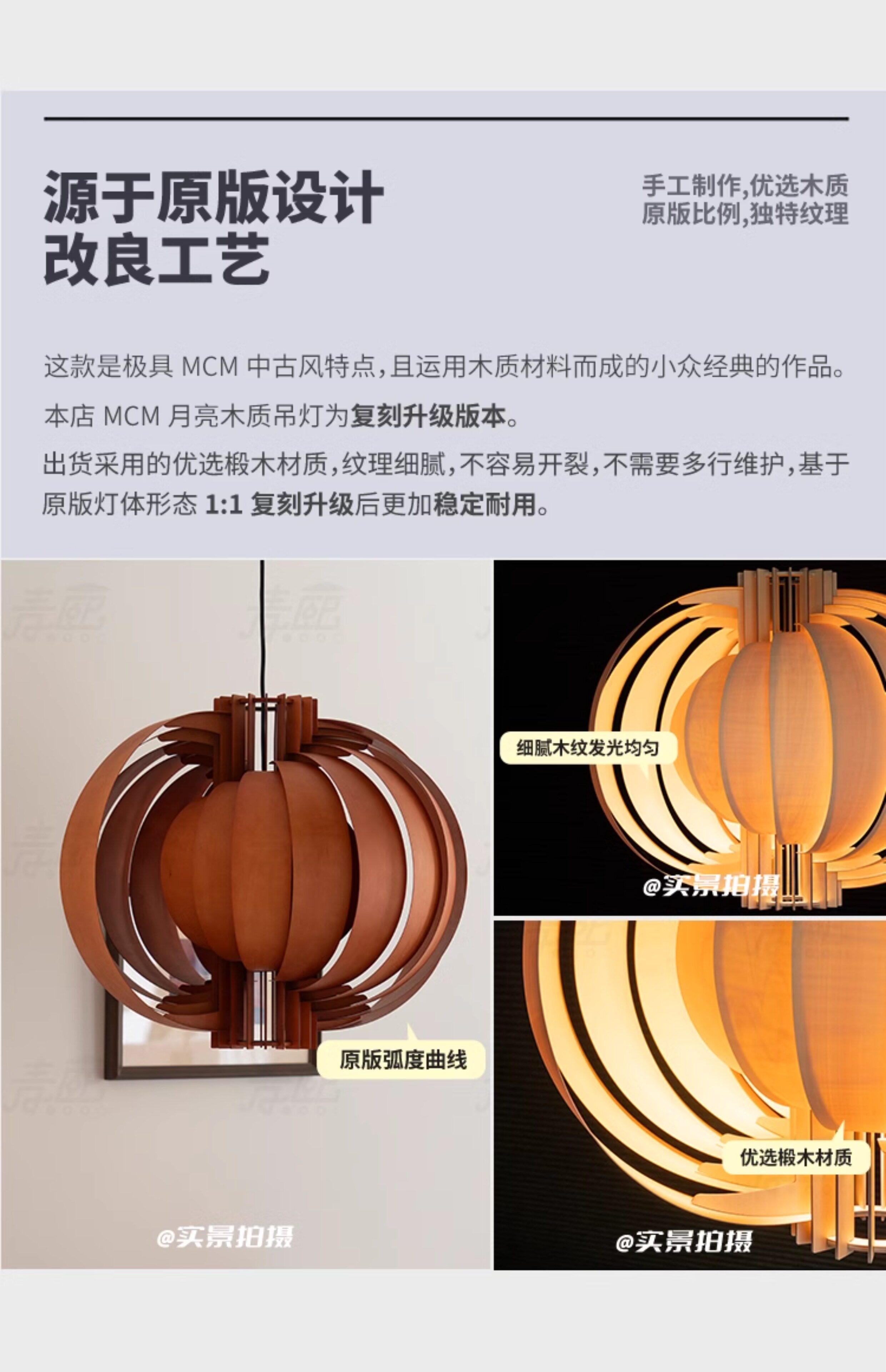 中古原木风moon月亮吊灯侘寂风法式复古餐厅书房卧室吧台民宿灯具