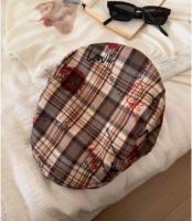 日系复古格纹涂鸦前进帽子女夏季2024新款小众百搭显脸小贝雷帽