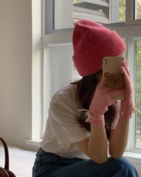 纯色百搭兔毛保暖针织毛线帽女冬季韩国ins防风护耳套头冷帽子潮