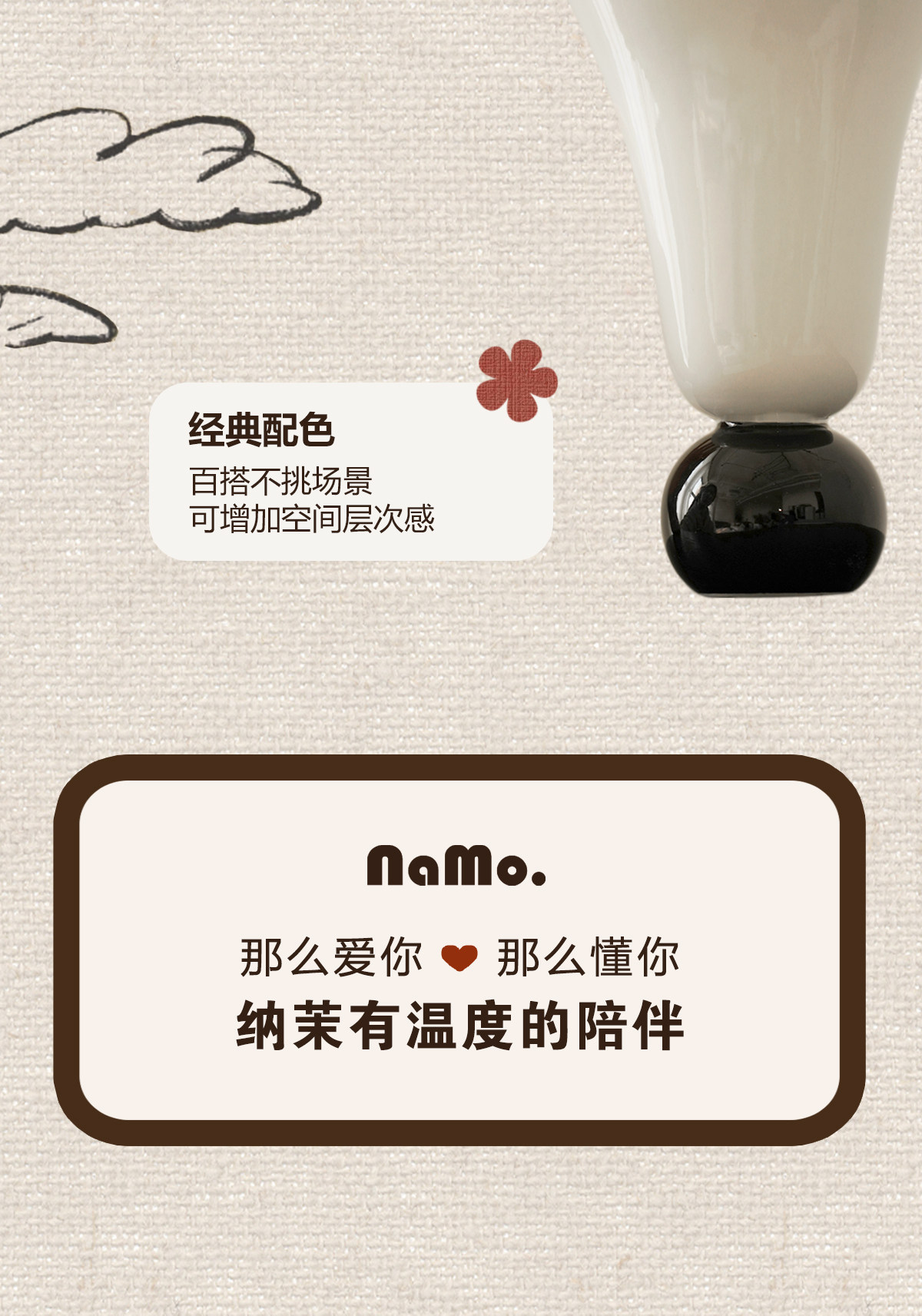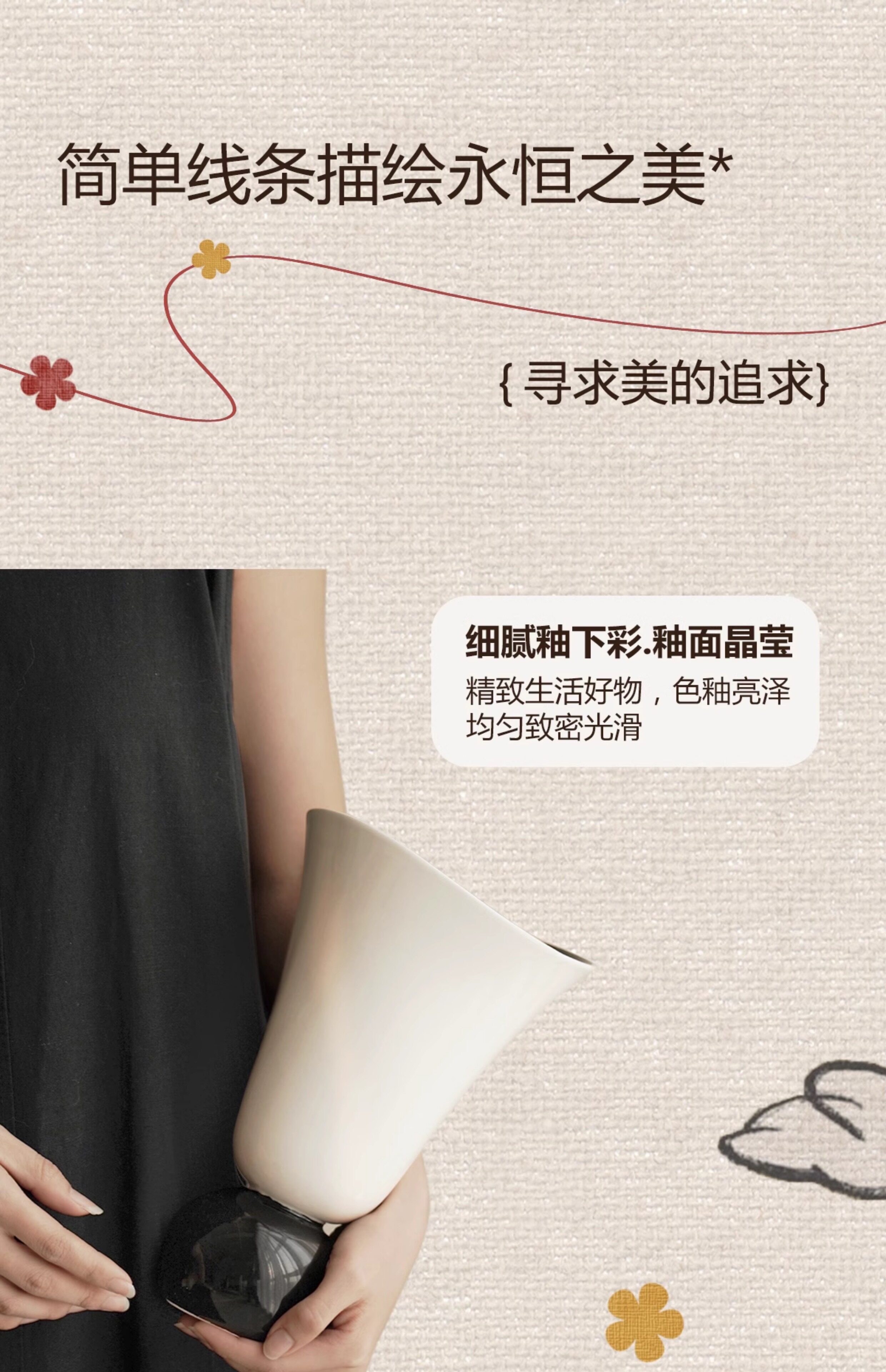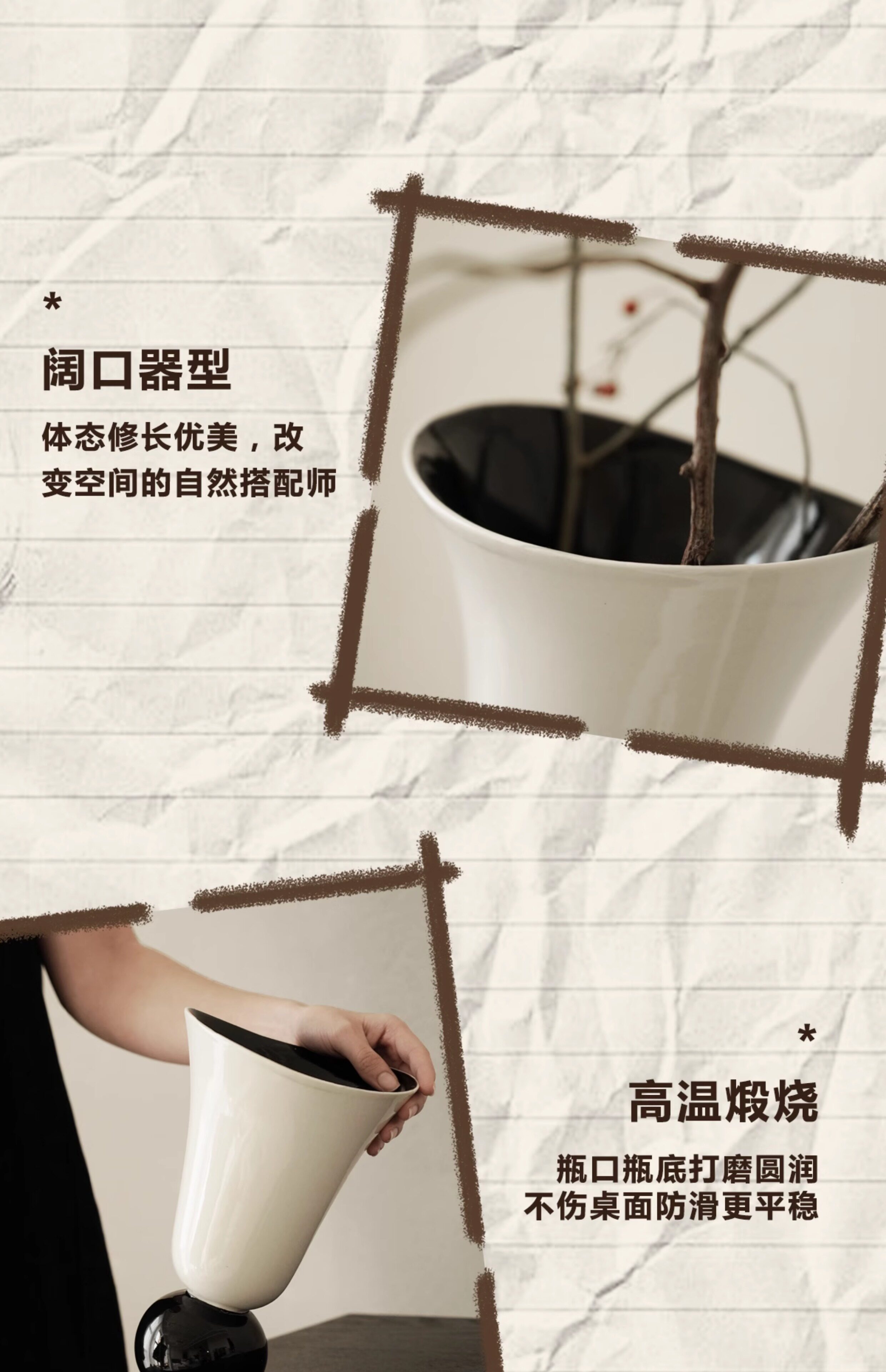 纳茉原创设计奶油拼色中古陶瓷花瓶餐厅客厅桌面摆件水培鲜花花器
