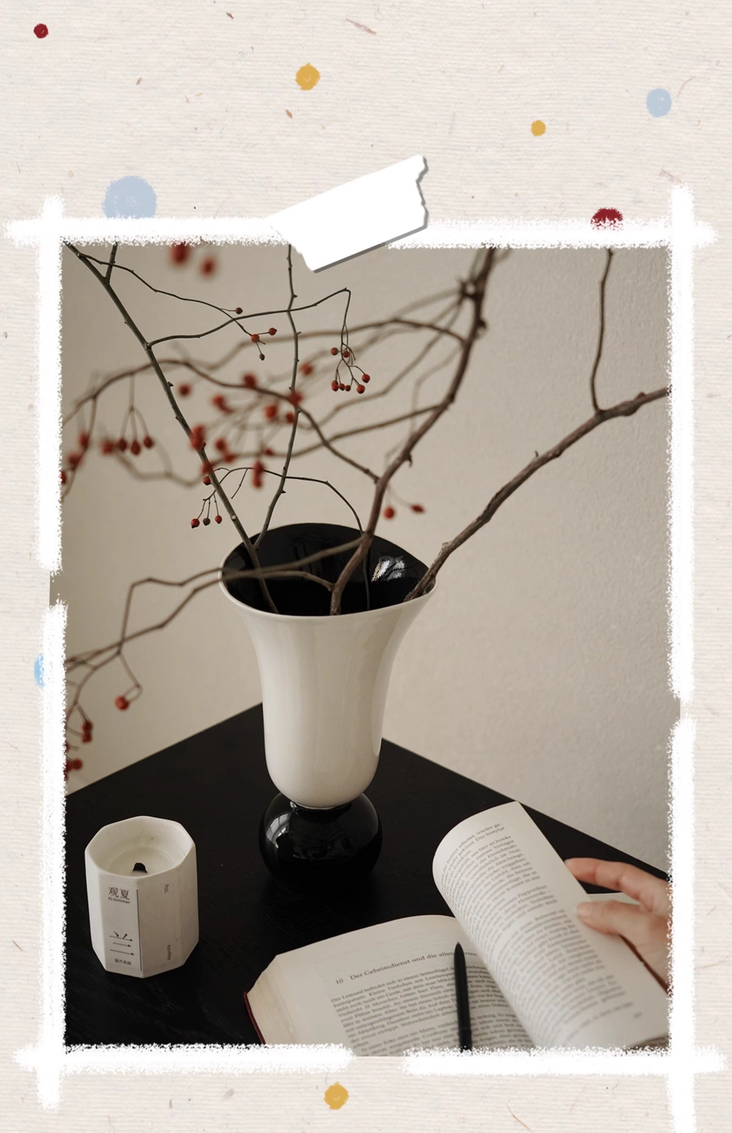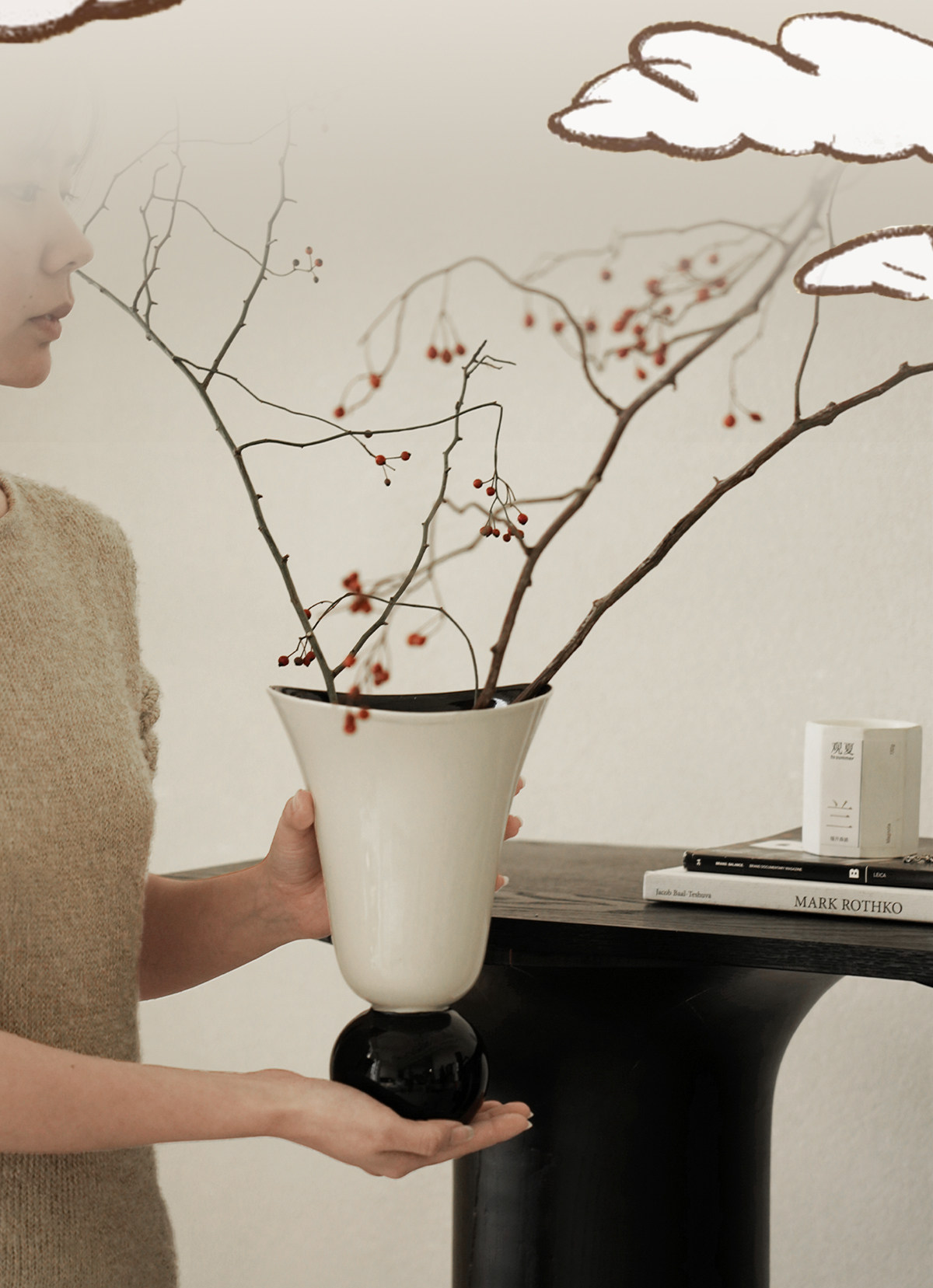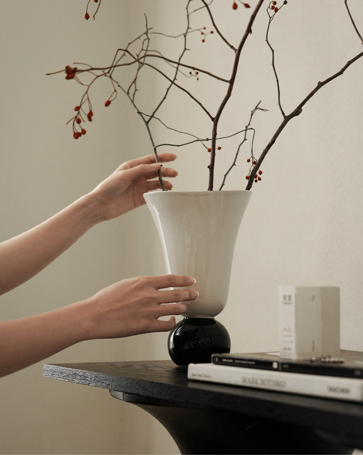 纳茉原创设计奶油拼色中古陶瓷花瓶餐厅客厅桌面摆件水培鲜花花器