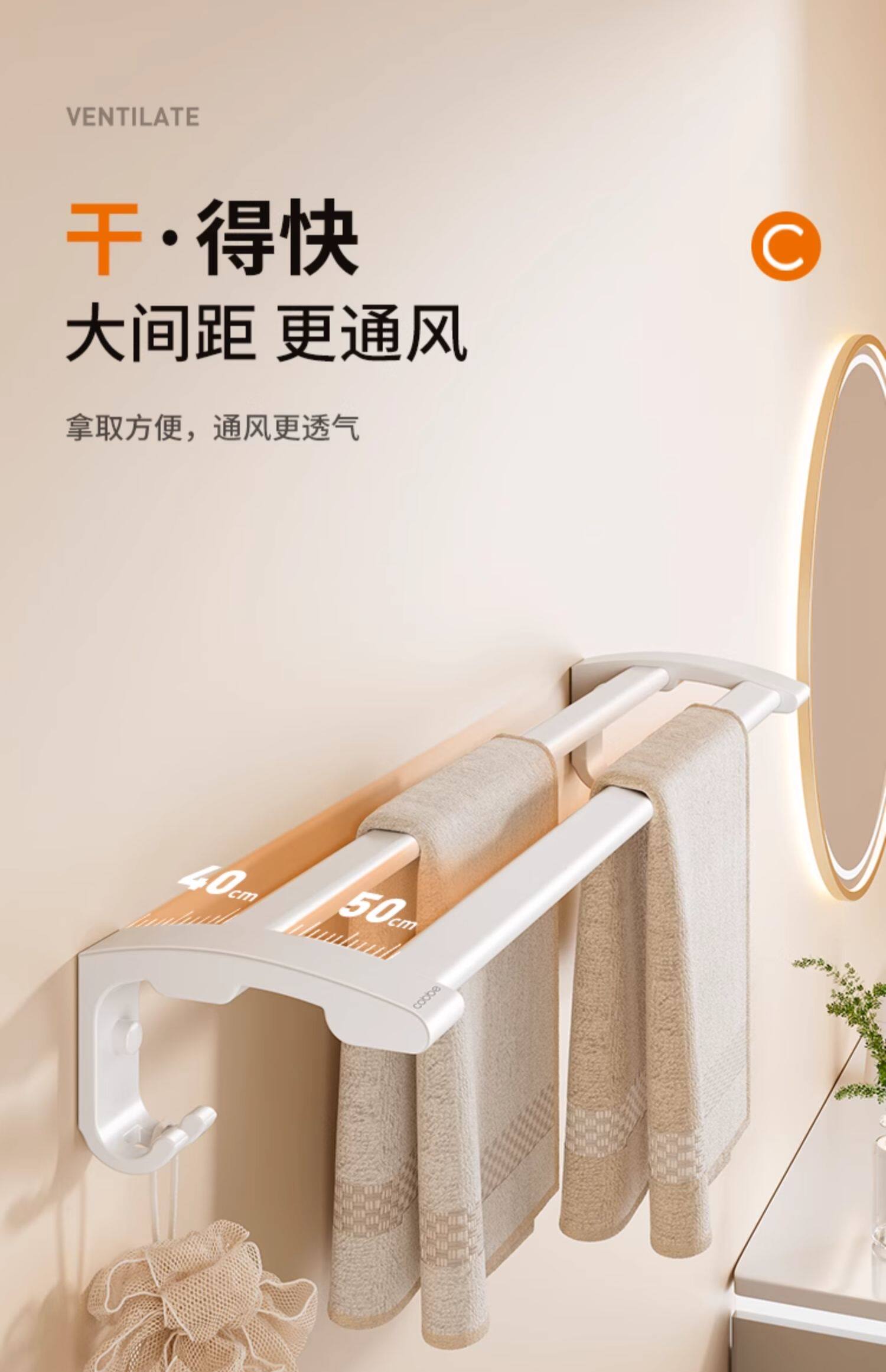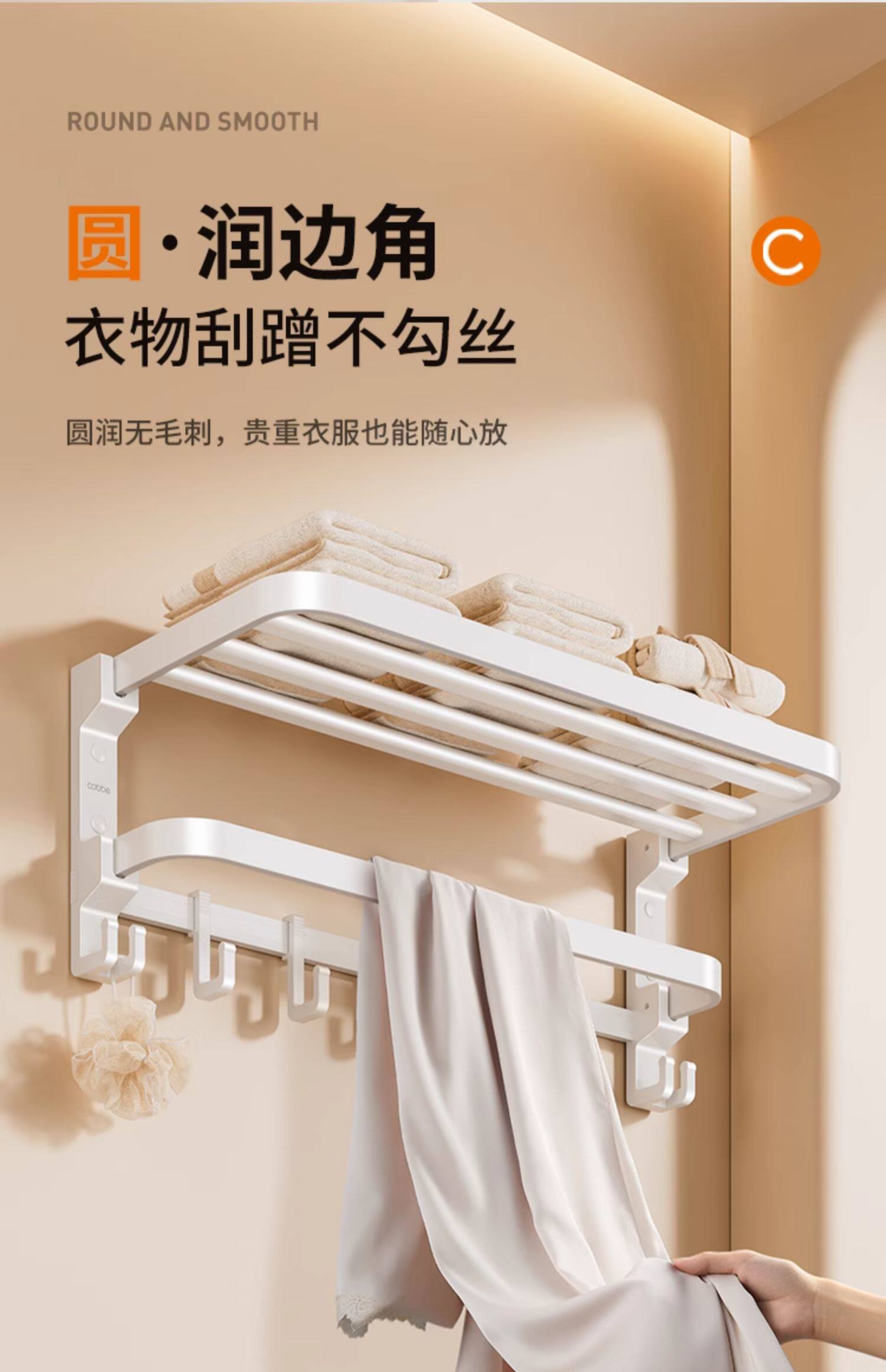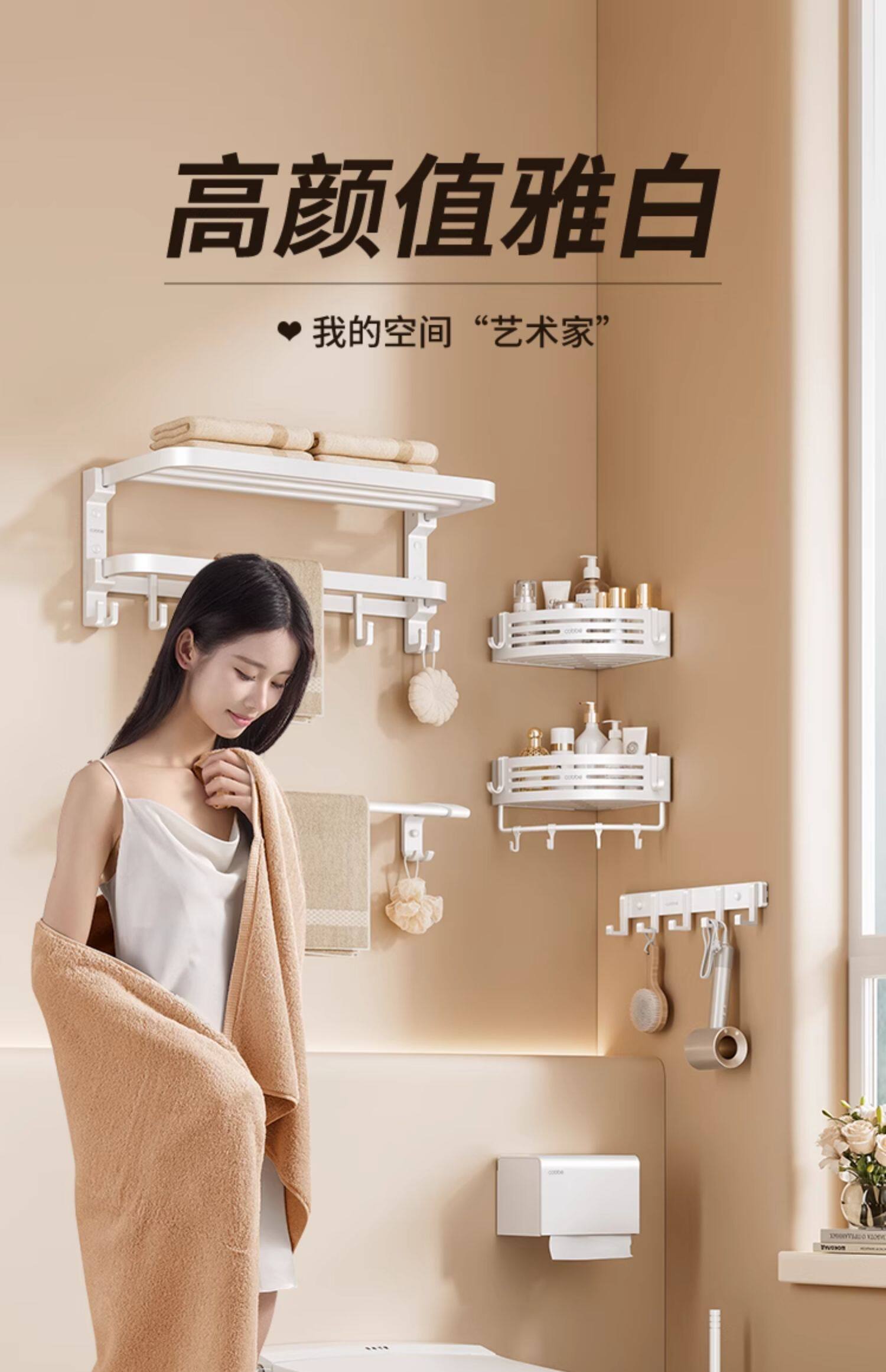 卡贝白色毛巾架免打孔太空铝厕所浴巾架子卫生间五件套浴室置物架