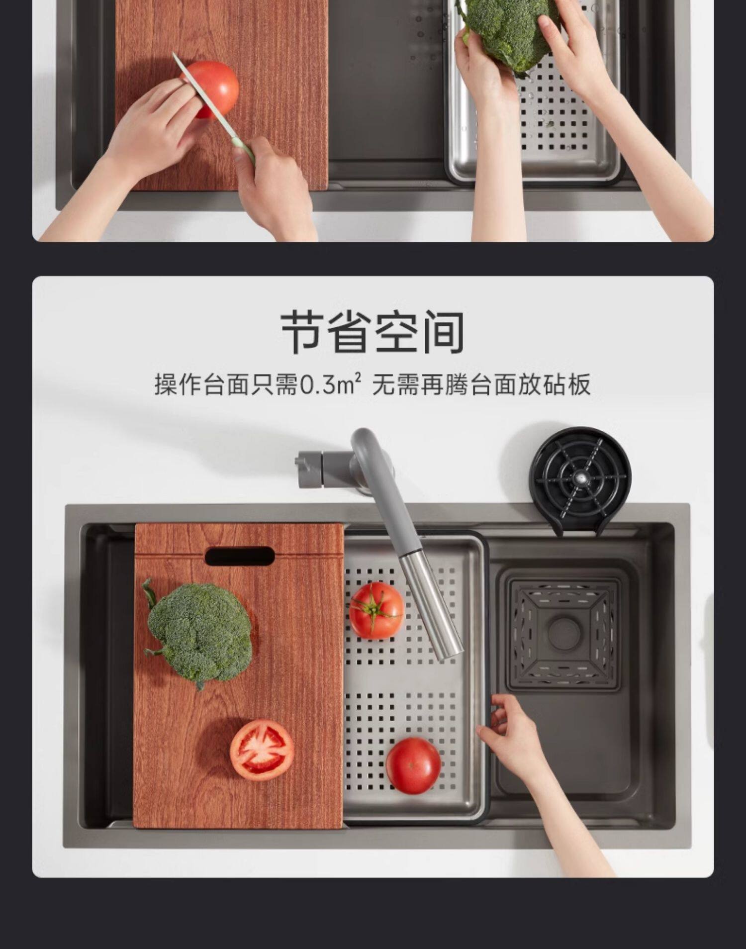 飞雨瀑布水槽厨房洗菜盆大单槽304不锈钢家用台下盆洗碗槽洗碗池
