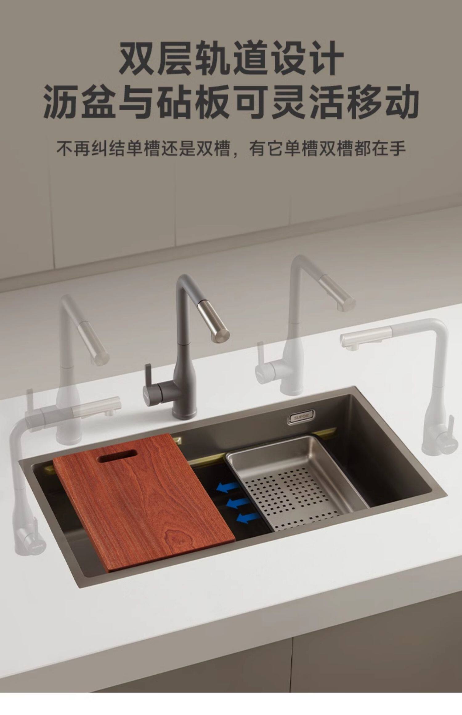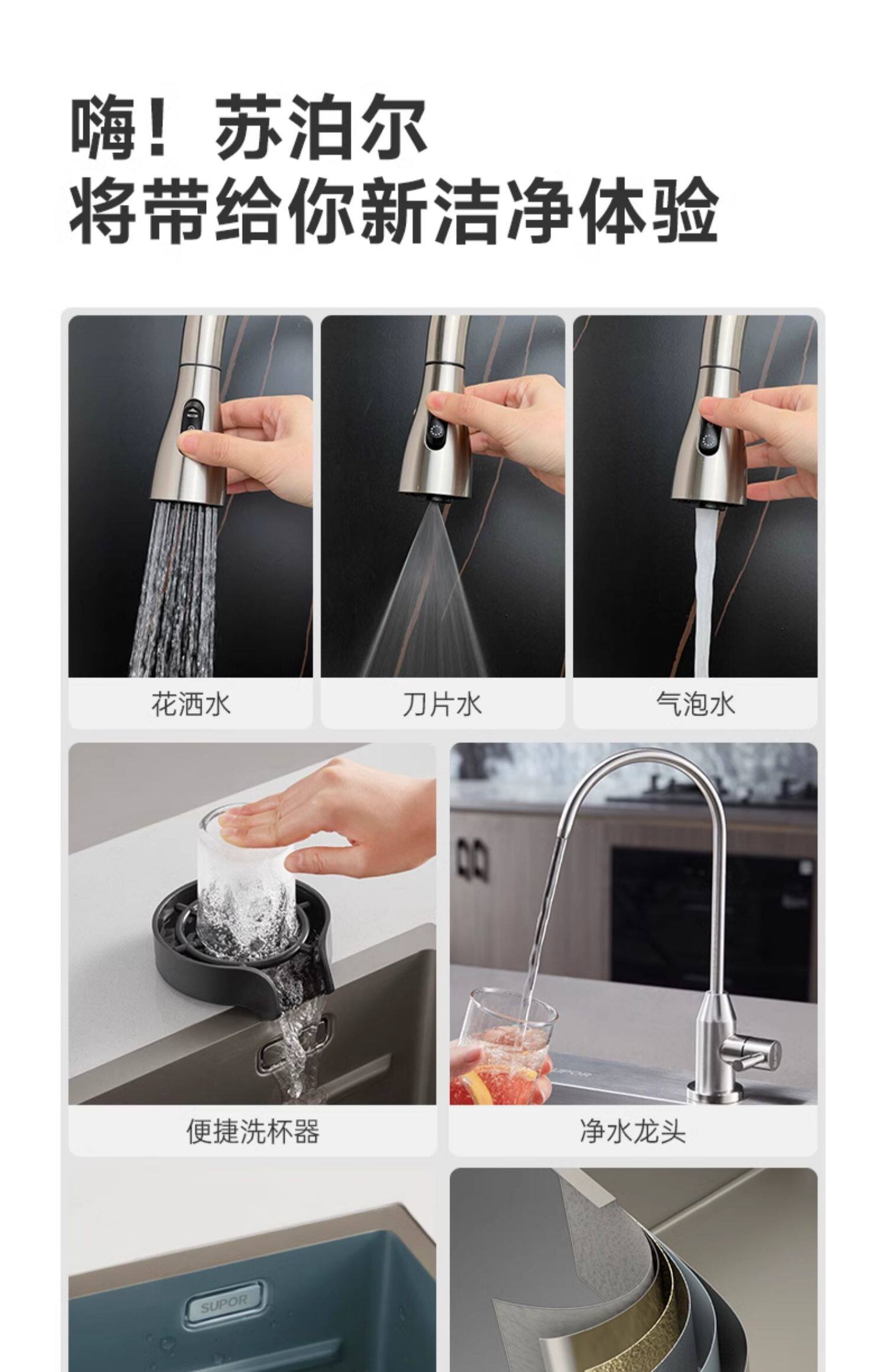 苏泊尔洗菜盆304不锈钢厨房水槽纳米大单槽洗碗池家用台下盆套餐