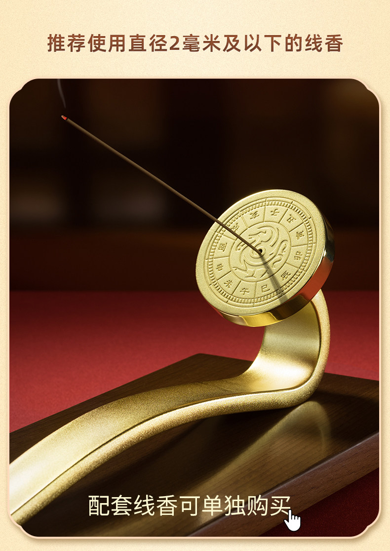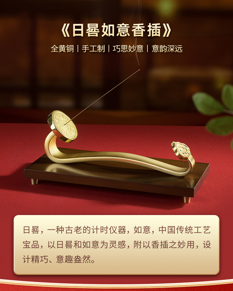 铜师傅《日晷如意香插》客厅桌面铜摆件 家居装饰工艺品