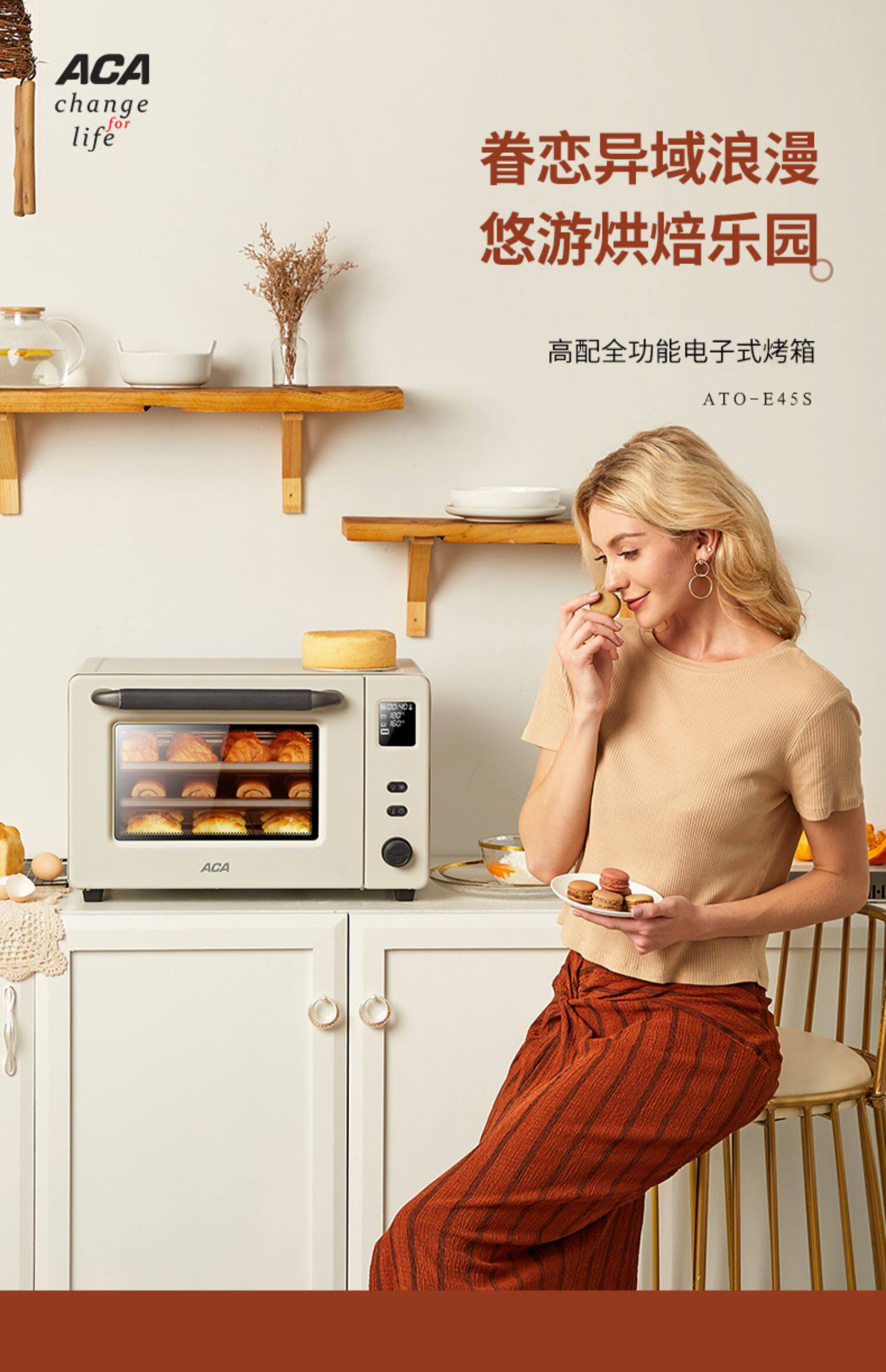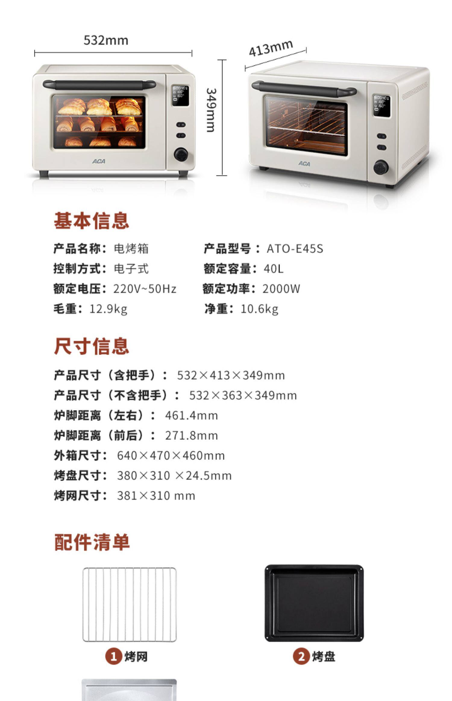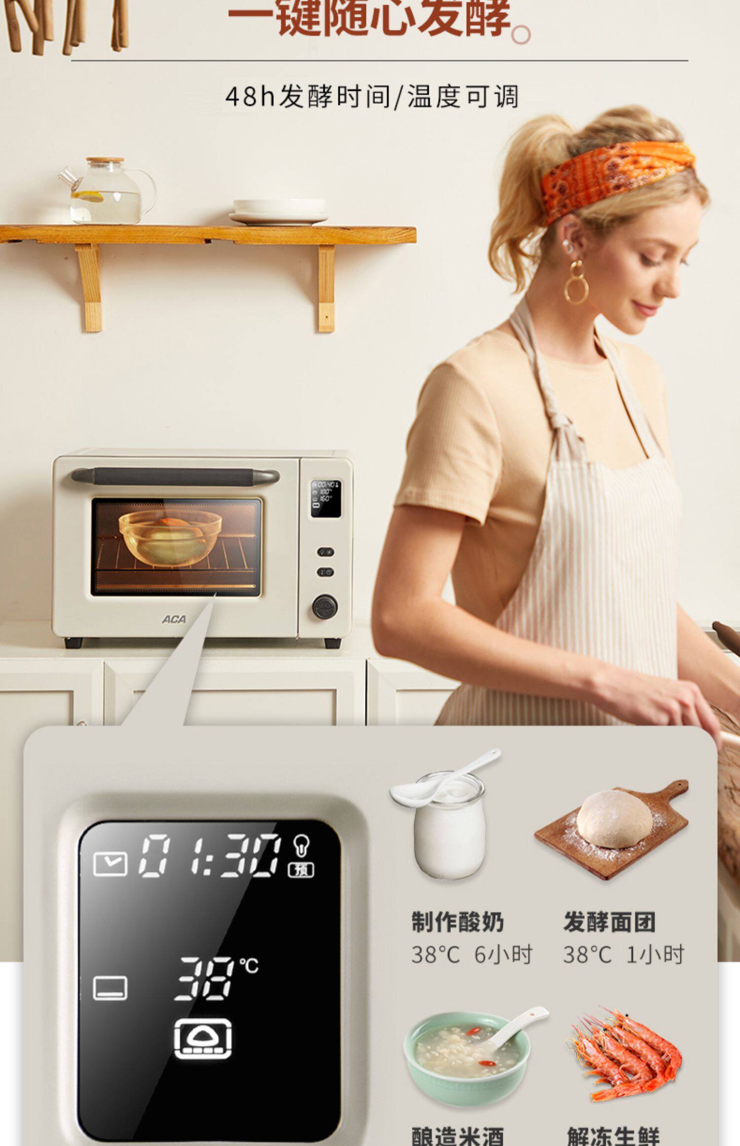 aca北美电器烤箱家用小型烘焙多功能搪瓷40L大容量