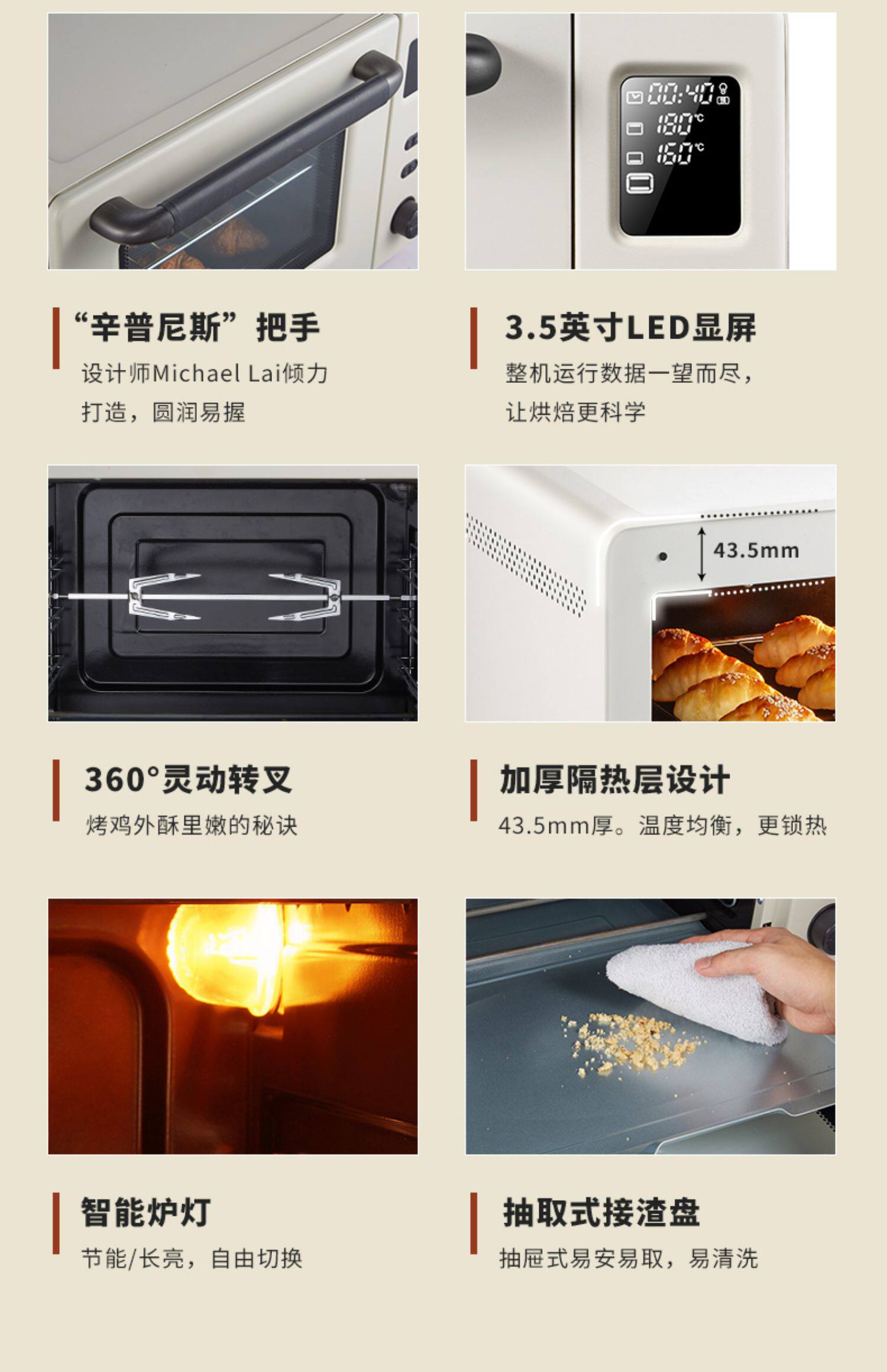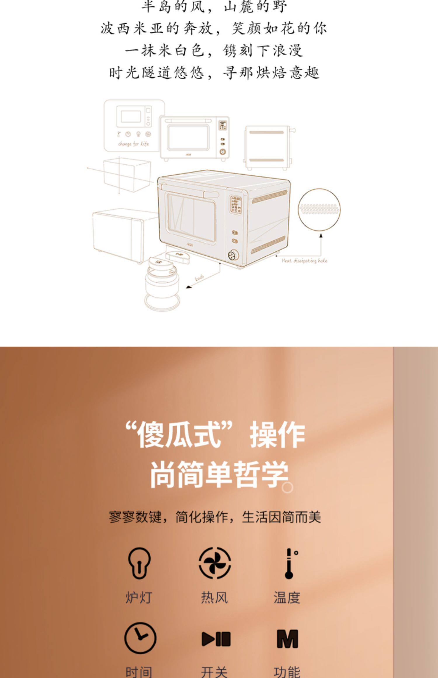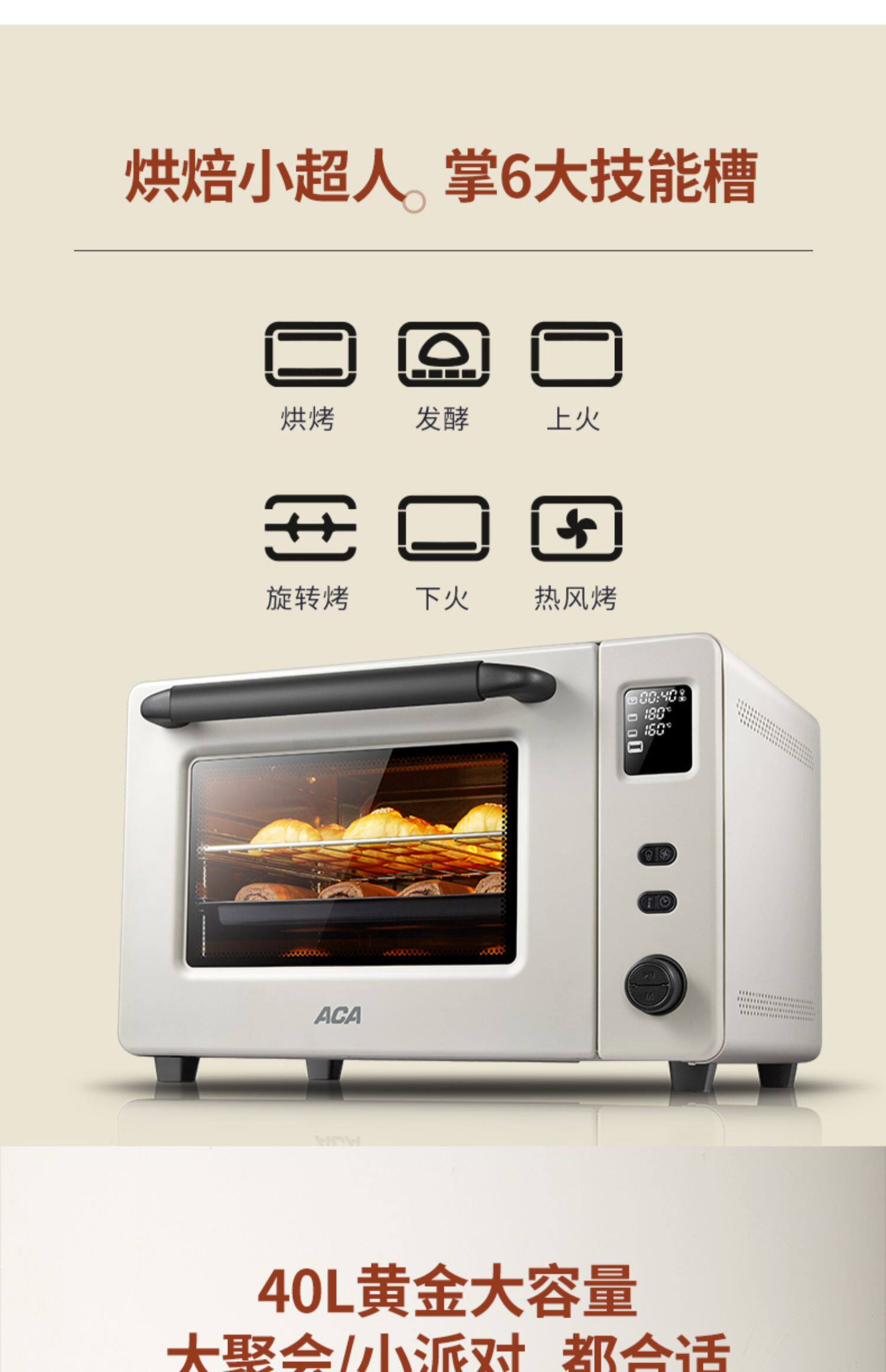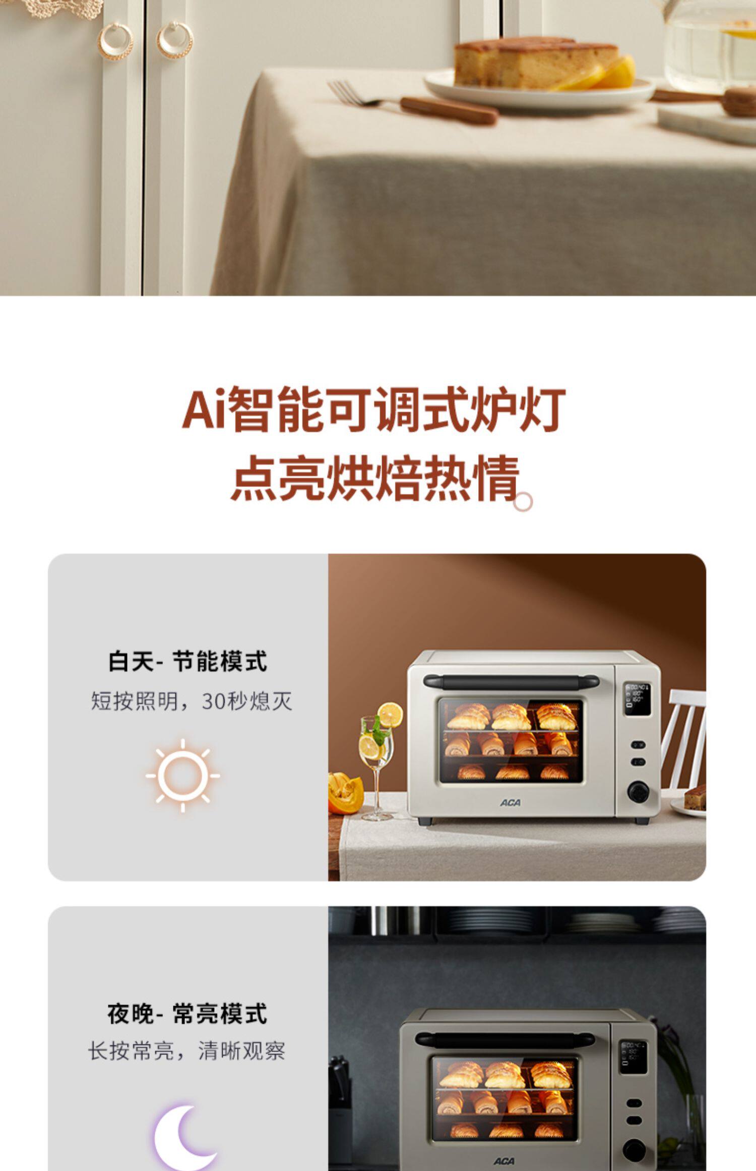aca北美电器烤箱家用小型烘焙多功能搪瓷40L大容量