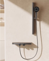 浴室恒温枪灰色淋浴花洒套装全铜家用增压卫生间冷热沐浴喷头