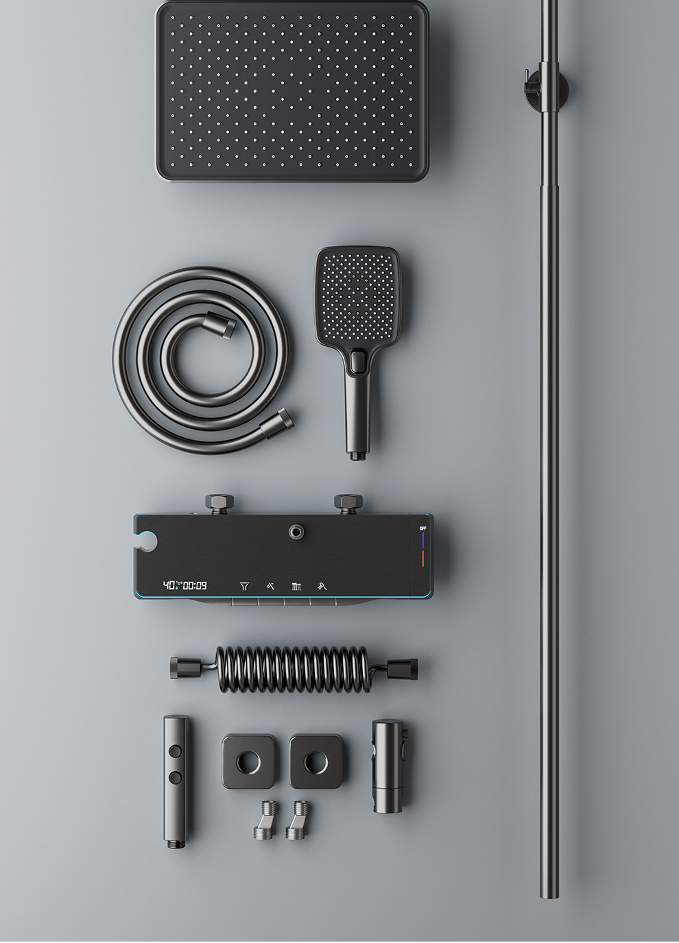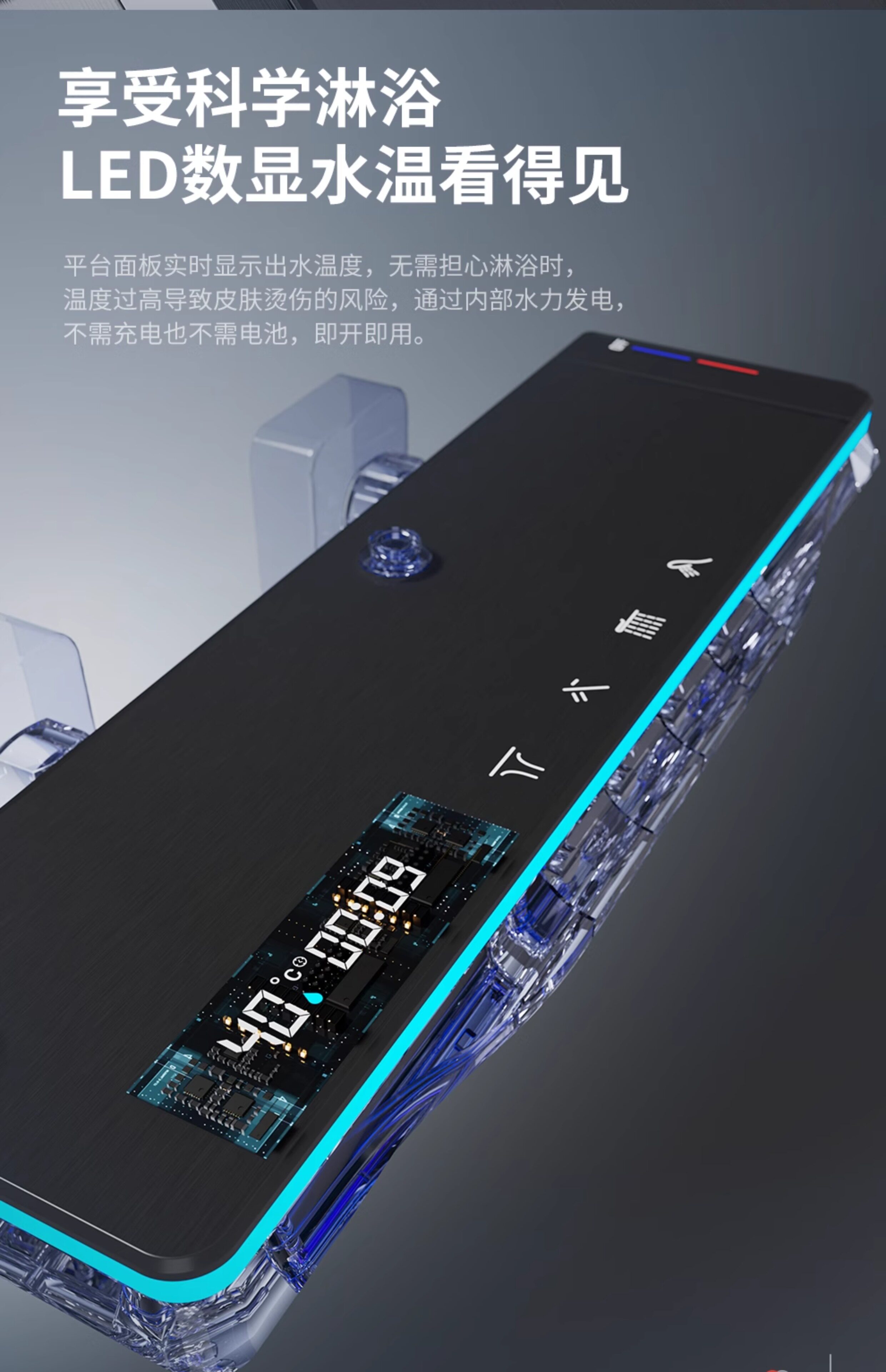 家用淋浴全铜枪灰奶白恒温数显浴室小户型无顶喷简易淋浴花洒套装