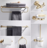 卫生间全铜金色毛巾架黄铜拉丝置物架北欧浴室五金挂件套装