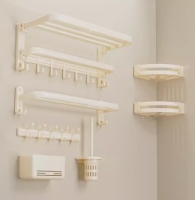 奶白色浴室置物架五件套毛巾架免打孔卫浴卫生间厕所五金挂件套装