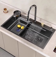 飞雨瀑布水槽厨房洗菜盆大单槽304不锈钢家用台下盆洗碗槽洗碗池