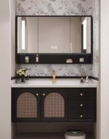 藤编浴室柜组合中古法式卫生间洗漱台洗脸盆黑色定制智能洗手台盆
