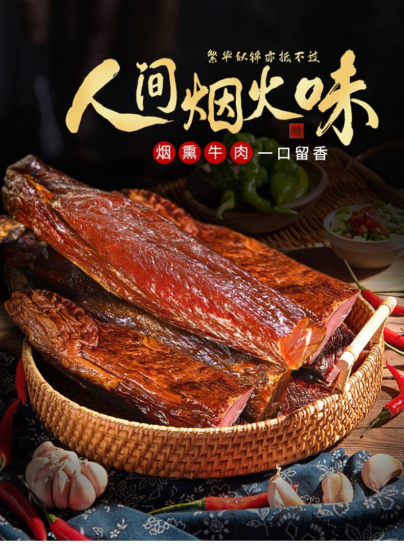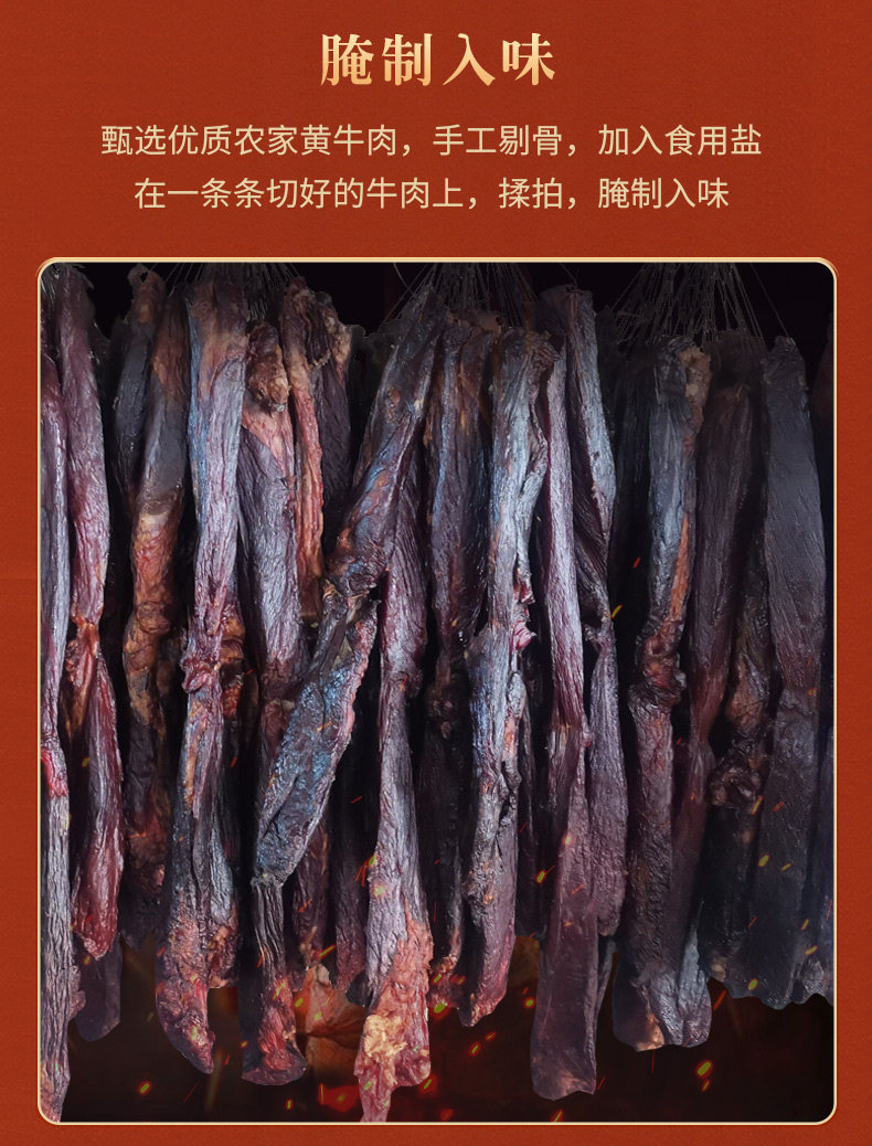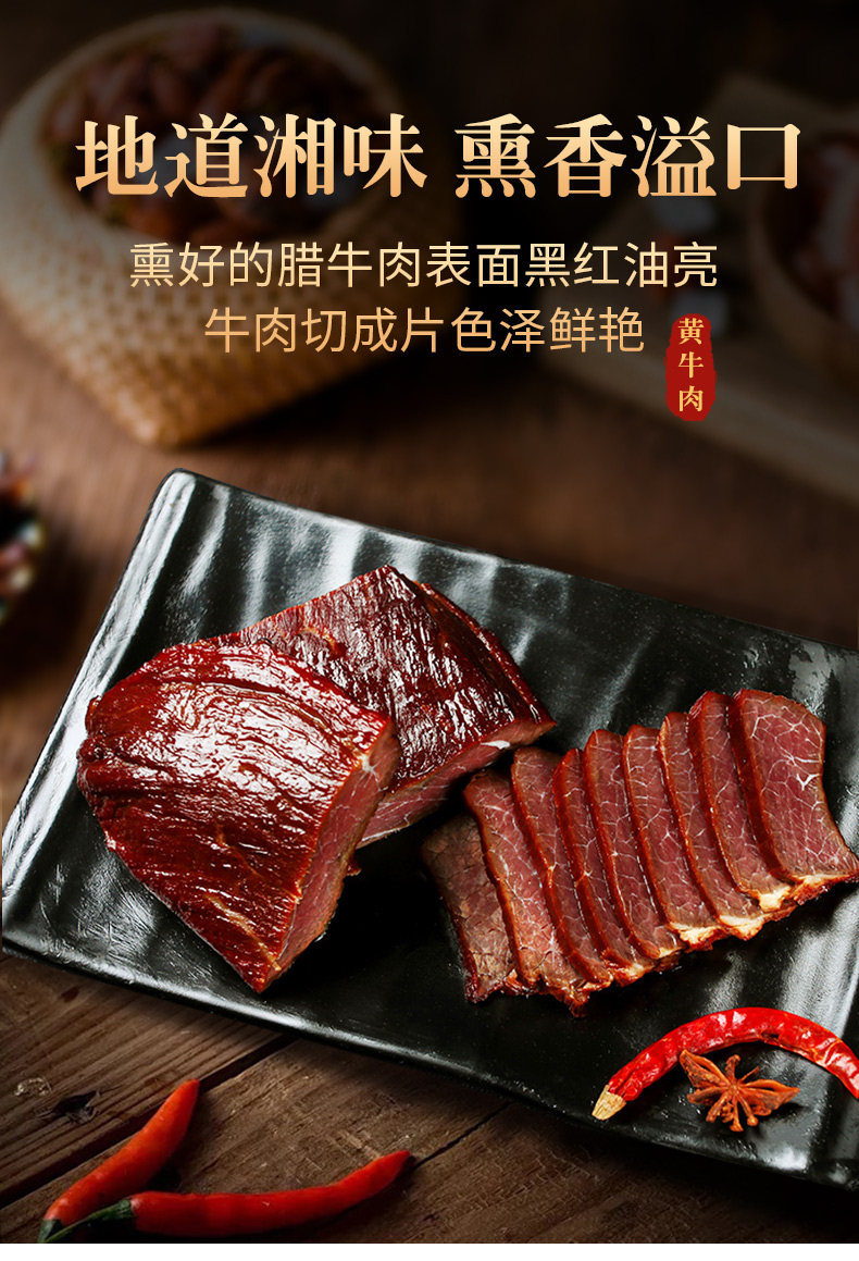 腊牛肉湖南特产自制烟熏特色腊味黄牛肉熏肉瘦肉非四川贵州500g装