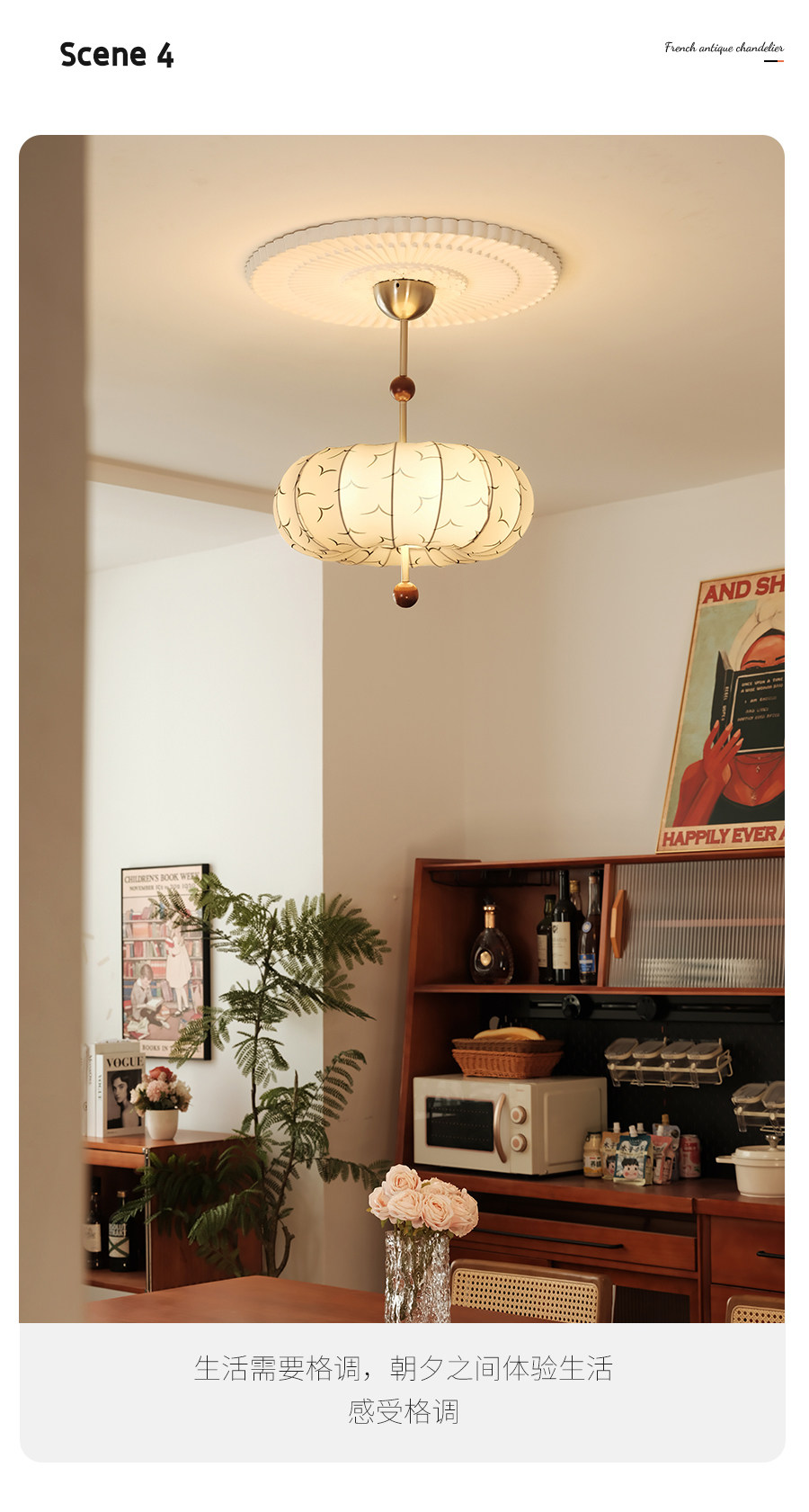 奥朵法式中古风卧室吊灯护眼复古书房灯2025新款高级感布艺主卧灯