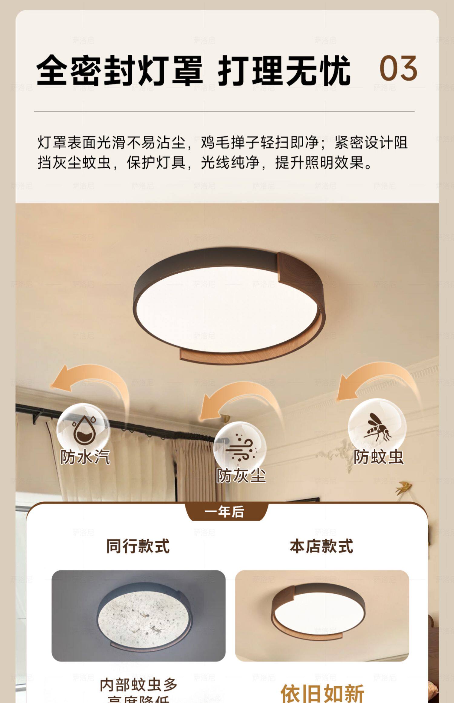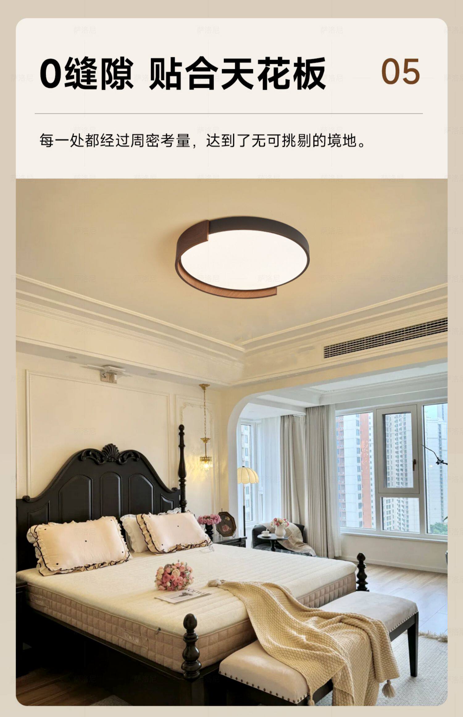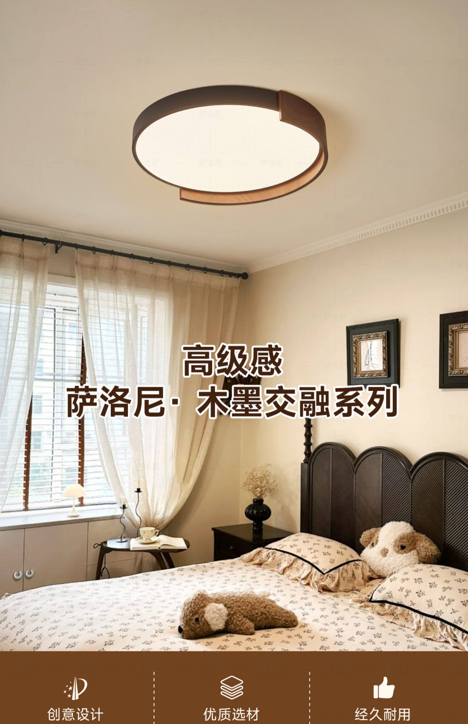 侘寂中古风吸顶灯全光谱意式护眼卧室灯胡桃木纹现代简约房间灯具
