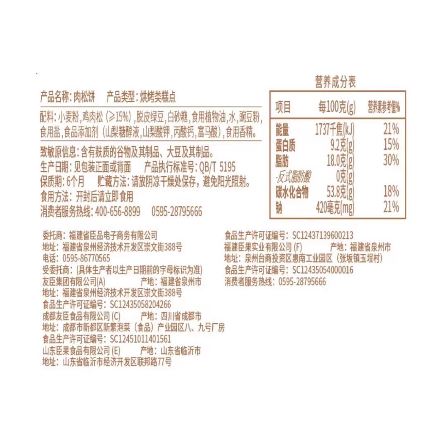 友臣肉松饼1kg面包糕点网红零食小吃休闲食品点心健康早餐办公室