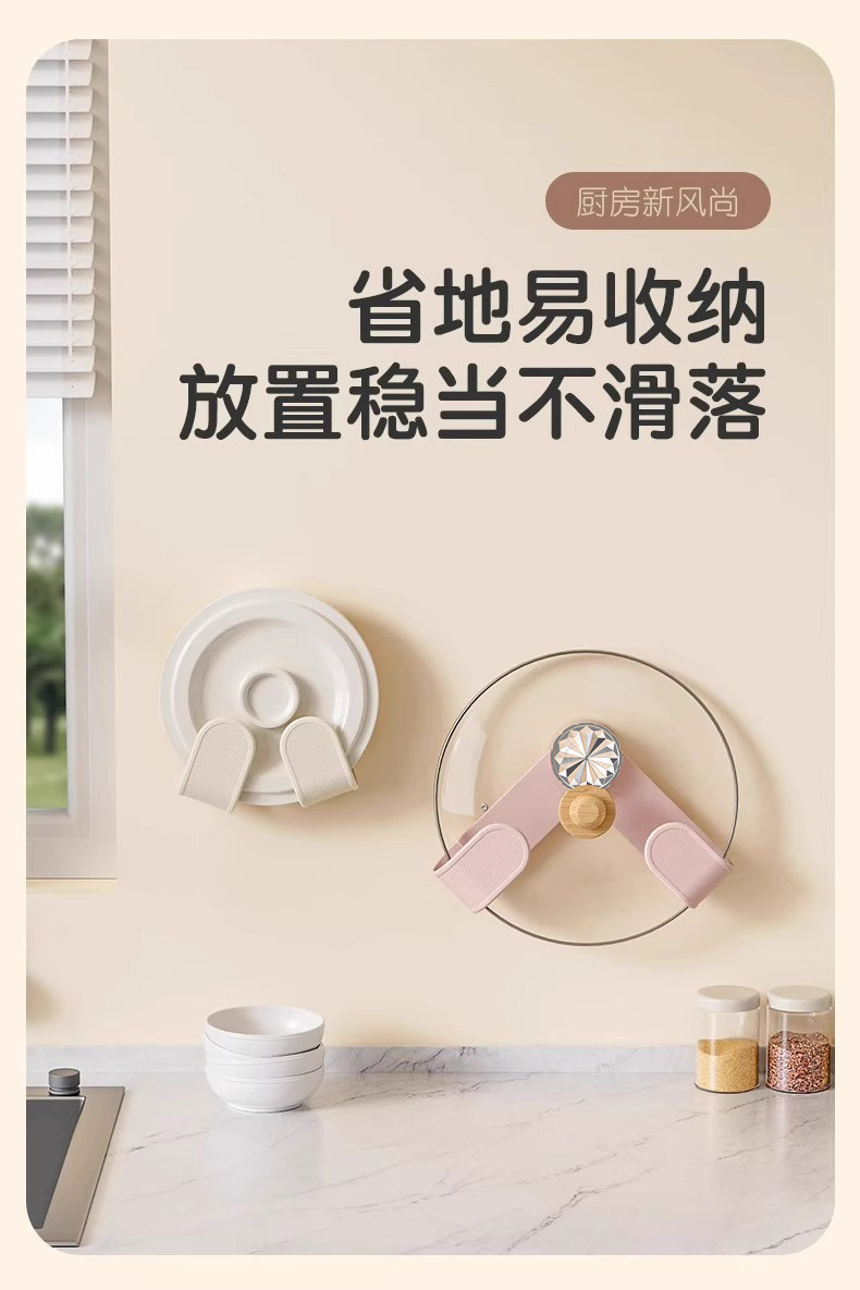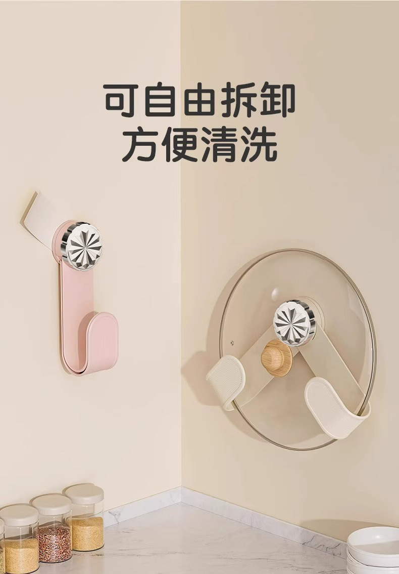 奶油吸盘旋转锅盖架壁挂式免打孔厨房置物架收纳挂架菜板架砧板架