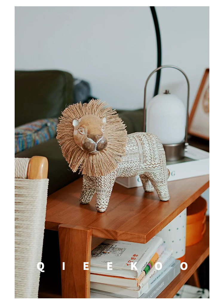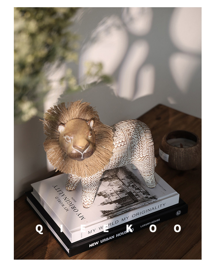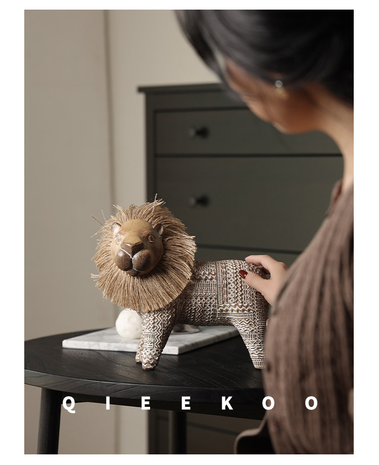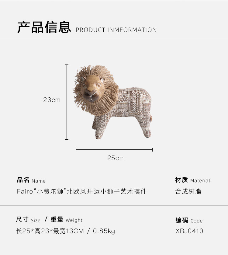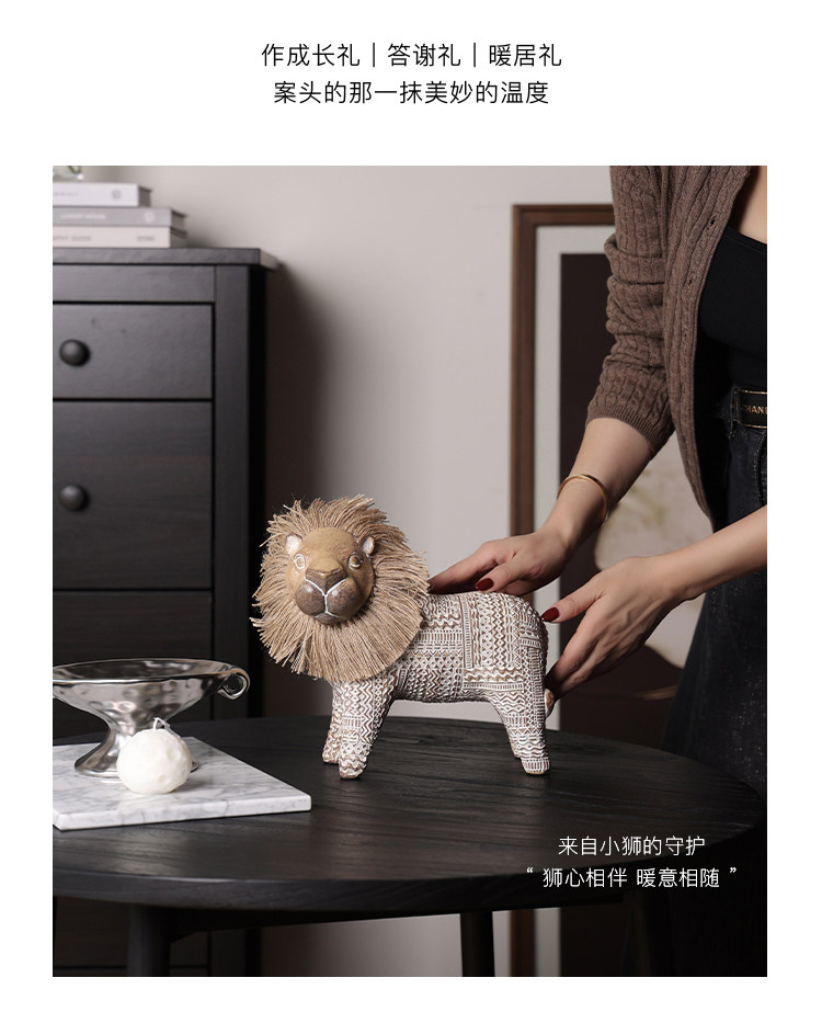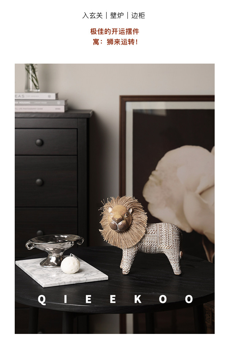 契阔家居小费尔狮北欧风开运小狮子艺术摆件工艺品卧室客厅装饰品