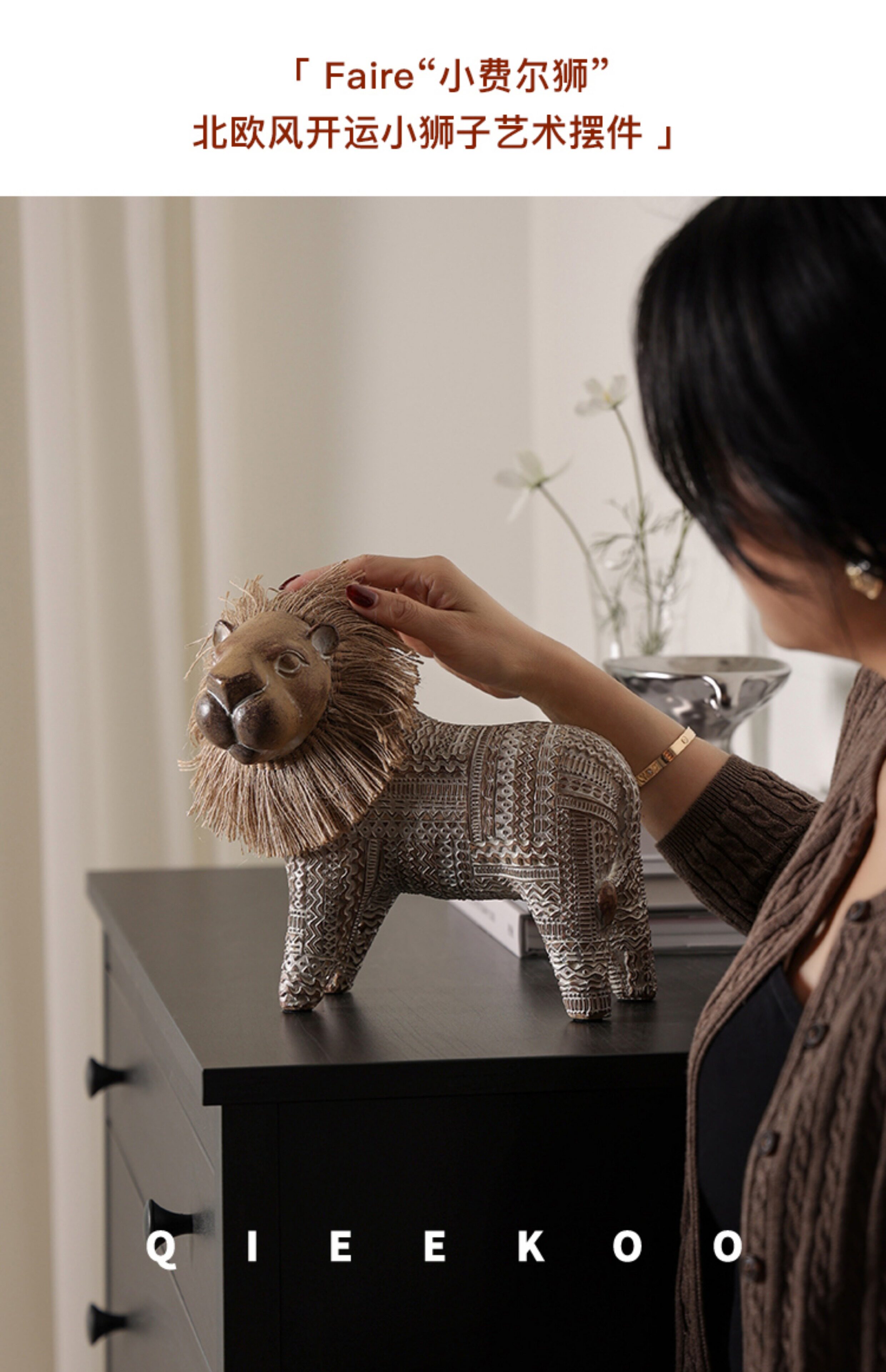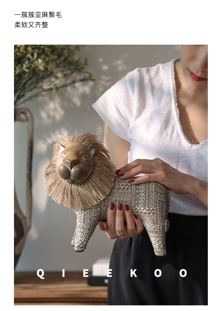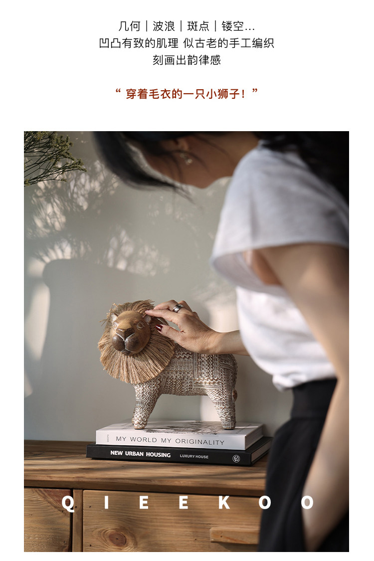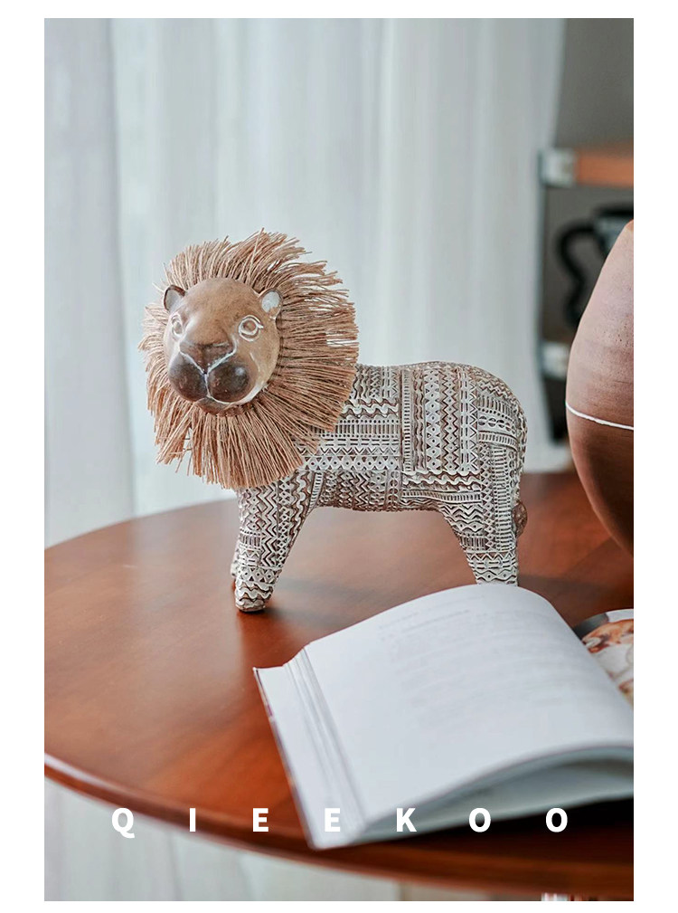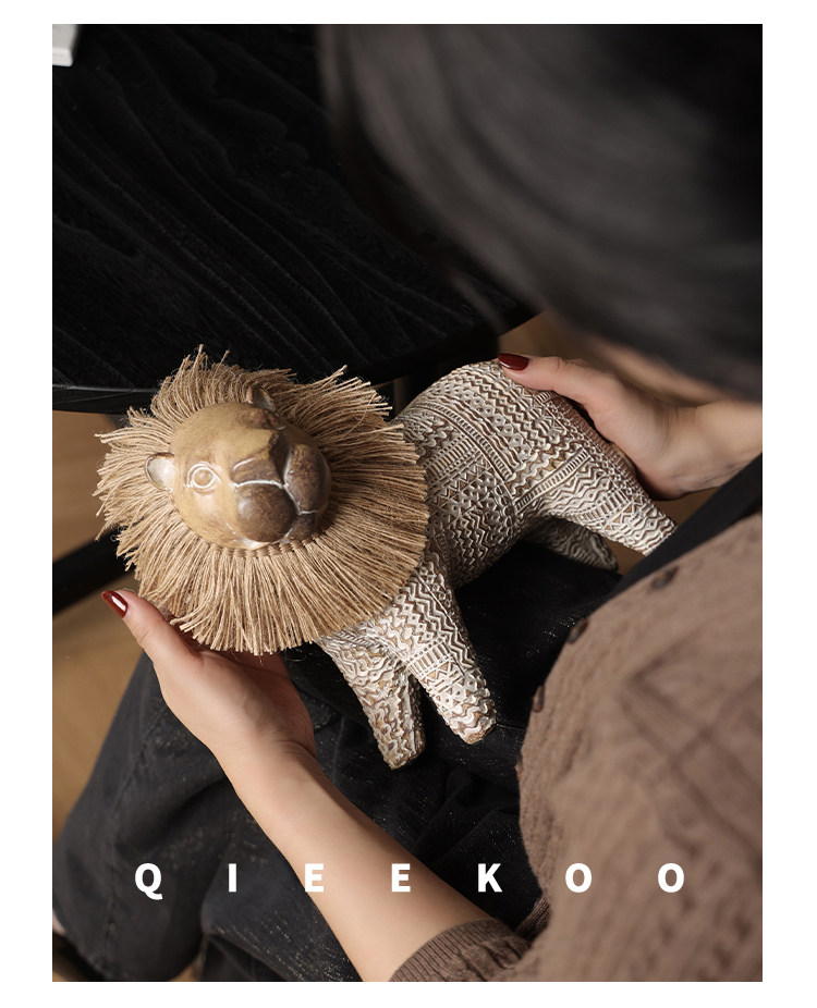 契阔家居小费尔狮北欧风开运小狮子艺术摆件工艺品卧室客厅装饰品